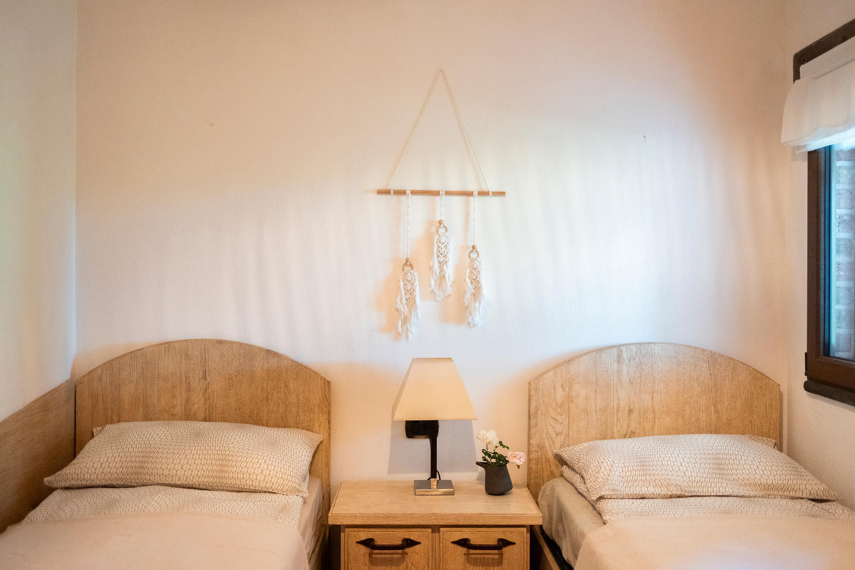 Das Haus ist ideal für Familien, Paare und Gäste, die gerne zu Fuß unterwegs sind. Im Inneren erwartet Euch ein komfortables Ferienhaus mit einer entspannten Atmosphäre und harmonischen Farben. Das Panoramafenster im Wohnbereich bietet einen schönen Blick auf den Garten. Alle Möbel und die Einbauküche wurden von sardischen Handwerkern individuell gefertigt. In beiden Schlafzimmern gibt es einen Kleiderschrank und bequeme Betten. Bei der Ausstattung der CASA NURRU wurde Wert auf hohe Qualität gelegt. Von der kleinen Dachterrasse aus könnt ihr den Ausblick auf den Hausberg Monte Tuttavista genießen.
