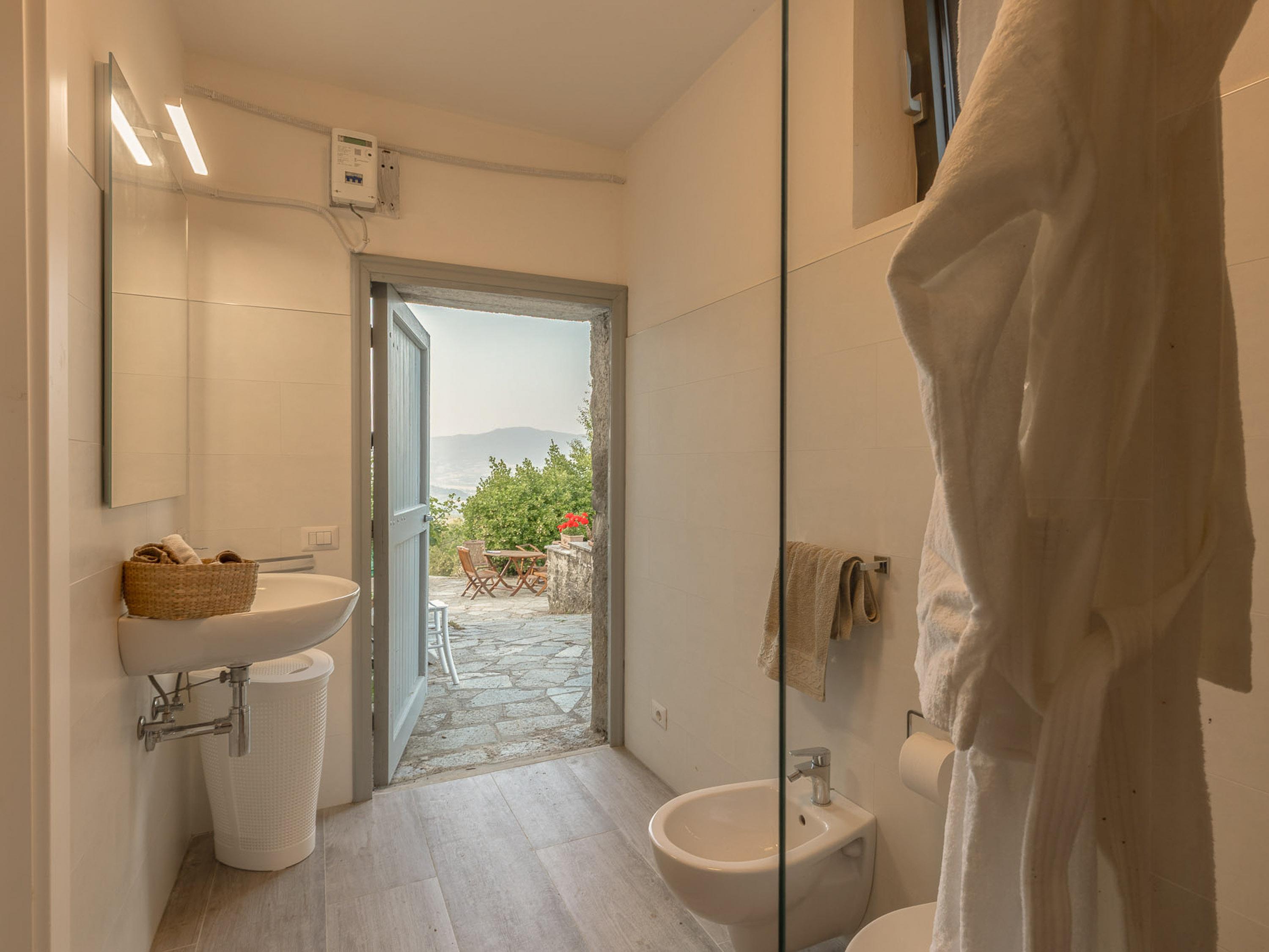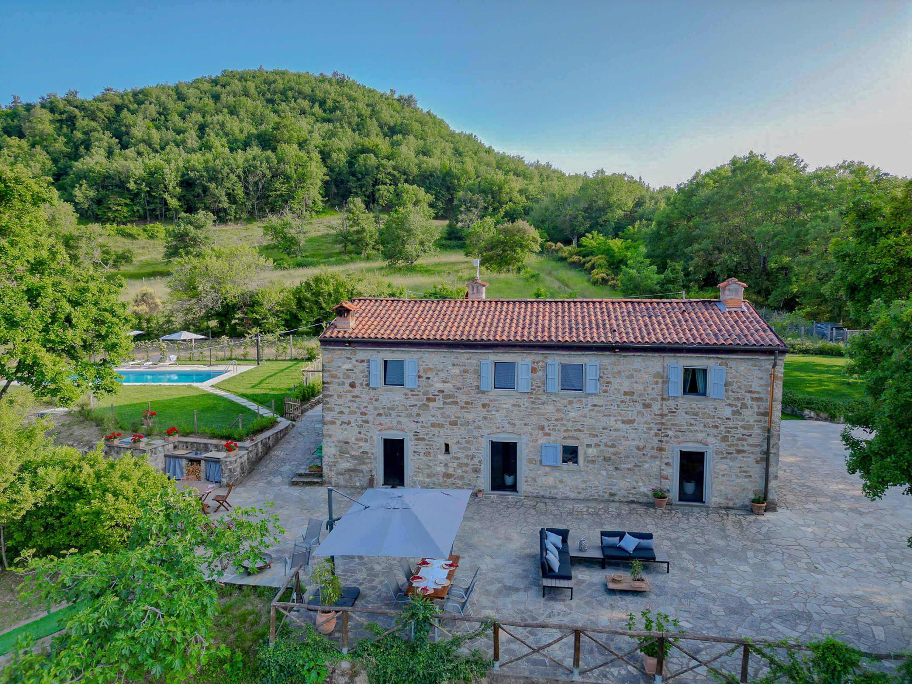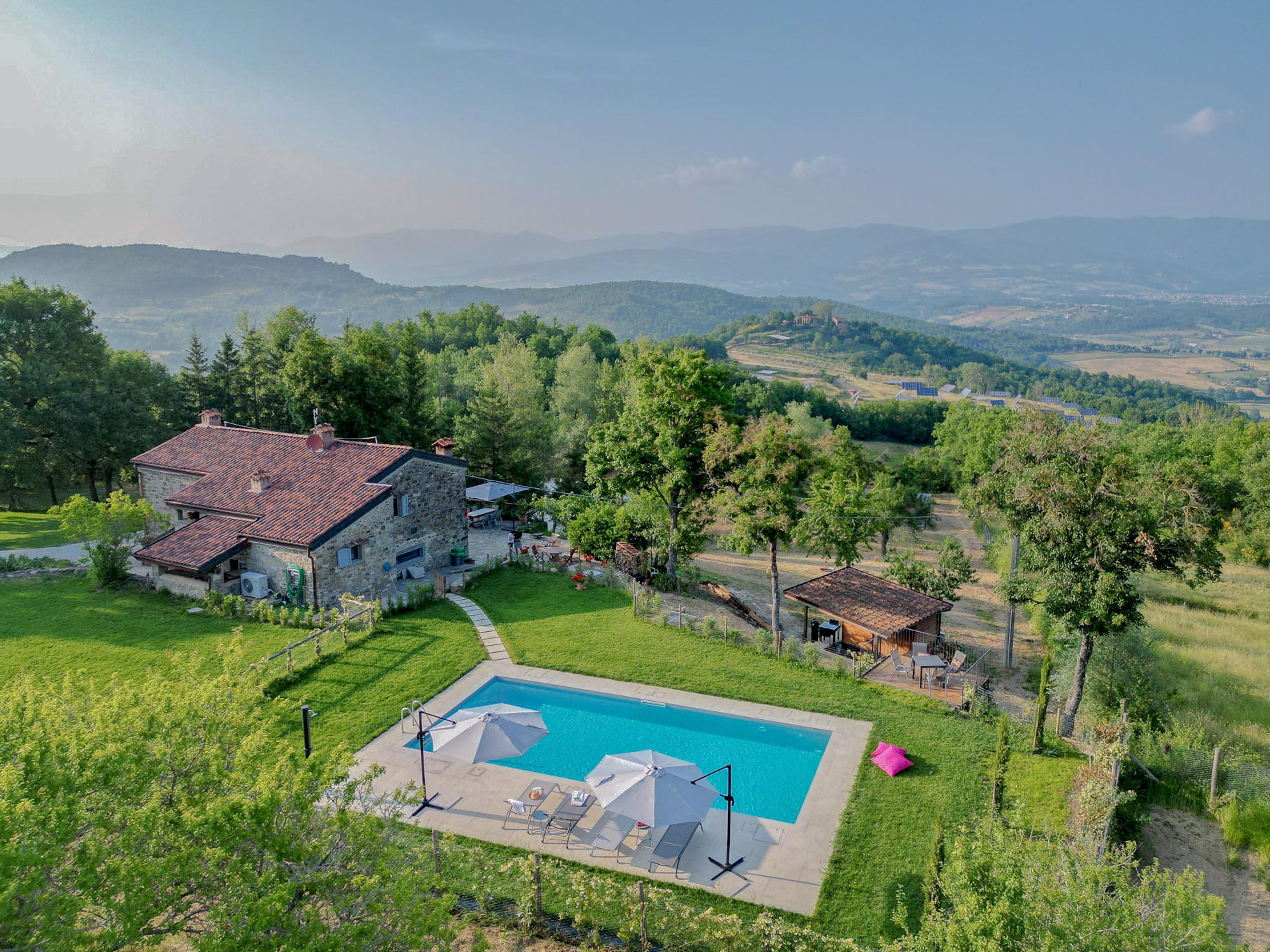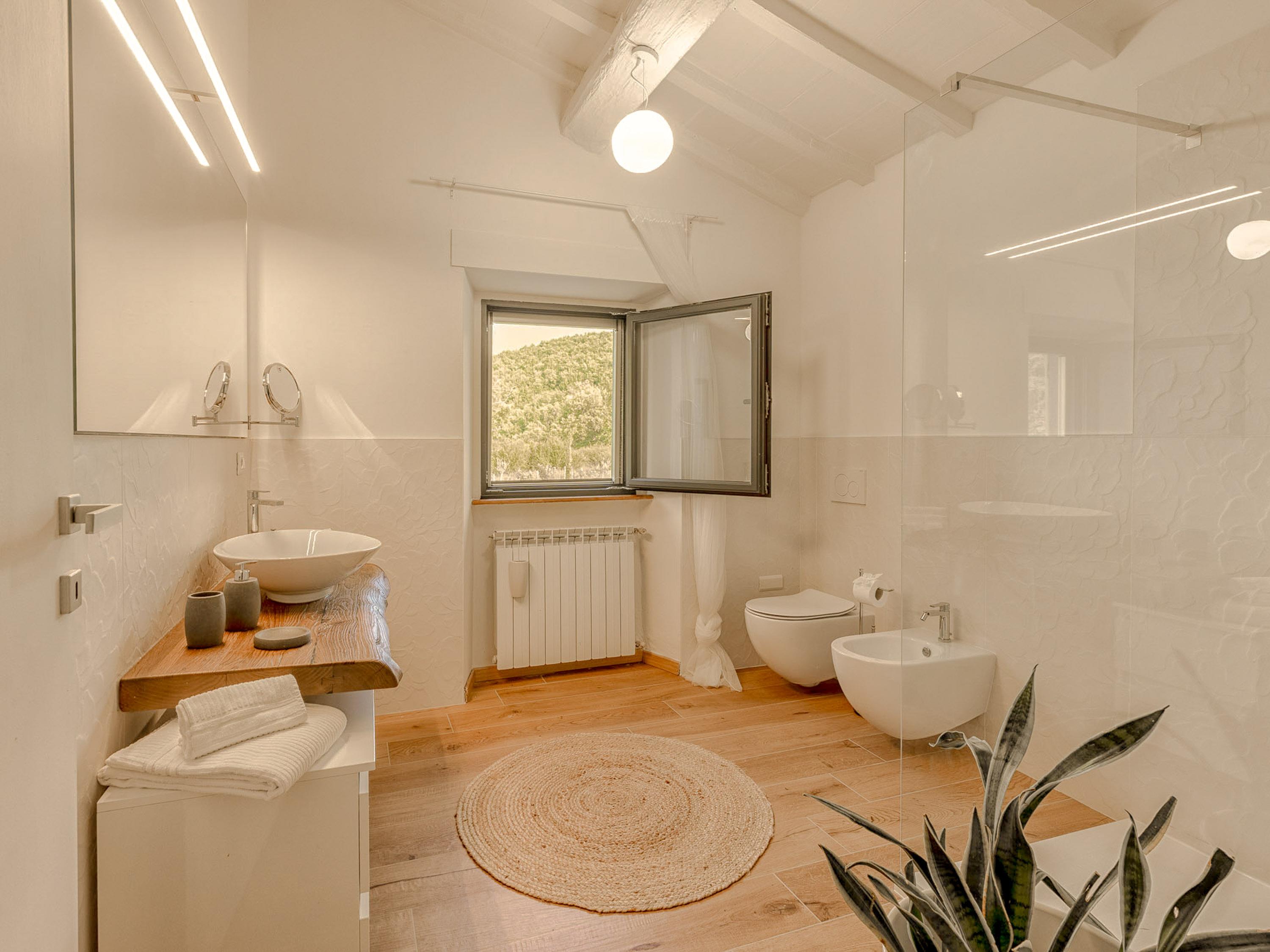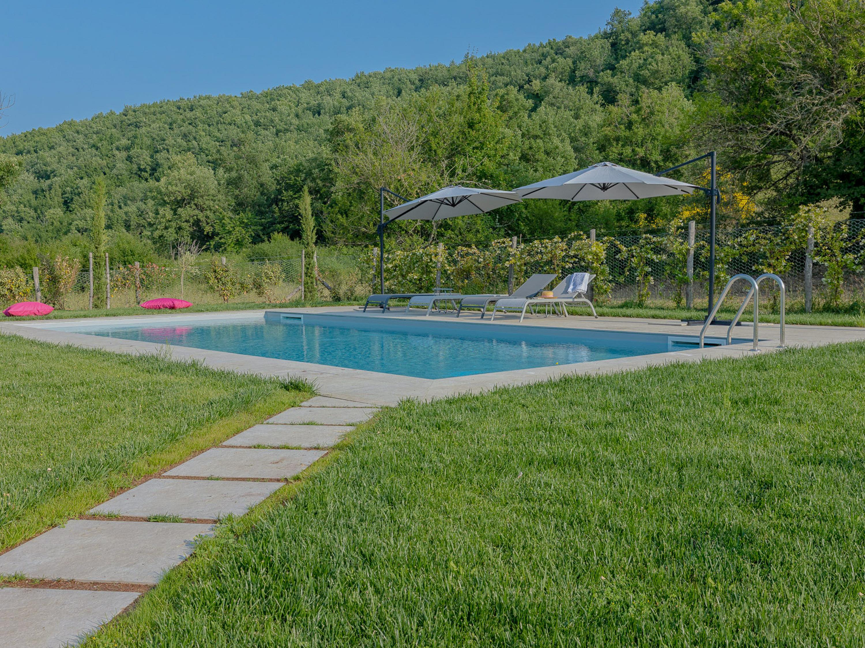 Die zweite Etage des Hauses verfügt über drei helle Schlafzimmer, die alle mit Klimaanlage ausgestattet sind, sodass Sie auch an heißen Tagen für angenehme Kühle sorgen können. Ein weiteres Duschbad auf dieser Etage rundet das komfortable Wohnangebot ab. Die Casa Mia Toscana ist eine perfekte Kombination aus Funktionalität und Gemütlichkeit – ein Ort, an dem sich Lebensqualität und Stil harmonisch vereinen. Für eine erfrischende Abkühlung an heißen Tagen steht Ihnen ein Pool zur Verfügung. Das Haus ist ideal für Familien geeignet und bietet alles, was man für einen gelungenen Urlaub in der Toskana benötigt.