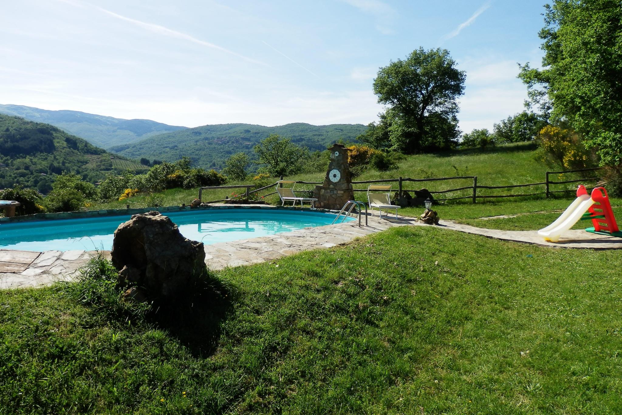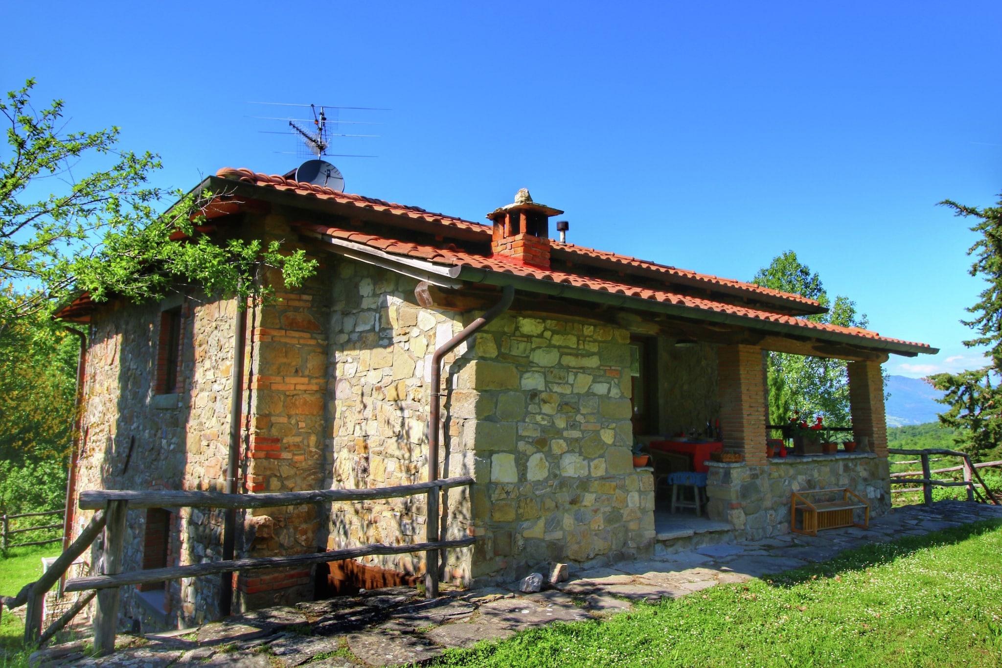 Dette sjarmerende kjæledyrvennlige feriehuset er et gårdshus med 3 soverom som komfortabelt har plass til opptil 6 gjester. Plassert i et rolig skogsområde, tilbyr det en privat hage, veranda og et forfriskende svømmebasseng, perfekt for avslapning og utendørs nytelse. Eiendommen har en grill, ideell for å samles med familie og venner. _x000D_ _x000D_ Våningshuset er en utmerket base for kulturelle turer, med Firenze, Arezzo og andre pittoreske toskanske byer bare en kort kjøretur unna. Lokale butikker og restauranter ligger 3 km unna, mens sentrum ligger 8 km unna. En vakker innsjø, også 8 km fra eiendommen, bidrar til den naturlige skjønnheten i området. Den nærliggende byen Ortignano Raggiolo, kun 3 km unna, er et must-besøk for sin sjarm og lokale attraksjoner._x000D_ _x000D_ Innvendig har huset et fullt utstyrt moderne åpent kjøkken, og stuen og soverommene er smakfullt innredet med luksuriøst interiør, noe som gir en koselig og komfortabel atmosfære. Parkering er tilgjengelig på stedet for enkelhets skyld. Den nærmeste flyplassen ligger 120 km unna, og tilbyr enkel tilgang til eiendommen for internasjonale reisende.