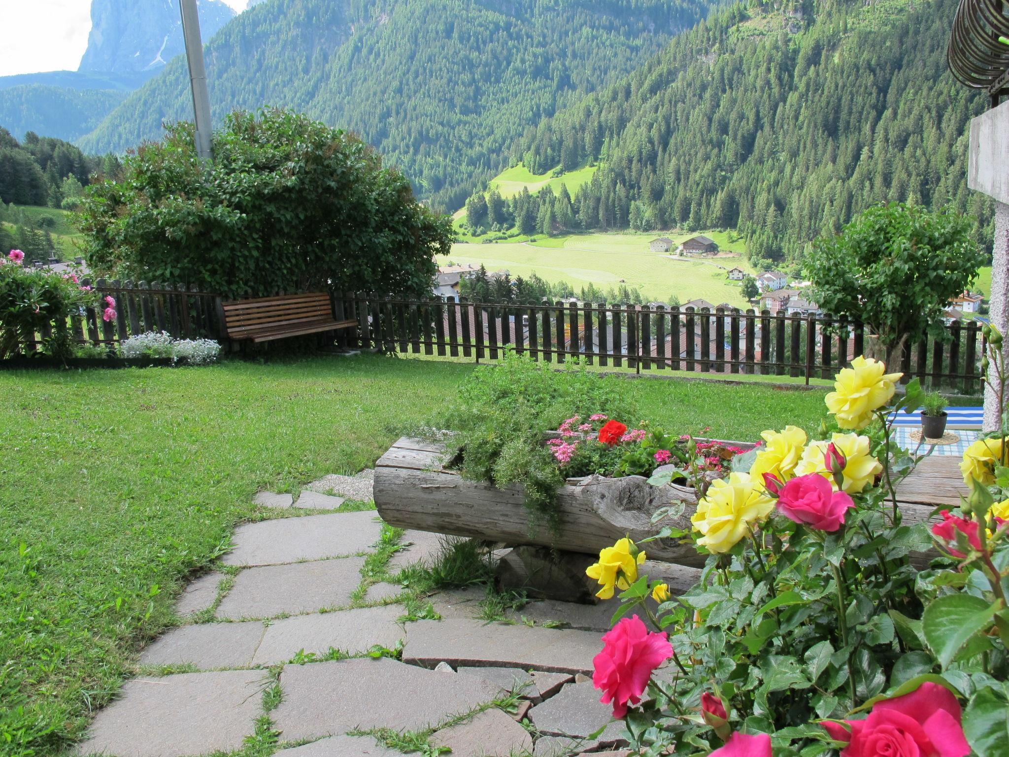 2-family house "Mastle". 700 m from the centre of St. Ulrich/Ortisei, 6 km from the centre of S. Cristina Valgardena, 37 km from the centre of Bolzano, in a sunny position on a slope. For shared use: property, well-kept garden with lawn. In the house: storage room for bicycles, storage room for skis. Parking on the premises. Shop 900 m, restaurant 50 m, bus stop "Ortisei" 700 m, railway station "Bolzano" 36 km, indoor swimming pool 2 km. Golf course (18 hole) 16 km, mountain railway 1.4 km, ski lift 1.4 km, gondola lift 1.7 km, ski bus stop 50 m. Well-known ski regions can easily be reached: Seceda, Seiser Alm. Please note: the owner lives in the same residence.
