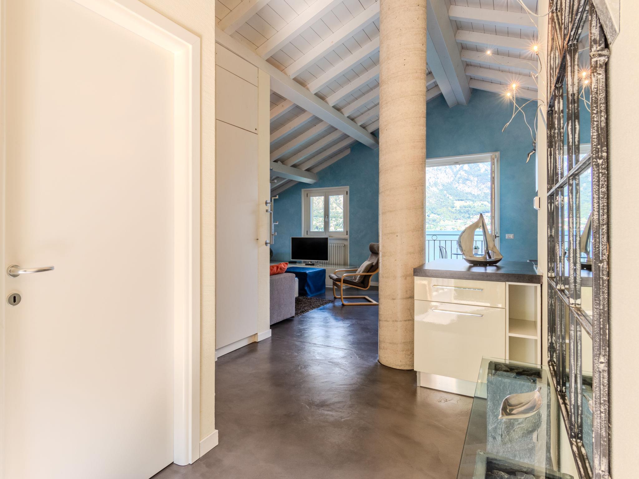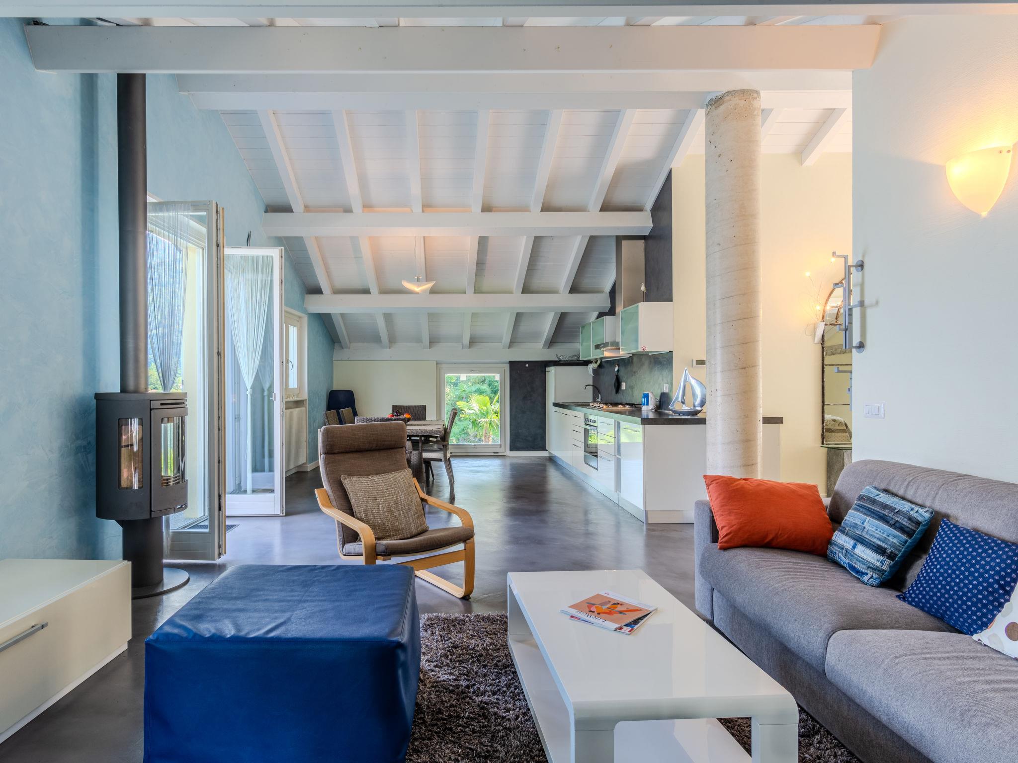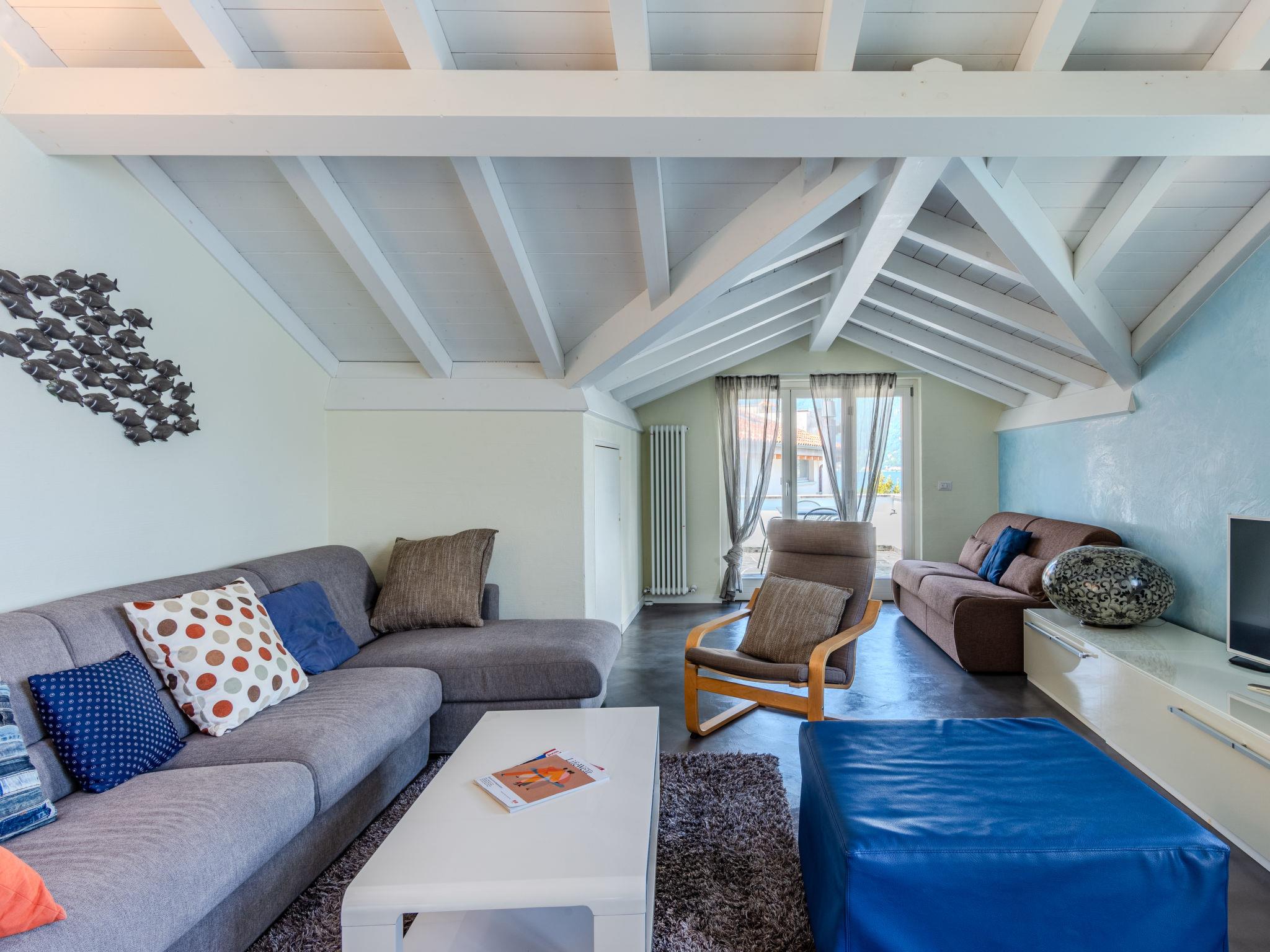 "Onda", 3-room penthouse 112 m2 on 2nd floor. Spacious and bright, comfortable and beautiful furnishings: open large living/sleeping room with 1 double sofabed, Scandinavian wood stove, dining table and TV (flat screen). Exit to the balcony, to the terrace. 1 double bedroom. 1 room with 2 beds. Open kitchen (oven, dishwasher, Gas stove, 4 gas rings, kettle, freezer). Shower/bidet/WC. Gas heating. Heating available only from 15.09. to 30.04. 2 balconies, large terrace 13 m2. Terrace furniture, balcony furniture. Marvellous panoramic view of the lake and the mountains. Facilities: children's high chair, baby cot for up to 2 year olds, hair dryer. Internet (WiFi, free). Please note: non-smokers only. Private entrance. IT013071C2PV8E2RTA