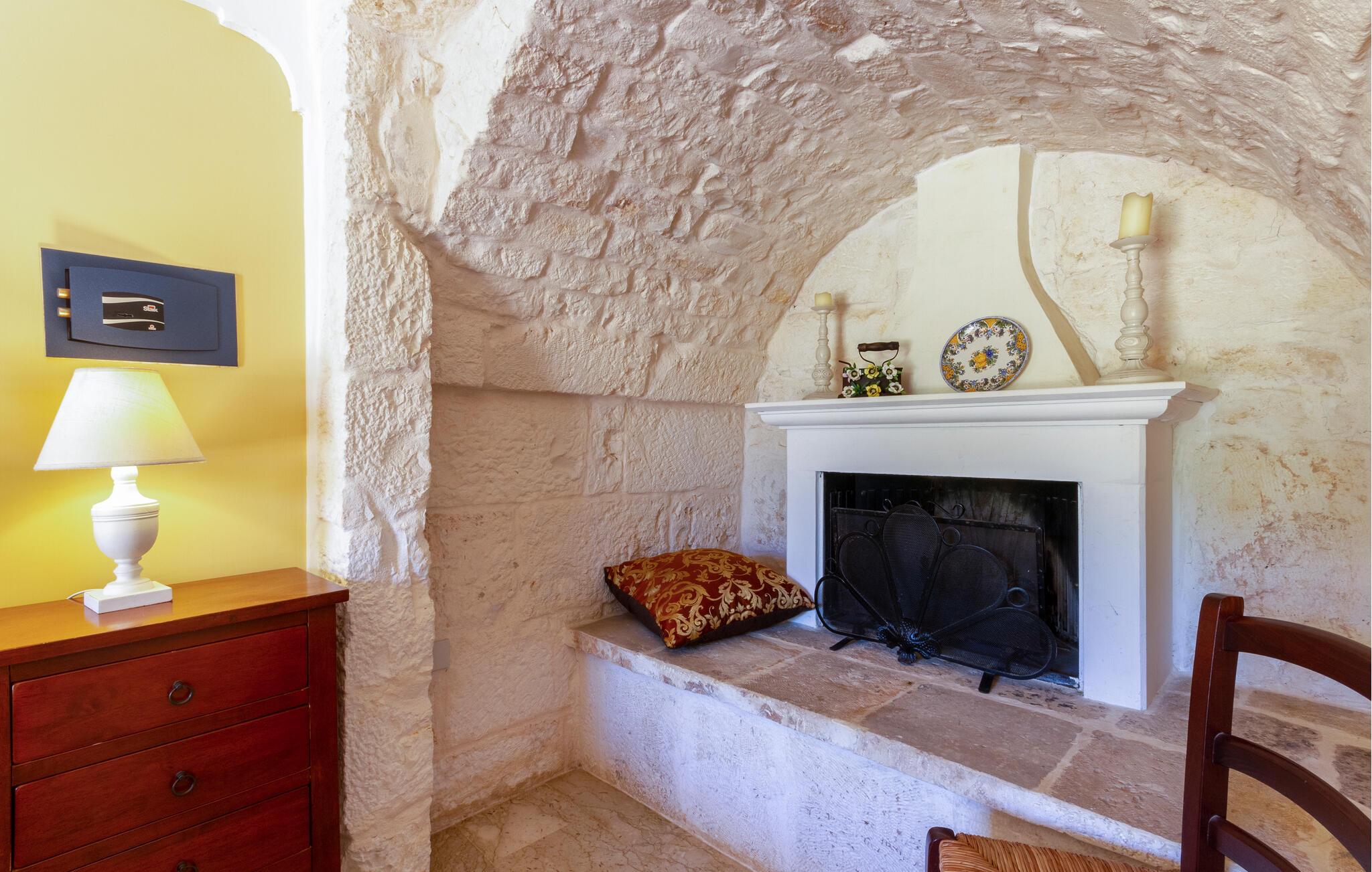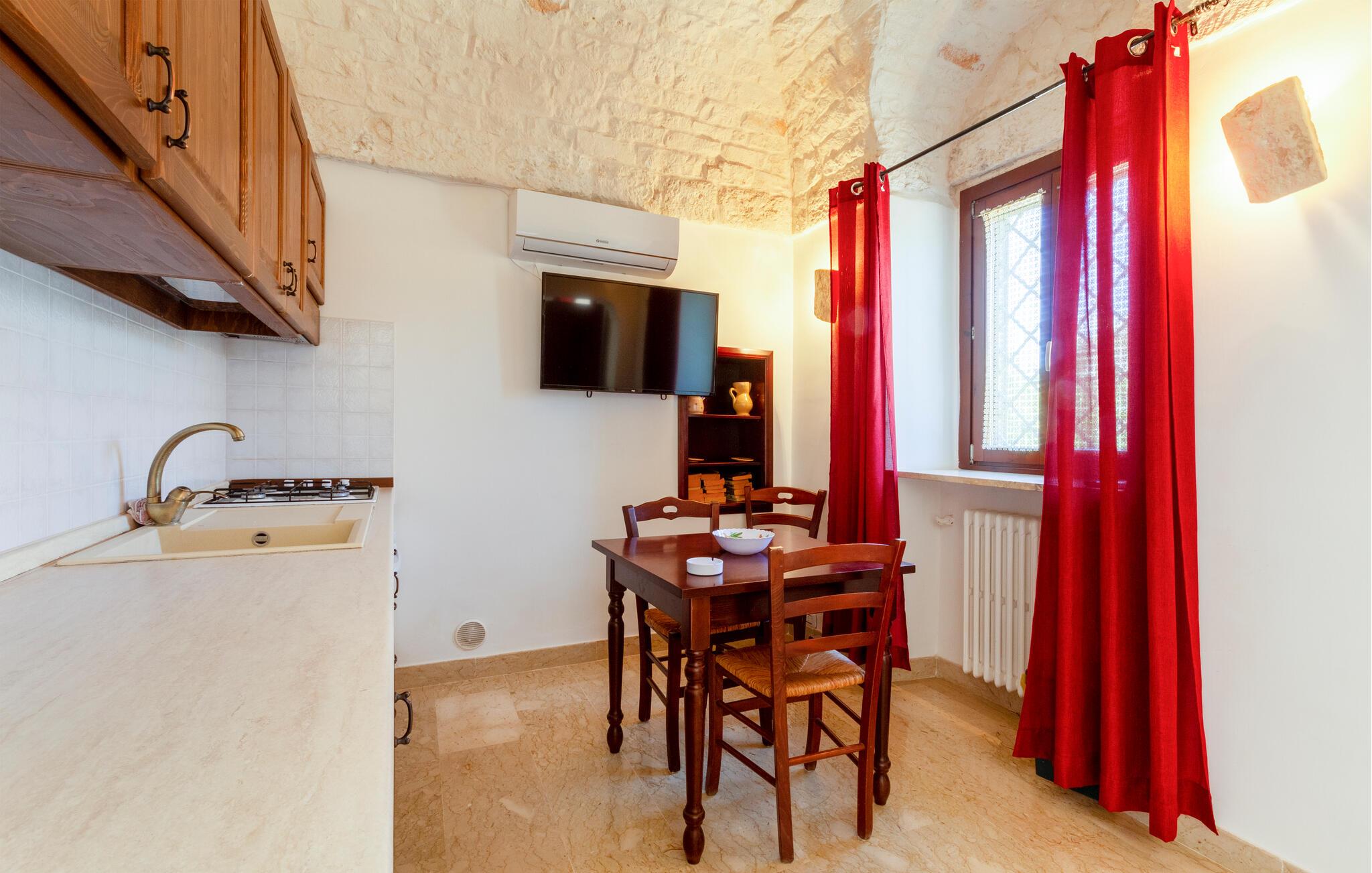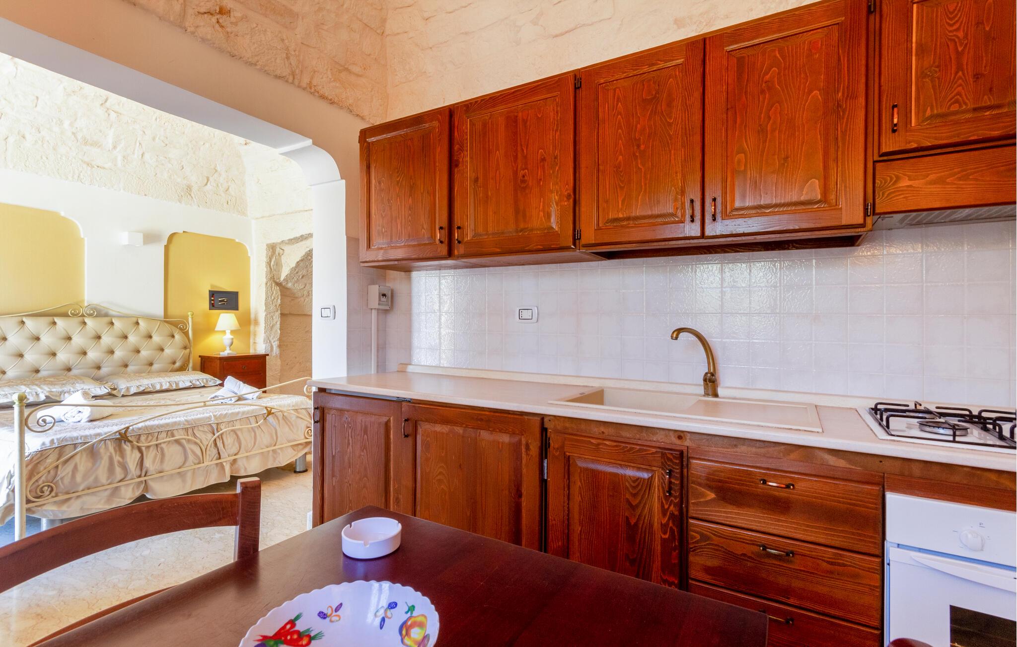 Feriehuset ditt i Ostuni tilbyr deg en herlig kombinasjon av komfort, natur og avslapning. Enten du vil slappe av i solen ved bassenget eller utforske de vakre omgivelsene i Apulia, her finner du det ideelle stedet for en pause fra hverdagen. Det kompakte interiøret i huset har en autentisk design. Tilbered en lett frokost på det lille kjøkkenet om morgenen, og planlegg deretter dagens utflukter over en kopp kaffe.