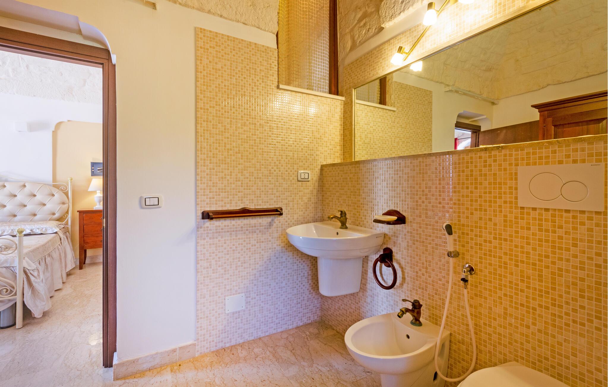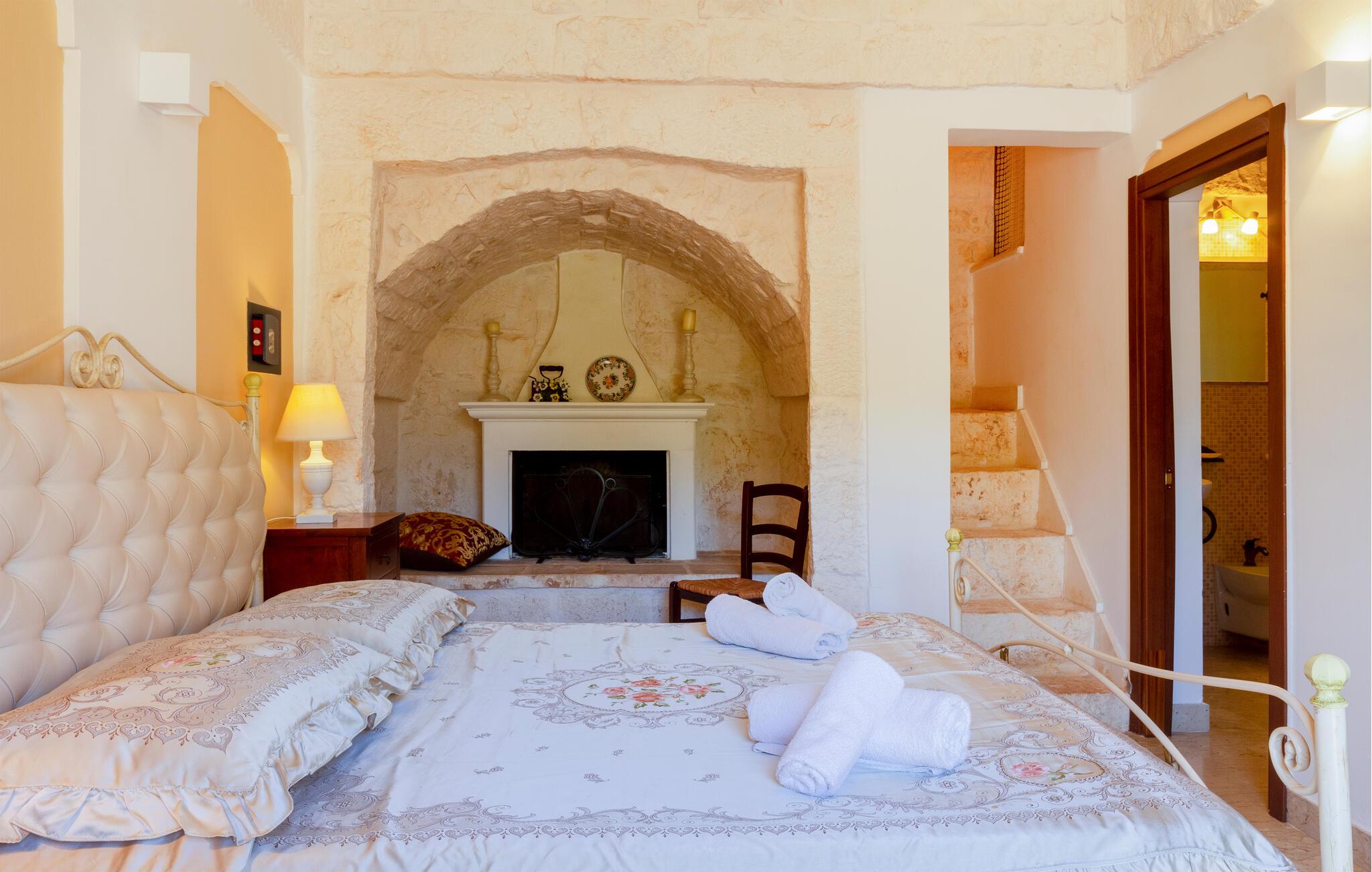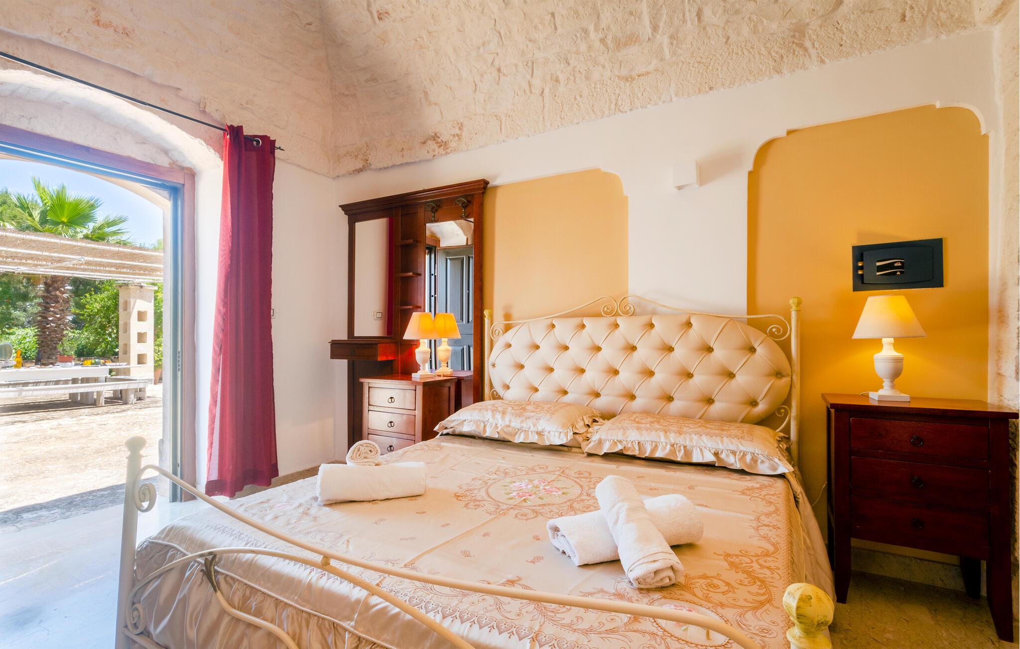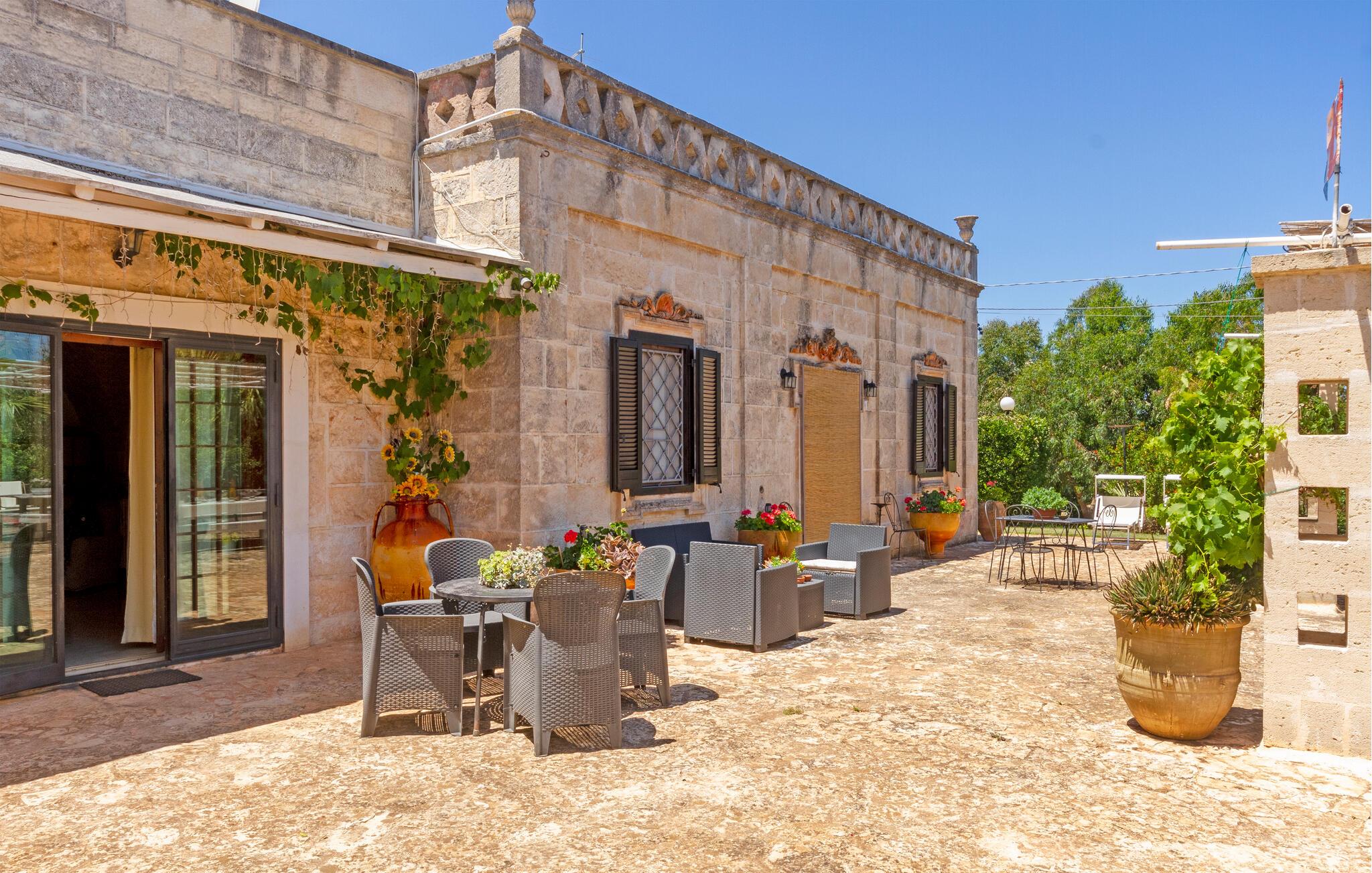 Feriehuset ditt i Ostuni tilbyr deg en herlig kombinasjon av komfort, natur og avslapning. Enten du vil slappe av i solen ved bassenget eller utforske de vakre omgivelsene i Apulia, her finner du det ideelle stedet for en pause fra hverdagen. Det kompakte interiøret i huset har en autentisk design. Tilbered en lett frokost på det lille kjøkkenet om morgenen, og planlegg deretter dagens utflukter over en kopp kaffe.