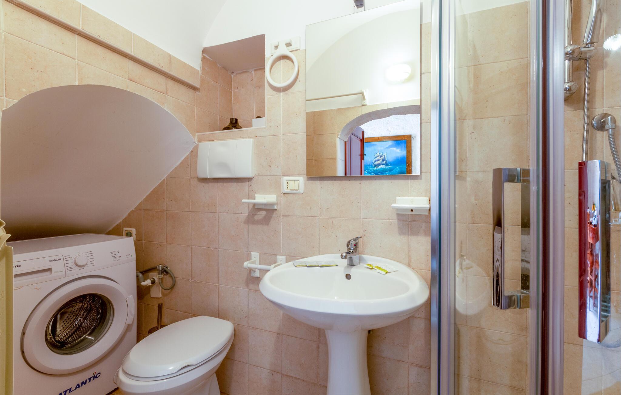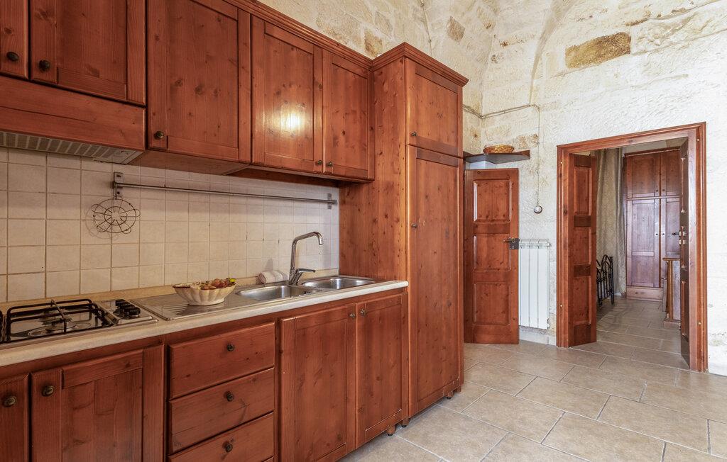 Feriehuset ditt i Ostuni tilbyr deg et vakkert tilfluktssted for avslappende dager i Apulia. Fordyp deg i den autentiske atmosfæren i den hvite byen og la deg fortrylle av dens middelhavssjarm. Utforsk de historiske smugene og nyt det deilige apuliske kjøkkenet. Interiøret i huset har vegger av naturstein og tremøbler, noe som gir rommene en rustikk og tradisjonell karakter. Spiseplassen med et massivt trebord er ideell for felles måltider. Tilbered måltider på kjøkkenet med ferske, lokale råvarer, og len deg deretter tilbake i den koselige sofaen og nyt en avslappende kveld.