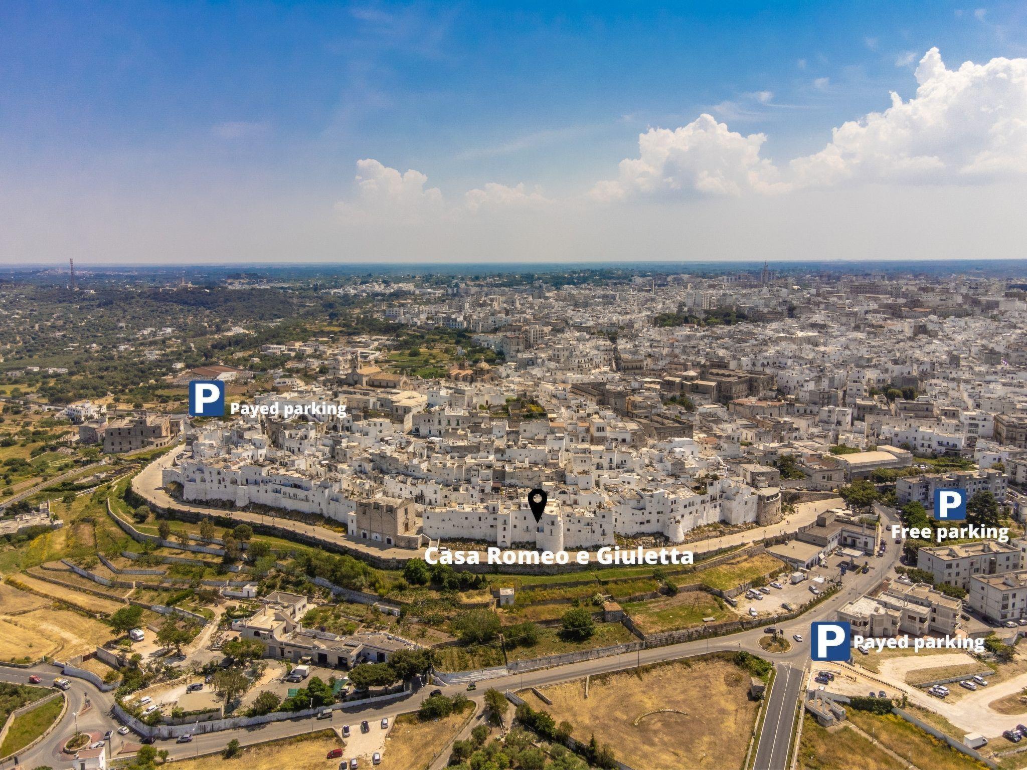 Romeo and Juliet is a little gem in Ostuni near Alberobello, the famous town of trulli. It is the ideal destination for a couple on holiday or a small family. From its terrace, the view of the sea is breathtaking. Four beds, an equipped kitchen and two panoramic terraces. You will find parking, a restaurant and a bread shop within 200 metres. And when you want to explore the coast you will reach beautiful beaches within an eight-minute drive. You will be only 150 m from 'Borgo Antico Bistrot' among the most scenic places for an unforgettable aperitif with Apulian products. Romeo and Juliet is ideally located for exploring all the attractions of the Itria Valley.