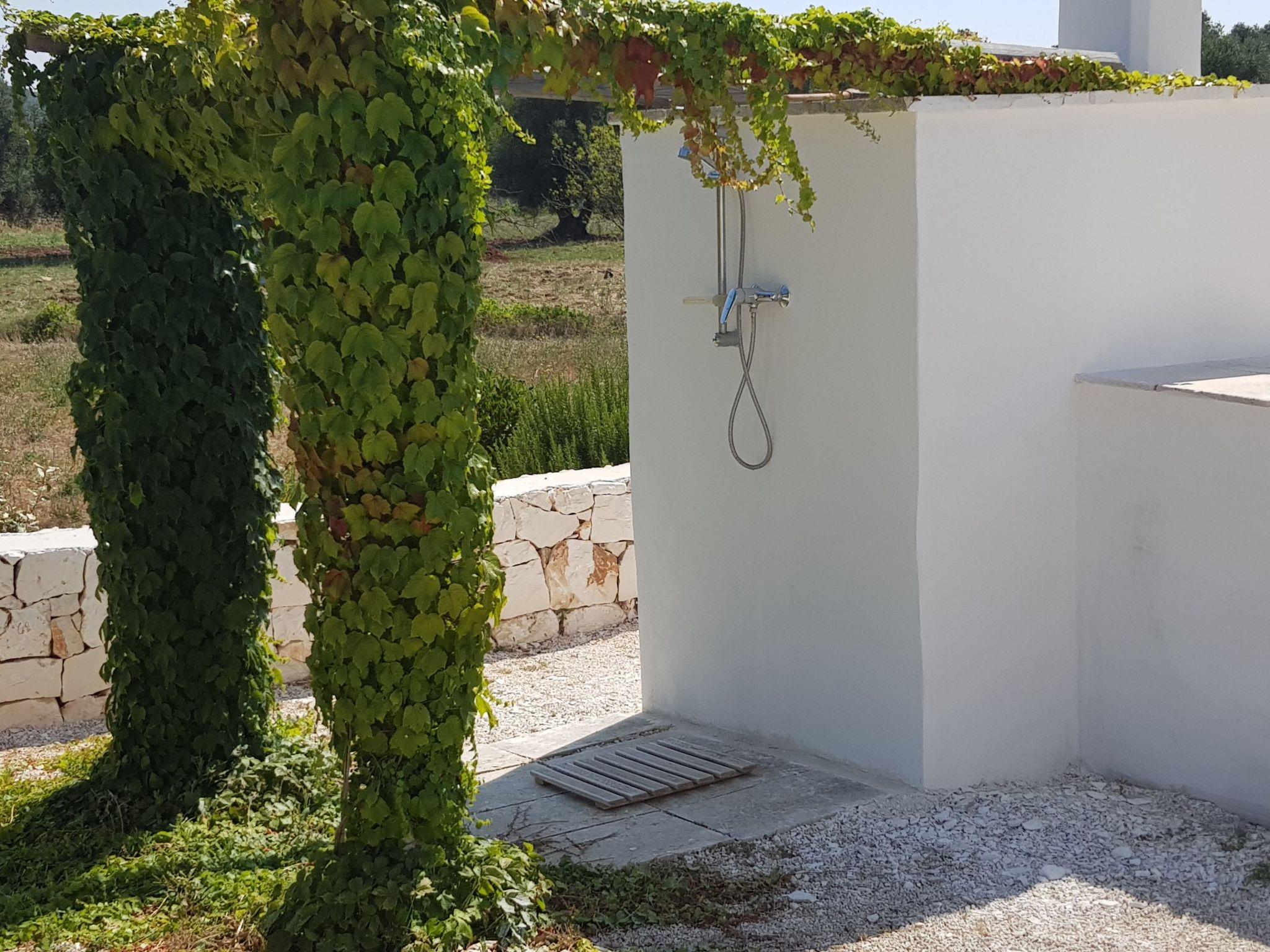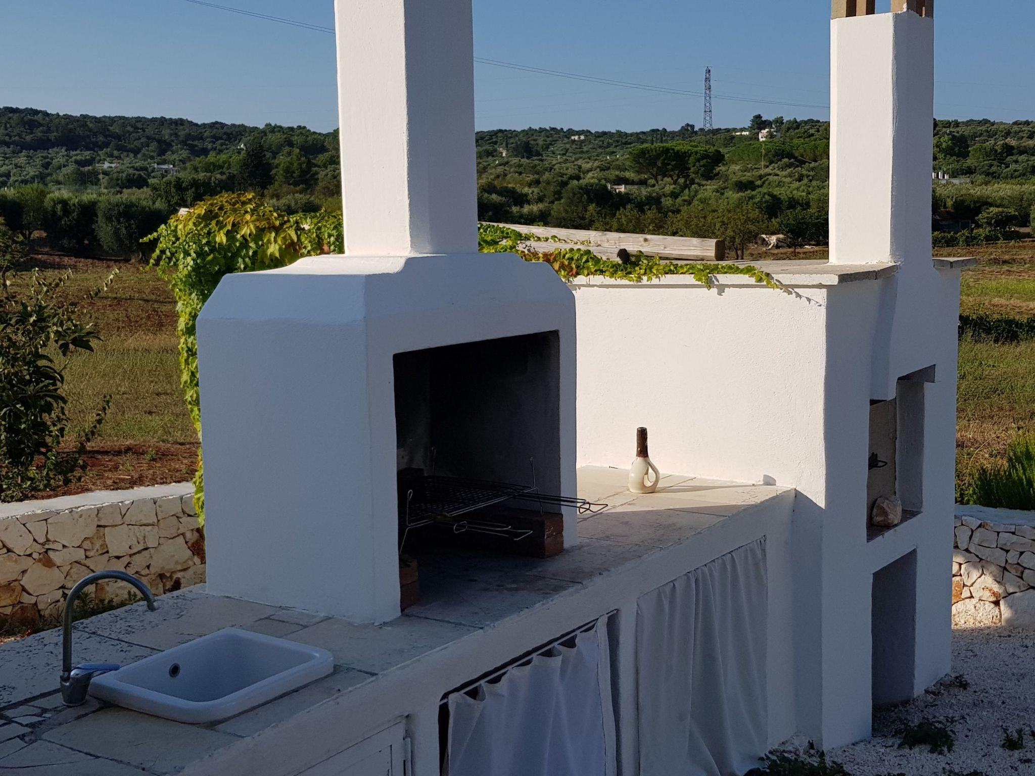 The trullo flat is located on a 4000 square metre plot and offers an outdoor barbecue and a pizza oven, as well as an outdoor shower with a terrace. Parking is also available.