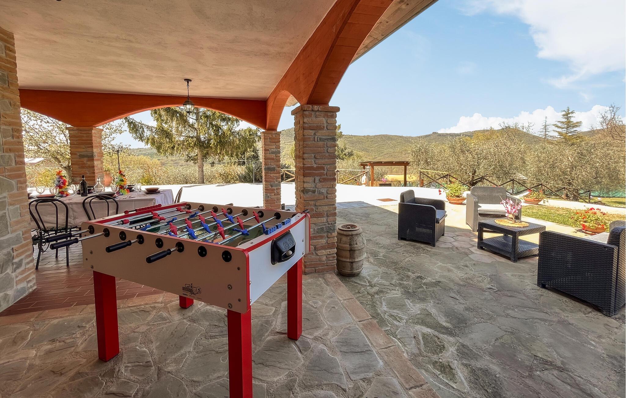 Flere terrasser åpner opp for utsikt over det pittoreske landskapet og byr på herlige steder å spise og slappe av. Forfrisk deg i bassenget, spill bordfotball eller bordtennis, og lad batteriene på solsengen.