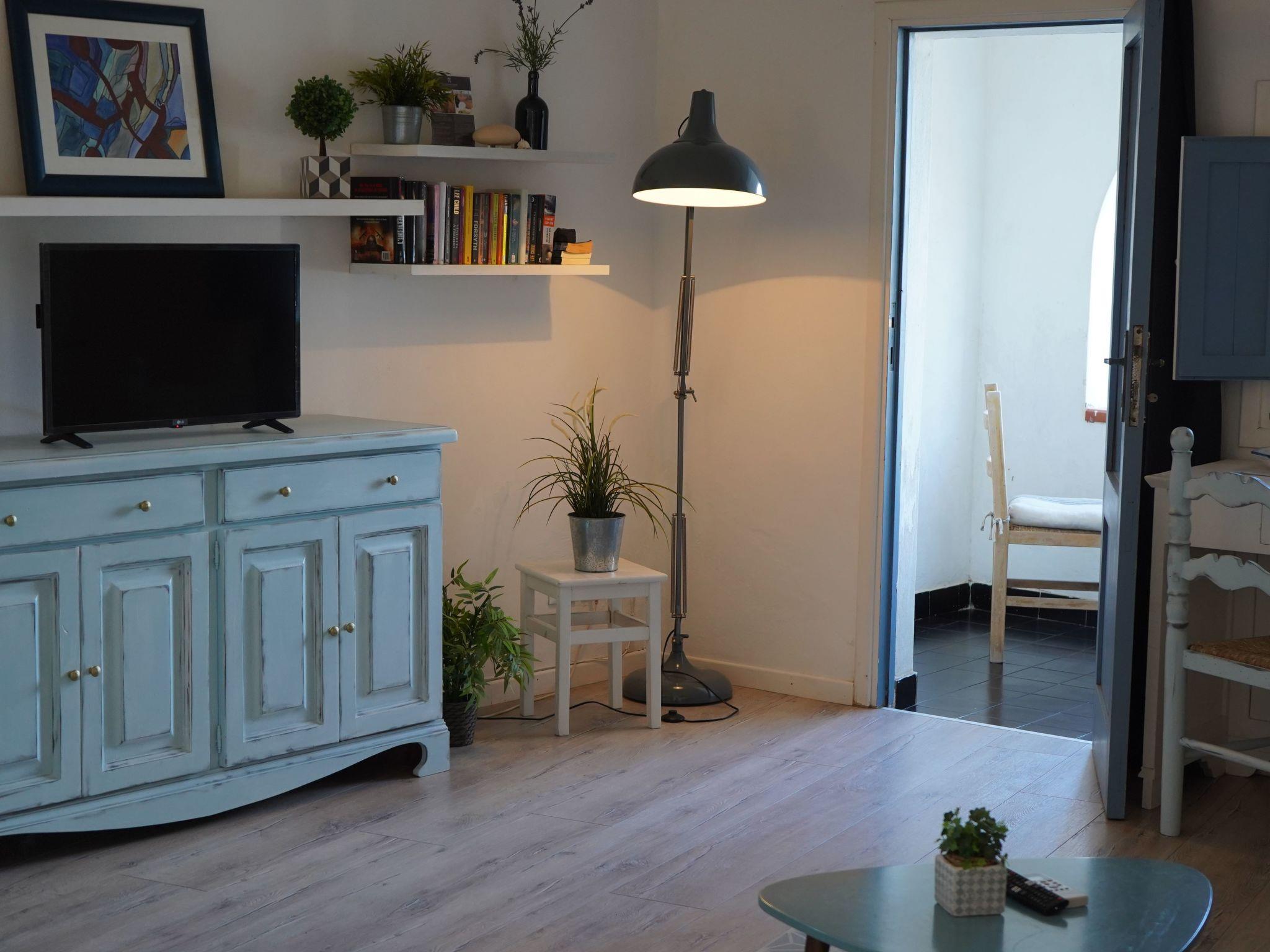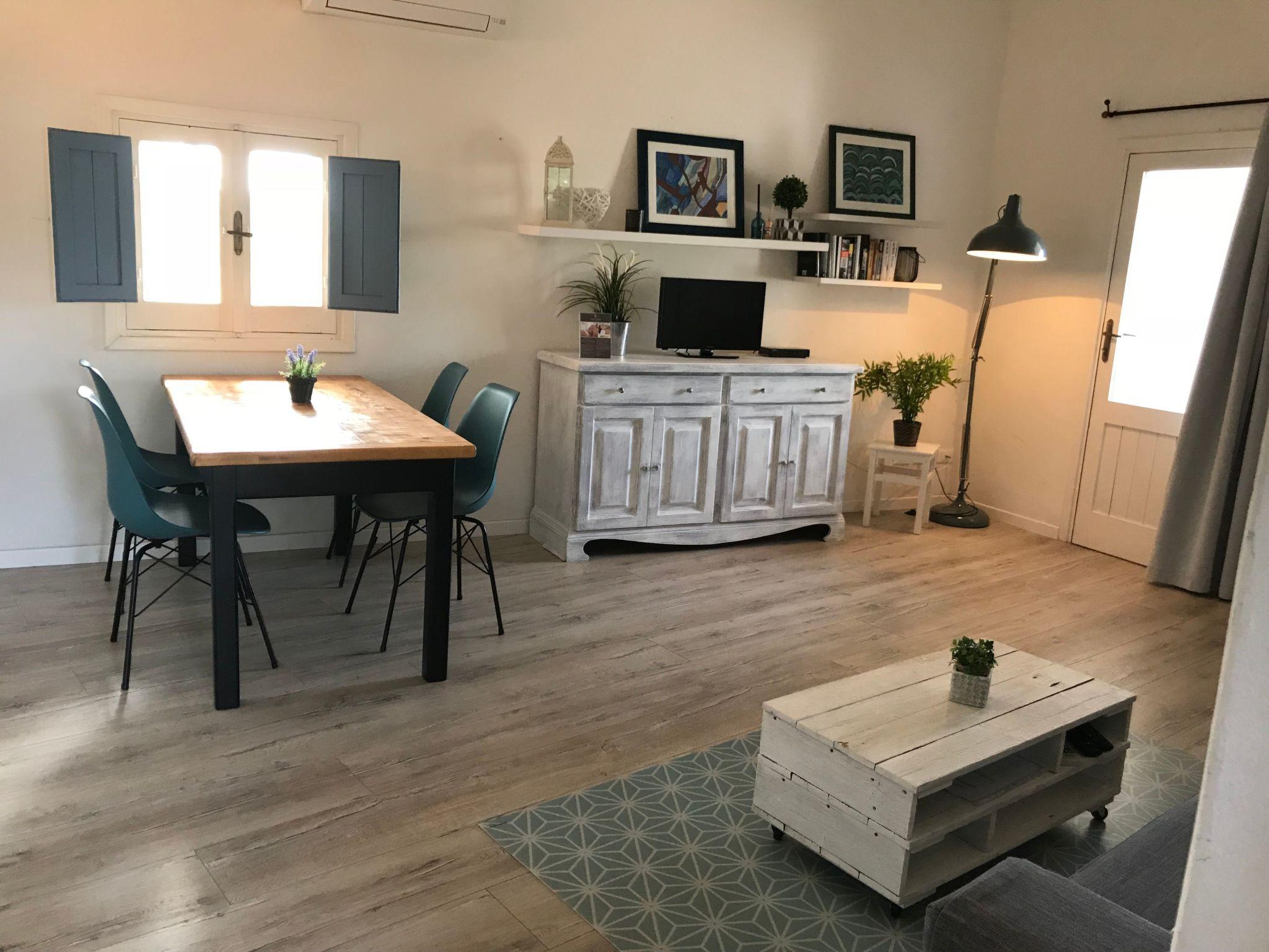 Equipped with a large living room, flat screen TV, air conditioning, heat pump, wi-fi connection, fully equipped kitchen, bathroom with shower, , bed linen and towels and a comfortable and spacious bedroom. Two covered terraces complete the flat. Bedroom with bed width (1.80m). Living room with 4-seater sofa and flat-screen satellite TV. Dining area with 4-seater table in the living room. Kitchen equipped with gas cooker and crockery. Bathroom with shower, hairdryer and linen included