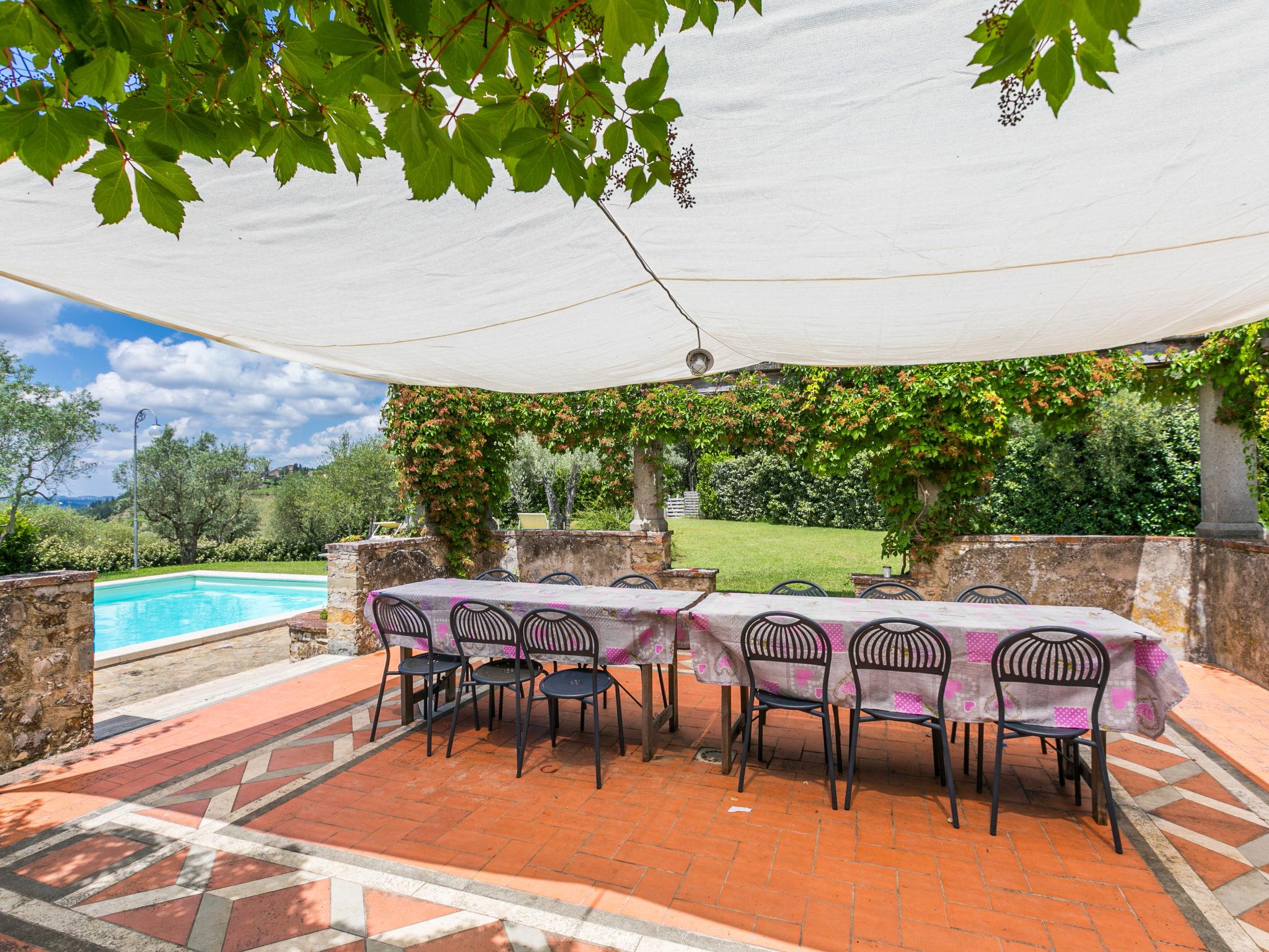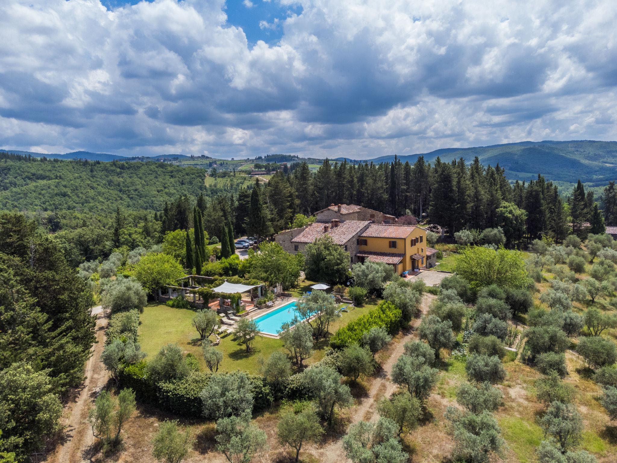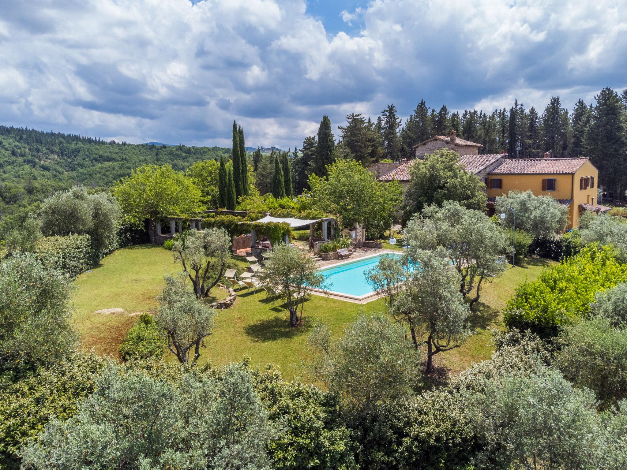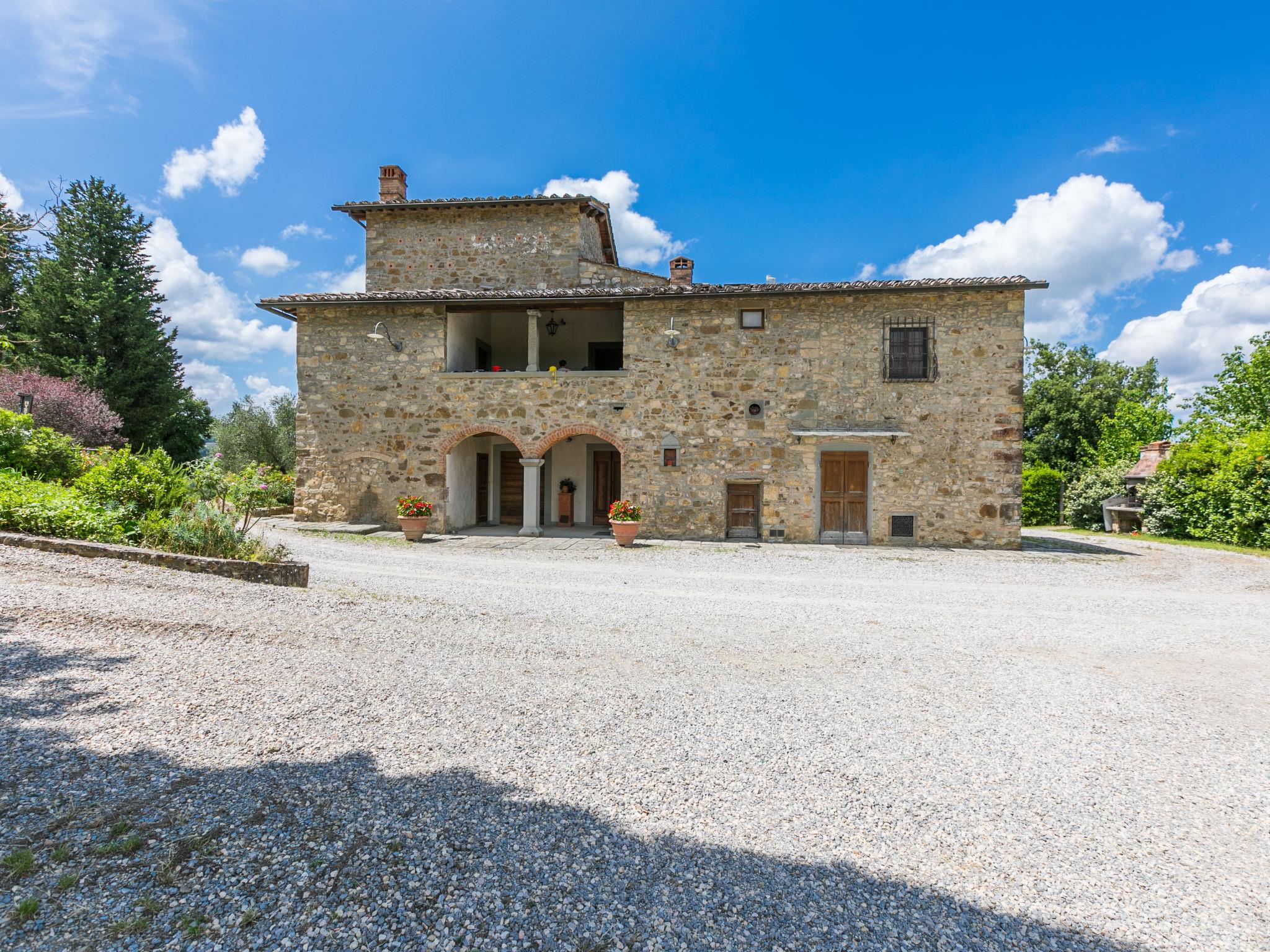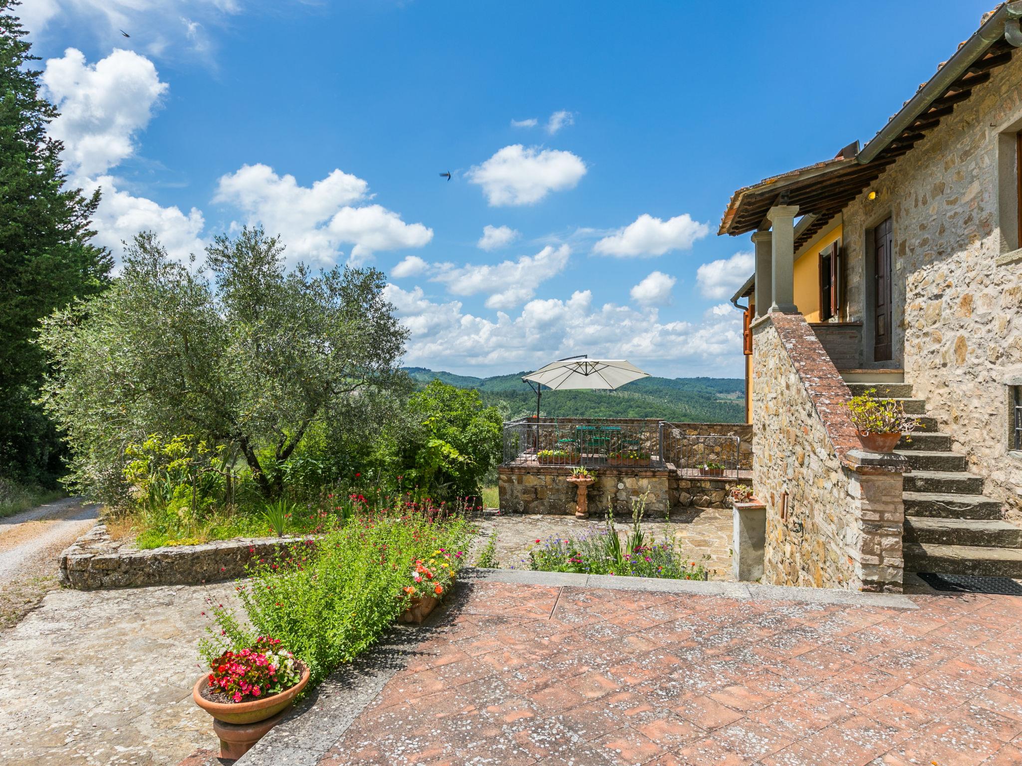 Cosy on a vinyard "Reggine", from the 18th century, renovated, surrounded by meadows and fields. 3 km from the centre of Panzano, 10 km from the centre of Greve in Chianti, 40 km from the centre of Firenze, in a secluded, elevated position, in the countryside. For shared use: property with lawn, orchard, swimming pool (12 x 6 m, seasonal availability: 01.May. - 15.Oct.). Outdoor shower, pergola, terrace, garden furniture, barbecue, pool maintenance by the owner/gardener. Motor access (2.4 km via unmade road). Parking on the premises. Shop 3 km, grocery 3 km, supermarket 10 km, restaurant 3 km, bakery 3 km, bus stop 3 km, indoor swimming pool 21 km. Golf course (18 hole) 25 km. Nearby attractions: Radda in Chianti 15 km, Siena 40 km, San Gimignano 40 km. Please note: car recommended. Baby equipment (included). Groups of teenagers on request only. Local sale of farm products. Owner uses some rooms in the house. All houses/apartments are individually designed/furnished.