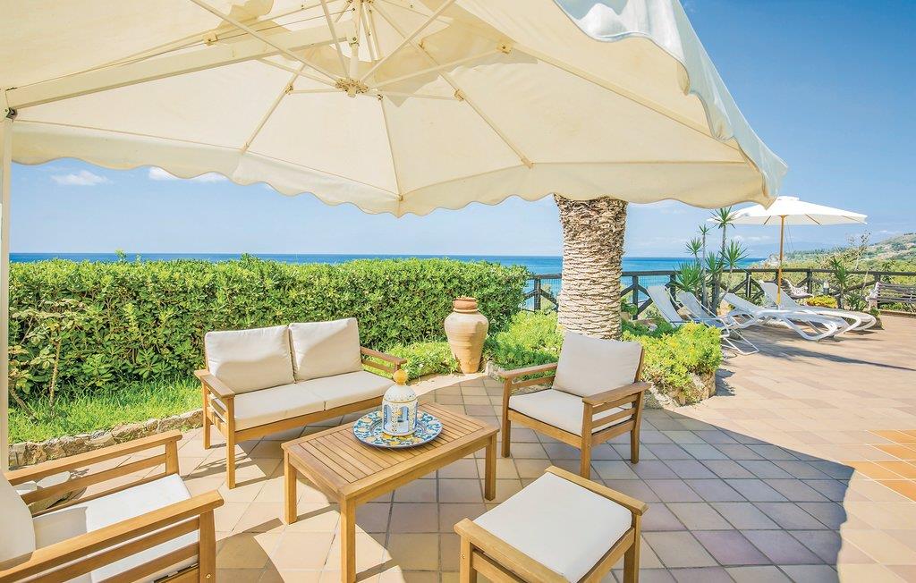 Vakkert feriehus med privat basseng i en fantastisk panoramautsikt ved sjøen, bare 150 m fra stranden. Feriehuset er omgitt av 400 m² uteområde i boligparken Costa dei Monaci, ca 4 km fra Parghelia, som er en av de vakreste kyststrekningene i Calabria. Huset tilbyr to vakre utstyrte terrasser for uteservering samt hagemøbler, solsenger og grill. Denne kyststrekningen er veldig populær blant vannsportentusiaster og dykkere, og hele regionen er preget av sine mange severdigheter. Noen utfluktstips: den populære turistbyen Tropea (også kjent for dyrking av den deilige rødløken) ligger bare ca. 7 km unna; Vibo Valentia med båtforbindelse for dagsturer til de eoliske øyer ligger ca. 30 km unna; den karakteristiske landsbyen Pizzo Calabro med sitt historiske sentrum 30 km unna. Tilstedeværelsen av landsbyens sandstrender avhenger av tidevannet på noen tider av året.