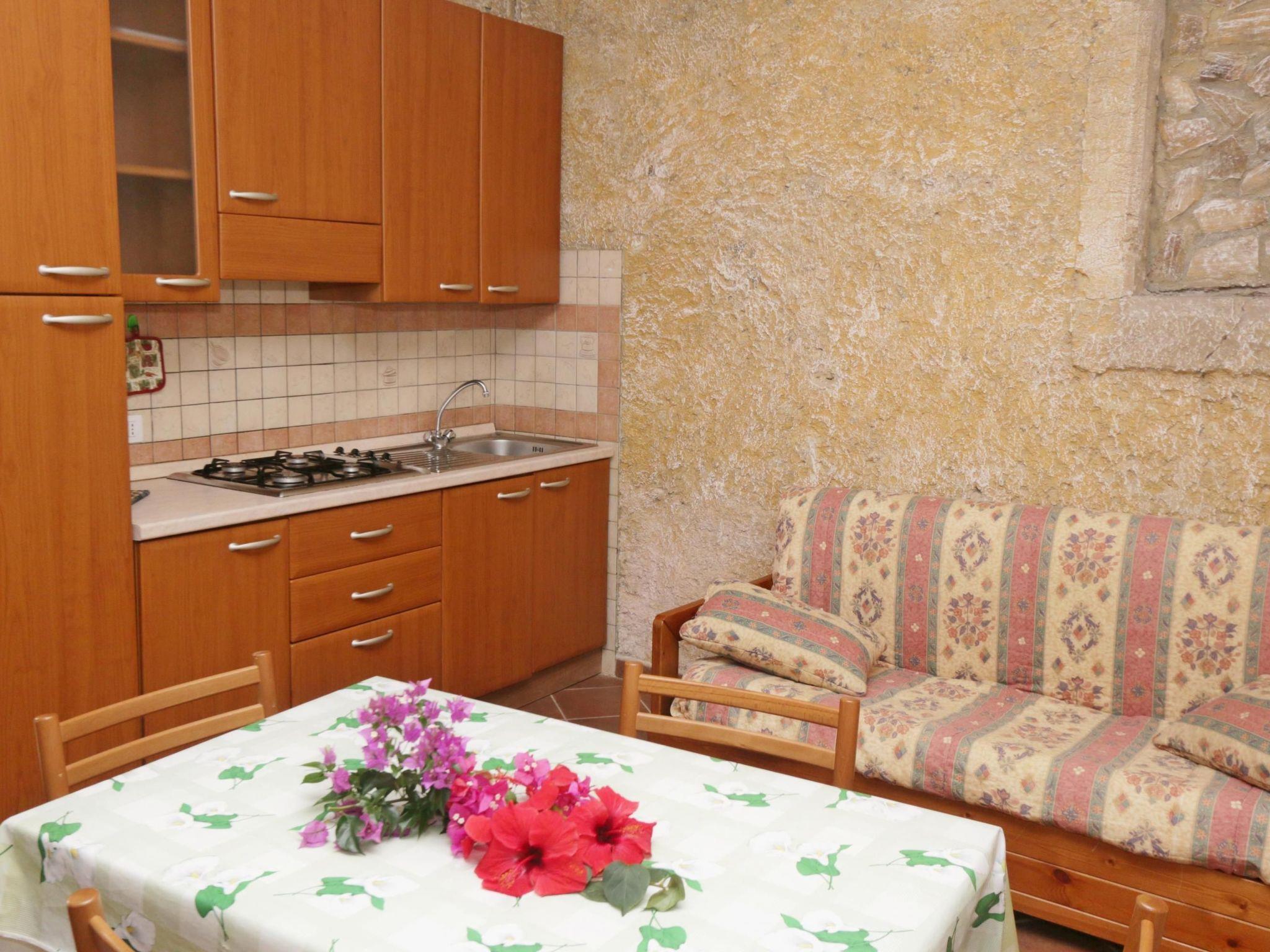 All'interior, the'appartamento dispone di una cucina soggiorno dotata di divano letto, ideale per condividere momenti di convivialità, accompagnata da una camera da letto matrimoniale per il vostro riposo ottimale e un bagno pratico con doccia. Per garantirvi un soggiorno confortevole, sono inclusi servizi come aria condizionata per affrontare i giorni più caldi, una TV a schermo piatto per i vostri momenti di relax e una connessione internet Wi-Fi per mantenervi sempre connessi.