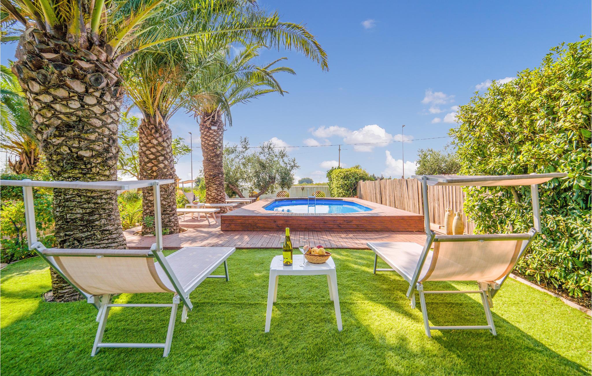 Den vakkert anlagte eiendommen er perfekt for å slappe av utendørs med en bok i skyggen eller sole seg under palmetrærne ved bassenget, som er herlig forfriskende på varme dager. Nyt de lune sommerkveldene, og ta gjerne måltidene ute.