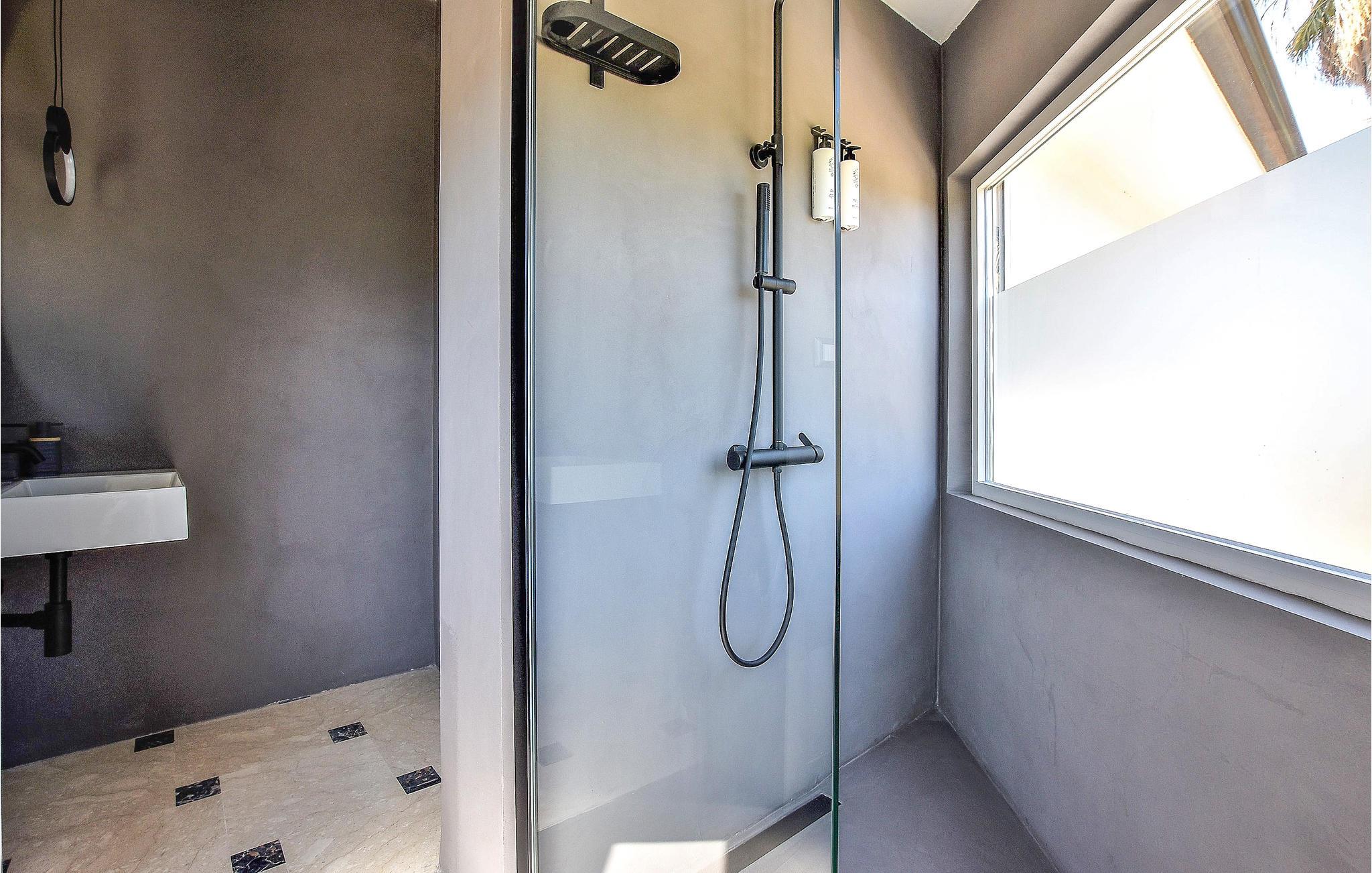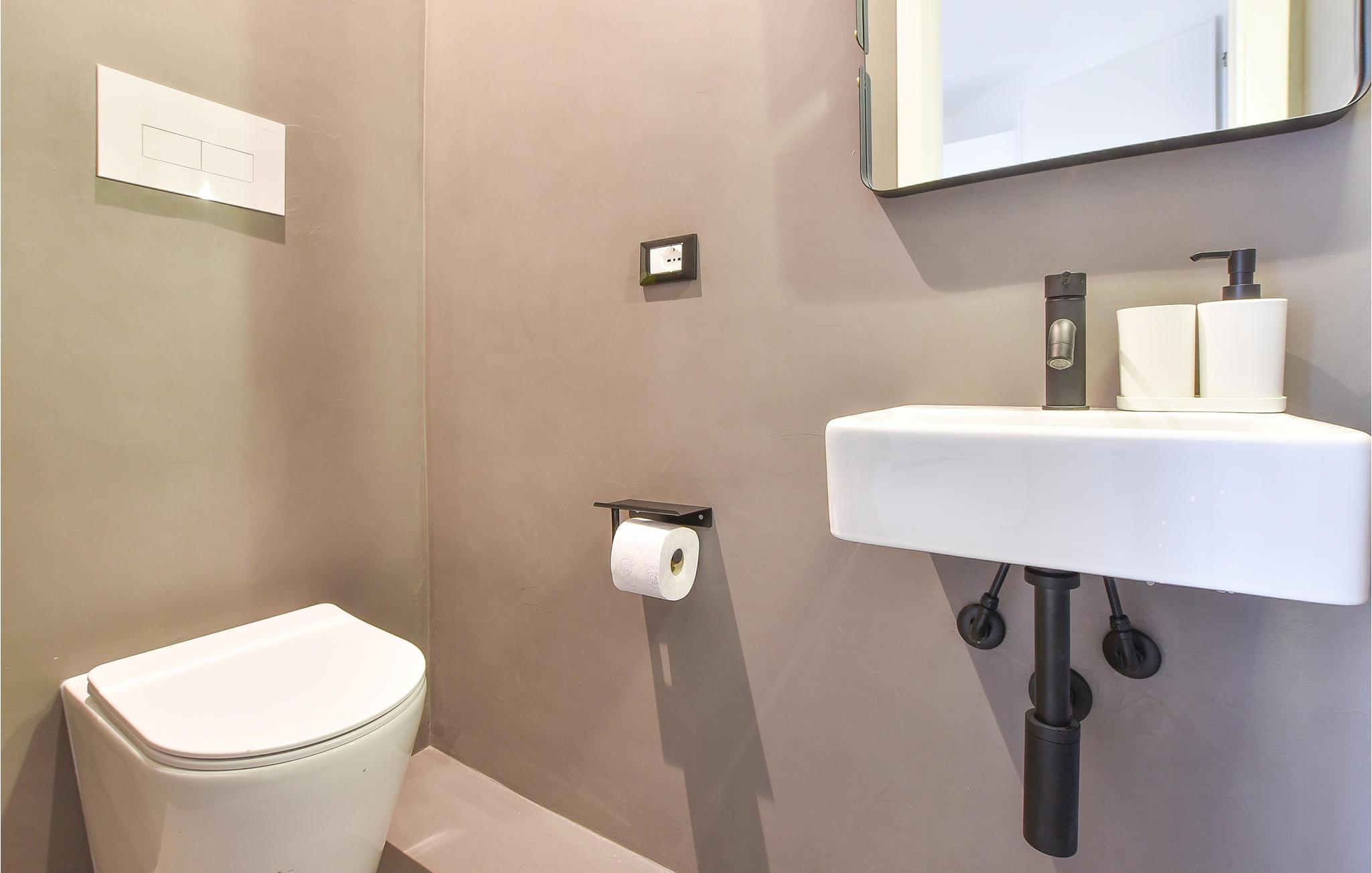 - WC med varmt og kaldt vann, Dusj