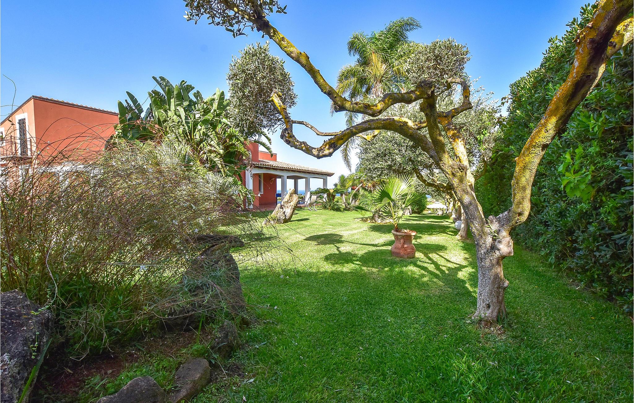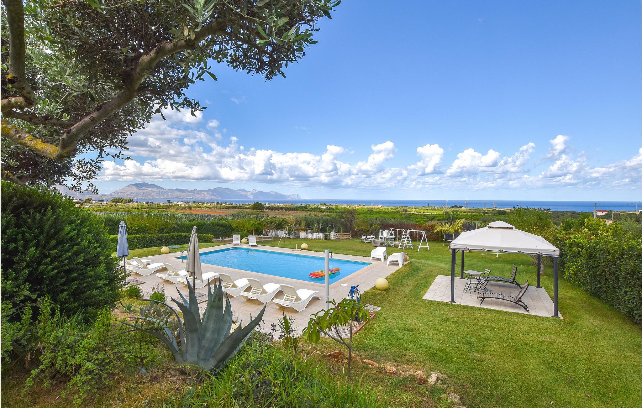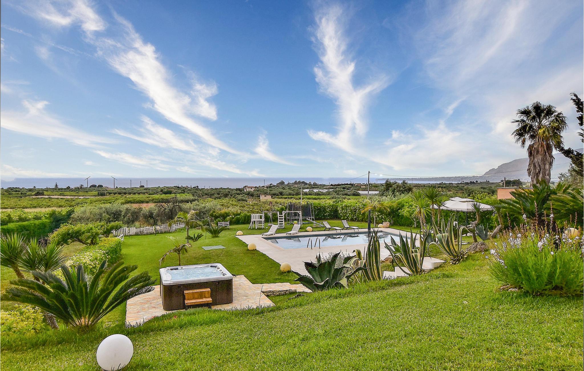 Omtrent 2,5 km fra Trappeto, i det vakre landskapet i Castellammare-bukten, venter dette store feriehuset med basseng og velholdt atmosfære. Huset er omgitt av en vakker hage (4000 m²) med plen, dammer, prydplanter, spill for barn og panoramabassenget, ideelt for avkjøling på de solfylte sicilianske dagene. Omgitt av vingårder og landlige omgivelser, ligger boligen på en liten høyde hvor du kan beundre vakre solnedganger og det fantastiske panoramaet som strekker seg fra klippene i Cala Rossa til San Vito lo Capo. Til din disposisjon er en vakker og stor overbygd terrasse hvor du kan spise med en fantastisk utsikt, et stort lysthus, solsenger og fluktstoler for avslapning. På grunn av sin privilegerte beliggenhet, nesten like langt fra Palermo og Trapani, fra huset kan du enkelt nå de vakreste stedene vest på Sicilia: Palermo, Monreale, Segesta, Selinunte, Egadi-øyene og mange andre. I første etasje av huset er det en stor stue med kjøkkenøy.
