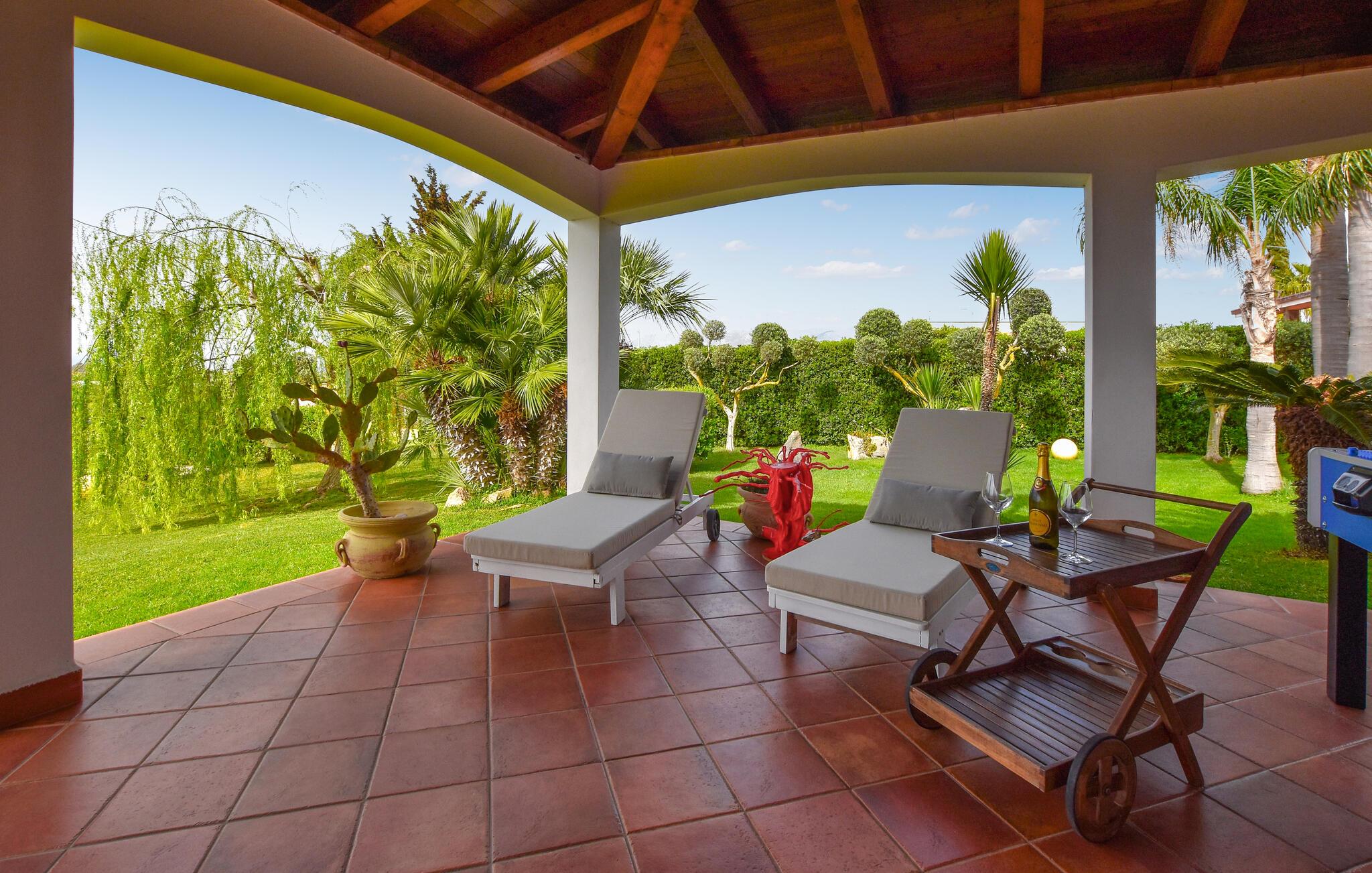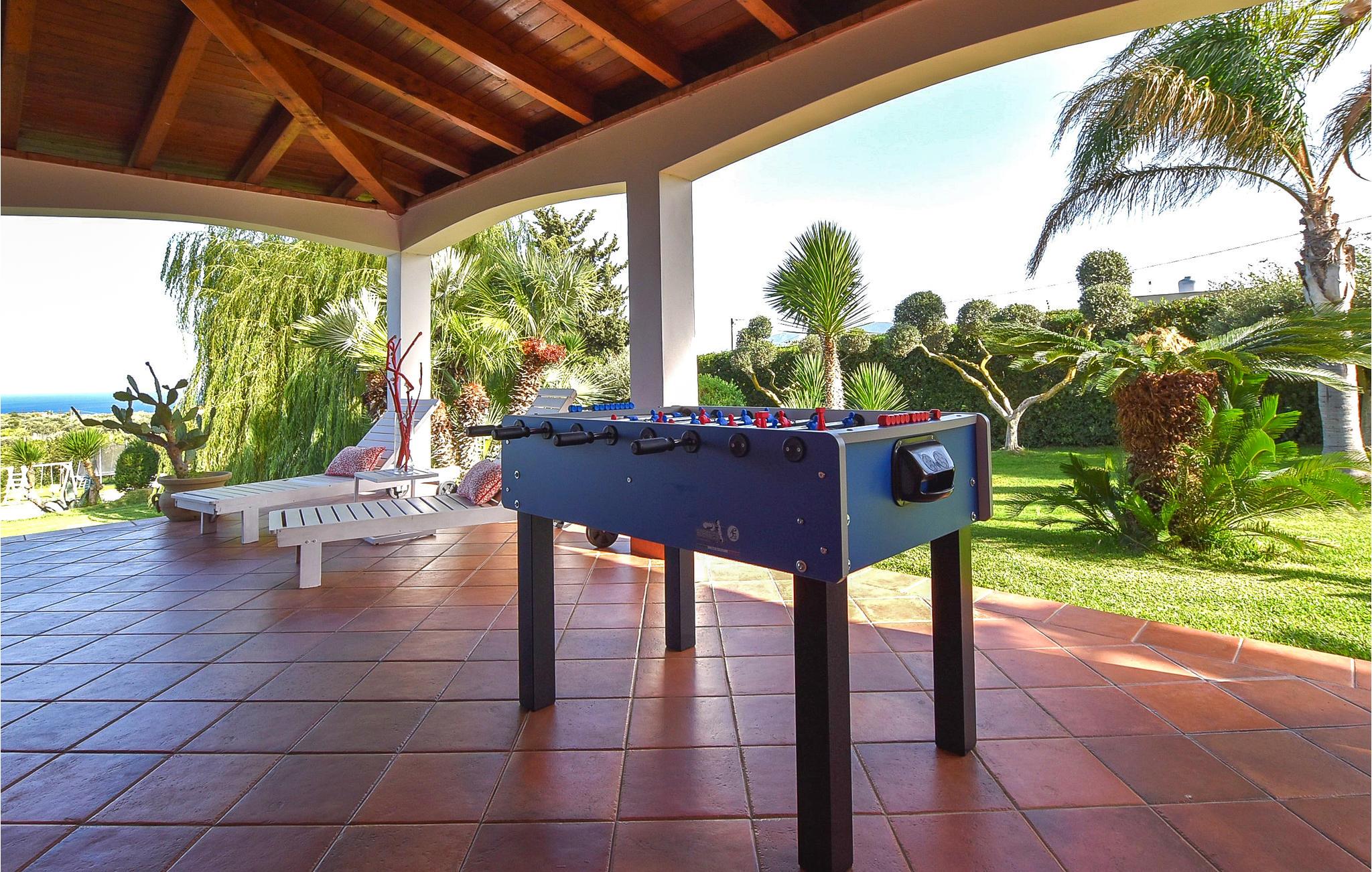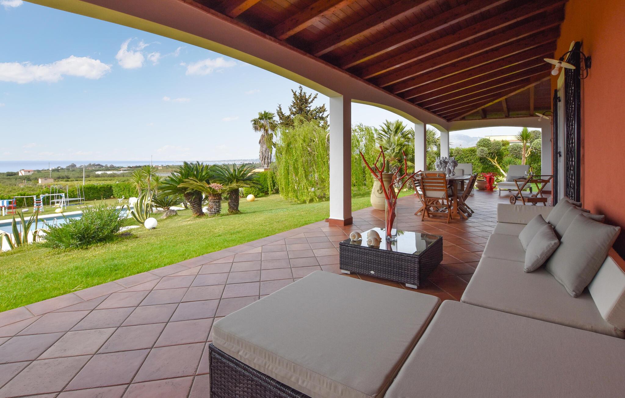 Omtrent 2,5 km fra Trappeto, i det vakre landskapet i Castellammare-bukten, venter dette store feriehuset med basseng og velholdt atmosfære. Huset er omgitt av en vakker hage (4000 m²) med plen, dammer, prydplanter, spill for barn og panoramabassenget, ideelt for avkjøling på de solfylte sicilianske dagene. Omgitt av vingårder og landlige omgivelser, ligger boligen på en liten høyde hvor du kan beundre vakre solnedganger og det fantastiske panoramaet som strekker seg fra klippene i Cala Rossa til San Vito lo Capo. Til din disposisjon er en vakker og stor overbygd terrasse hvor du kan spise med en fantastisk utsikt, et stort lysthus, solsenger og fluktstoler for avslapning. På grunn av sin privilegerte beliggenhet, nesten like langt fra Palermo og Trapani, fra huset kan du enkelt nå de vakreste stedene vest på Sicilia: Palermo, Monreale, Segesta, Selinunte, Egadi-øyene og mange andre. I første etasje av huset er det en stor stue med kjøkkenøy.
