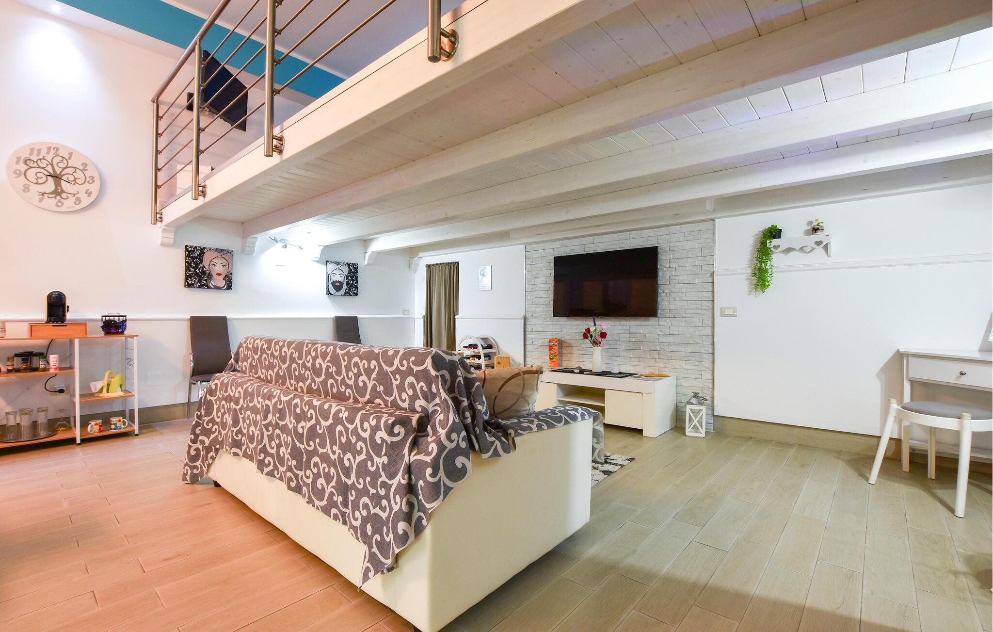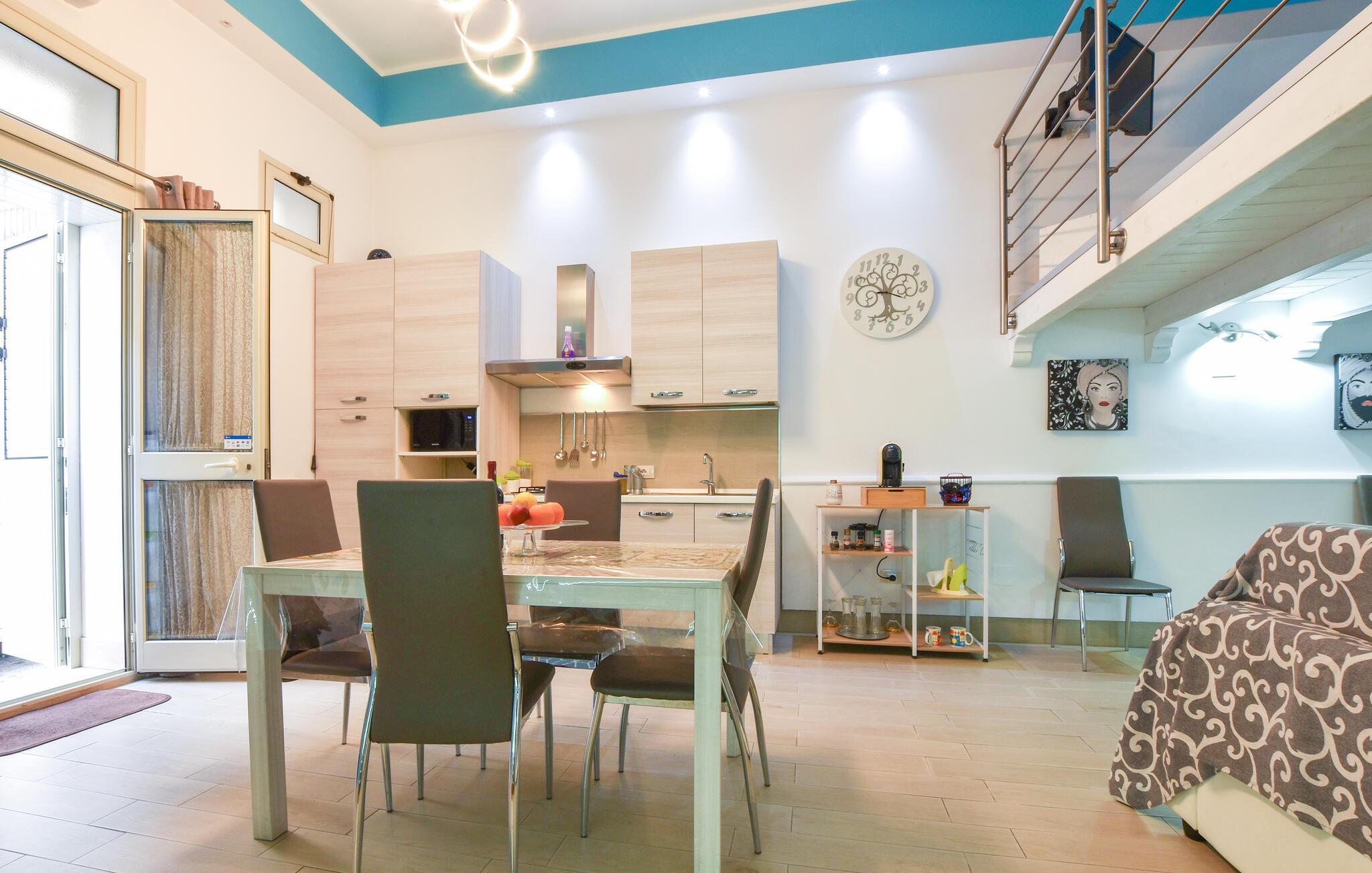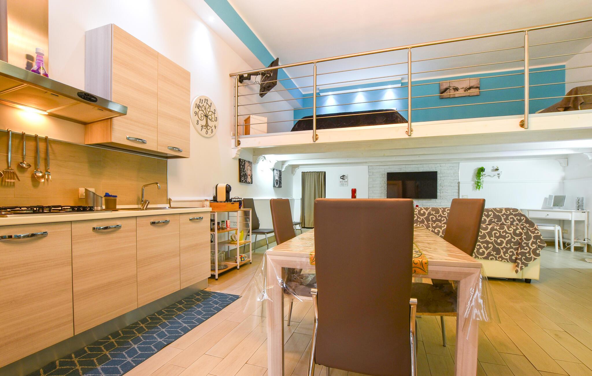 Med sin åpne planløsning tilbyr dette nennsomt restaurerte rekkehuset i loftstil god plass til å nyte en avslappende ferie med hele familien i nærheten av attraktive utfluktsmål. Tilbered deilige pastaretter sammen, planlegg eventyrene under hyggelige måltider og kos dere med et brettspill etter en begivenhetsrik dag.