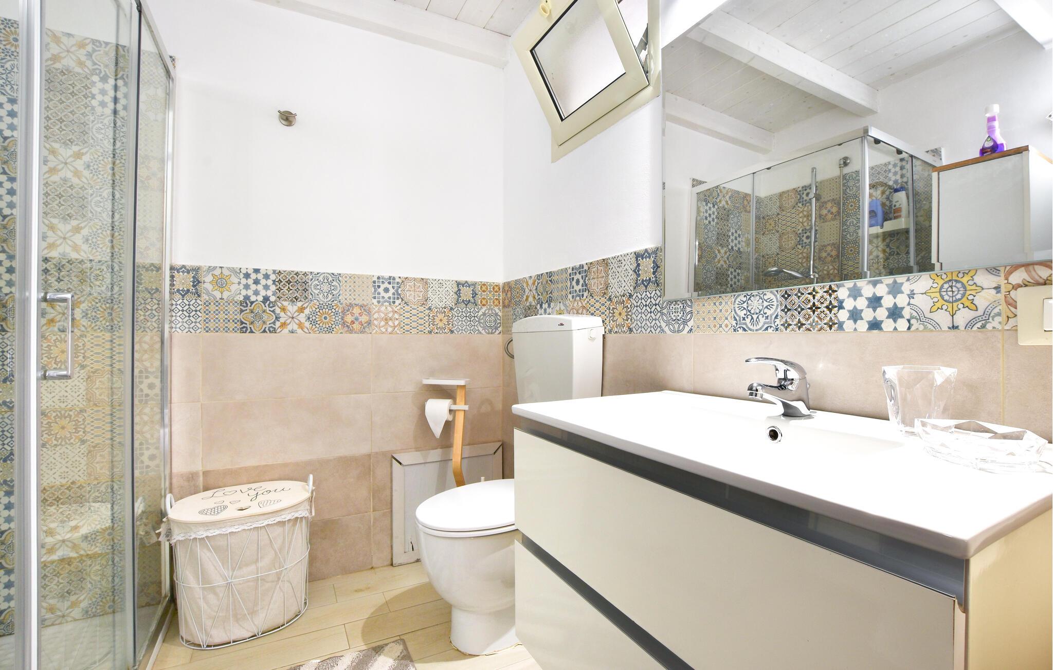 - WC med varmt og kaldt vann, Dusj