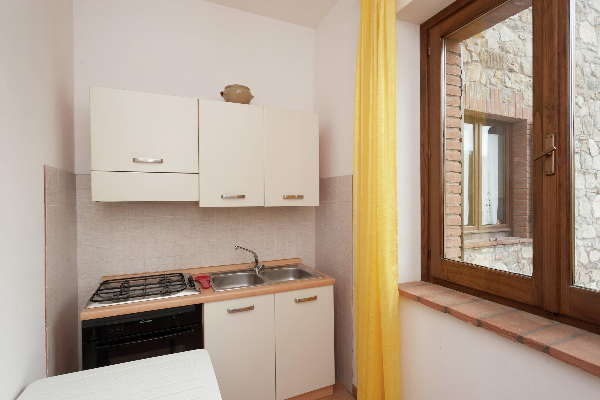 Dette gårdshuset med ett soverom ligger i det fredelige landskapet i Passignano sul Trasimeno, og er perfekt for et par eller en liten familie som søker en naturfylt ferie. Eiendommen tilbyr et felles svømmebasseng og koselig oppvarming, ideelt for et komfortabelt opphold året rundt. Naturelskere kan nyte rolige turer i skogen bare 200 meter unna, eller utforske de naturskjønne stiene på sykkel. Det glitrende vannet i Trasimenosjøen ligger bare 8 km unna, perfekt for en svømmetur eller piknik ved innsjøen. Utforsk den rike historien til nærliggende byer som Perugia og Cortona, kjent for sin middelalderarkitektur og pulserende kultur. Gårdshuset har et velutstyrt kjøkken, en avslappende stue med TV og et romslig soverom med en dobbeltseng og en enkeltseng. Utendørs inviterer hagen deg til å slappe av med grilling, mens barna kan kose seg med lekeutstyret. Ett kjæledyr er velkommen uten ekstra kostnad. Offentlig transport ligger beleilig til 8 km unna, noe som sikrer enkle reisemuligheter.