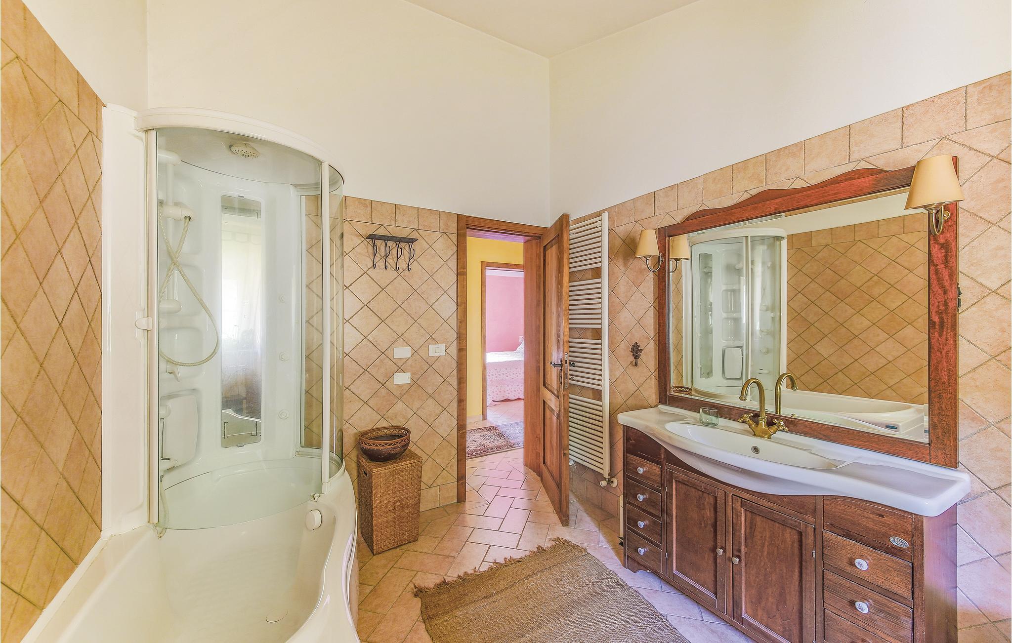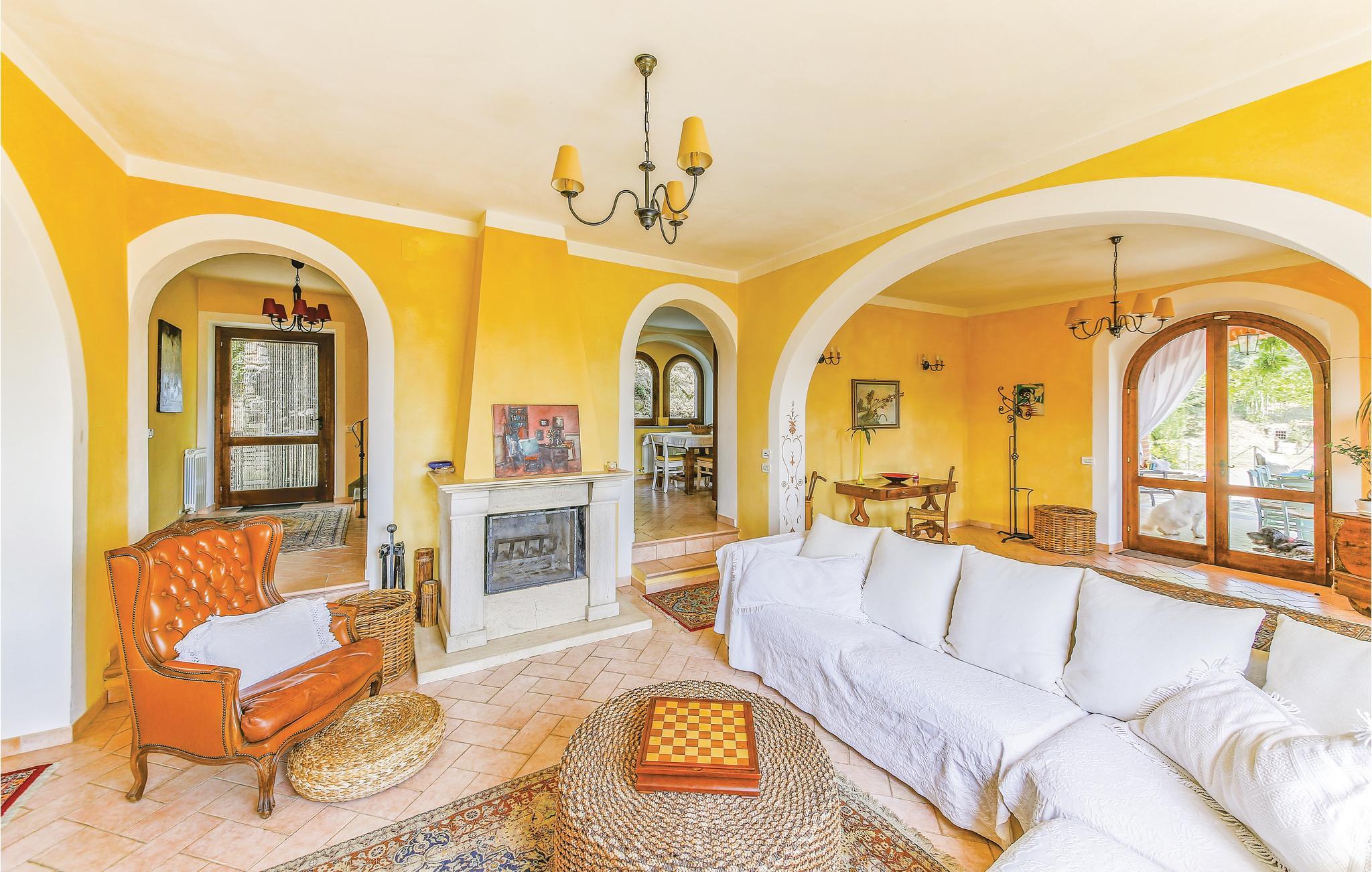 Dette velholdte og smakfullt innredede feriehuset ligger i en lett kupert beliggenhet på landsbygda i en rolig sidedal ca. 12 km fra Passignano sul Lago. Fra første etasje med sin romslige stue og åpen peis har du tilgang til den overbygde terrassen hvorfra du kan nyte en fantastisk utsikt over landskapet. Siden huset ble bygget i en skråning, kan du nå bassengområdet direkte fra soverommene i 1. etasje via en bakre utgang. På den romslige hagetomten finner du også en grillplass og en lund. Besøk den vakre byen Passignano sul Lago ved Trasimenosjøen og utforsk den lille øya Maggiore, som kan nås med passasjerferge og hvor du kan smake på fersk fisk fra innsjøen i restauranten. I nærheten kan du enkelt nå byer som er verdt å se i det sørlige Toscana, som Cortona (ca. 30 km), Montepulciano (ca. 50 km), Pienza (ca. 65 km) samt den gamle umbriske hovedstaden Perugia (ca. 35 km) eller den lille byen Assisi (ca. 60 km, fødestedet til Frans av Assisi). På forespørsel ved bestilling og betaling på stedet: matlaging og rengjøring. Adkomstveien til huset er ikke asfaltert.