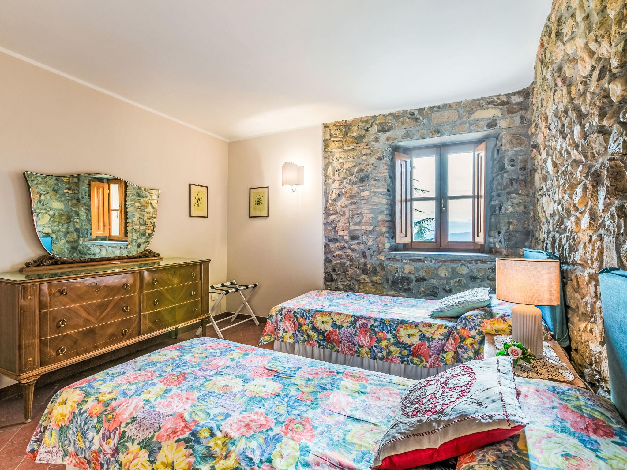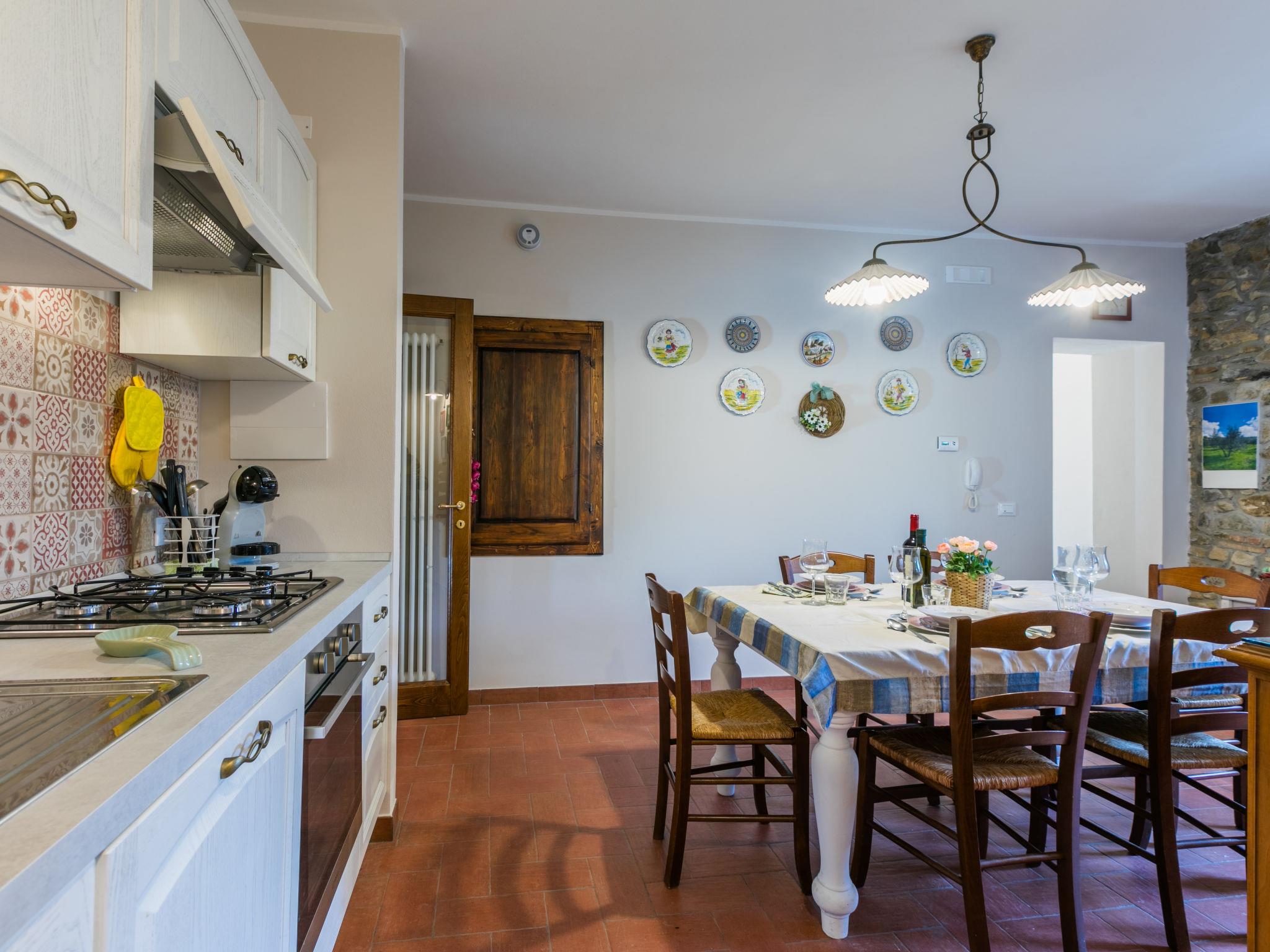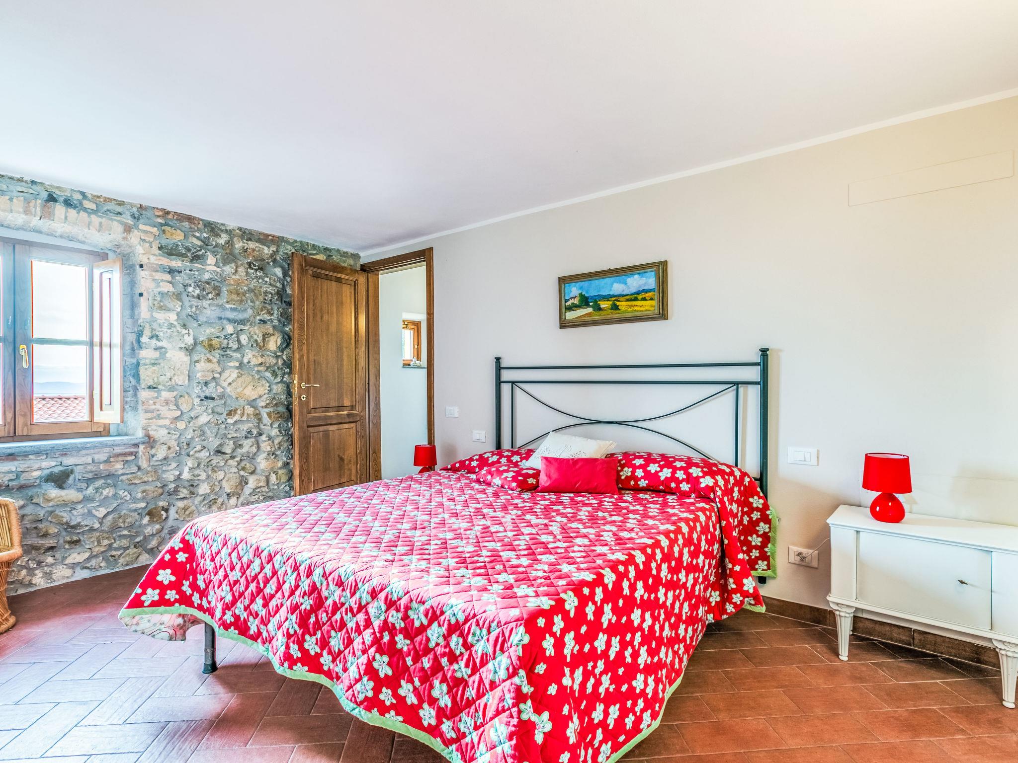 5-room house 100 m2 on 2 levels. Spacious, fully renovated in 2024, comfortable and beautiful furnishings: open living/sleeping room with 1 sofabed (120 cm), air conditioning. Living/dining room with open-hearth fireplace and dining table. Exit to the garden. Shower/bidet/WC. Electric heating. Upper floor: (steep stair) living/sleeping room with 1 sofabed (120 cm), TV. 1 double bedroom with 1 double bed, separate WC and air conditioning. 1 room with 2 beds and air conditioning. Kitchen-/living room (oven, dishwasher, Gas stove, 4 gas rings, toaster, electric coffee machine) with dining table and air conditioning. Shower/bidet/WC. Heating, gas heating. Heating available only from 25.10. to 02.05. Patio 25 m2. Terrace furniture, barbecue, box-room. Beautiful distant view of the countryside. Facilities: washing machine, mosquito net, children's high chair, baby cot for up to 2 year olds, hair dryer. Internet (WiFi, free). Parking (fenced 1 car). Please note: non-smokers only. Private entrance, fire extinguisher. IT050034C224GDB2AJ