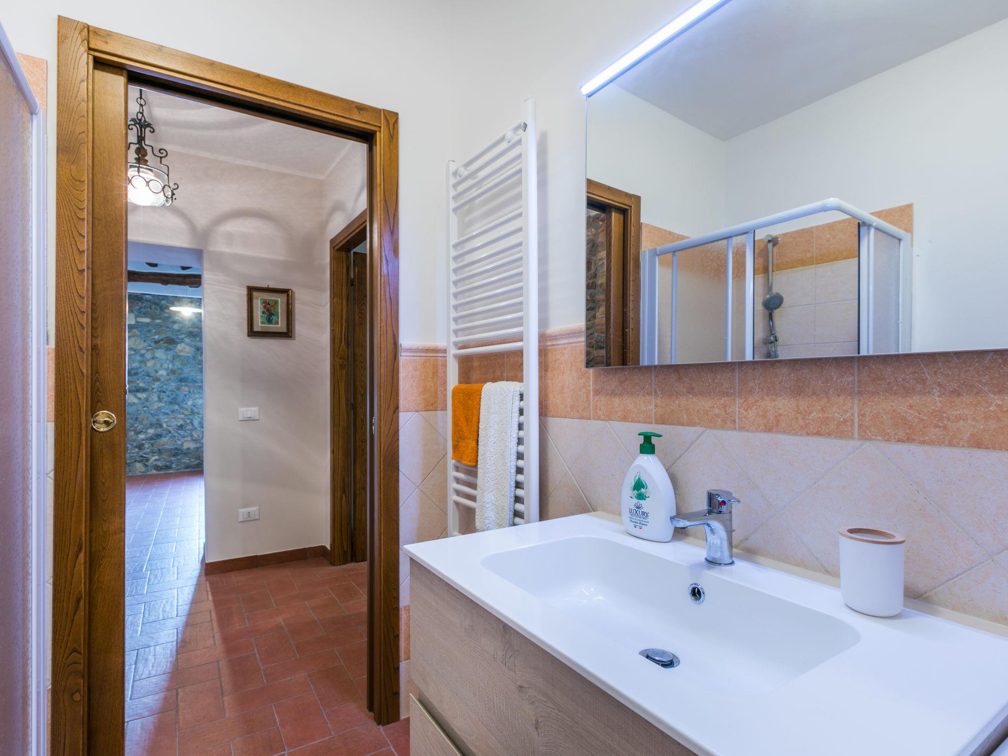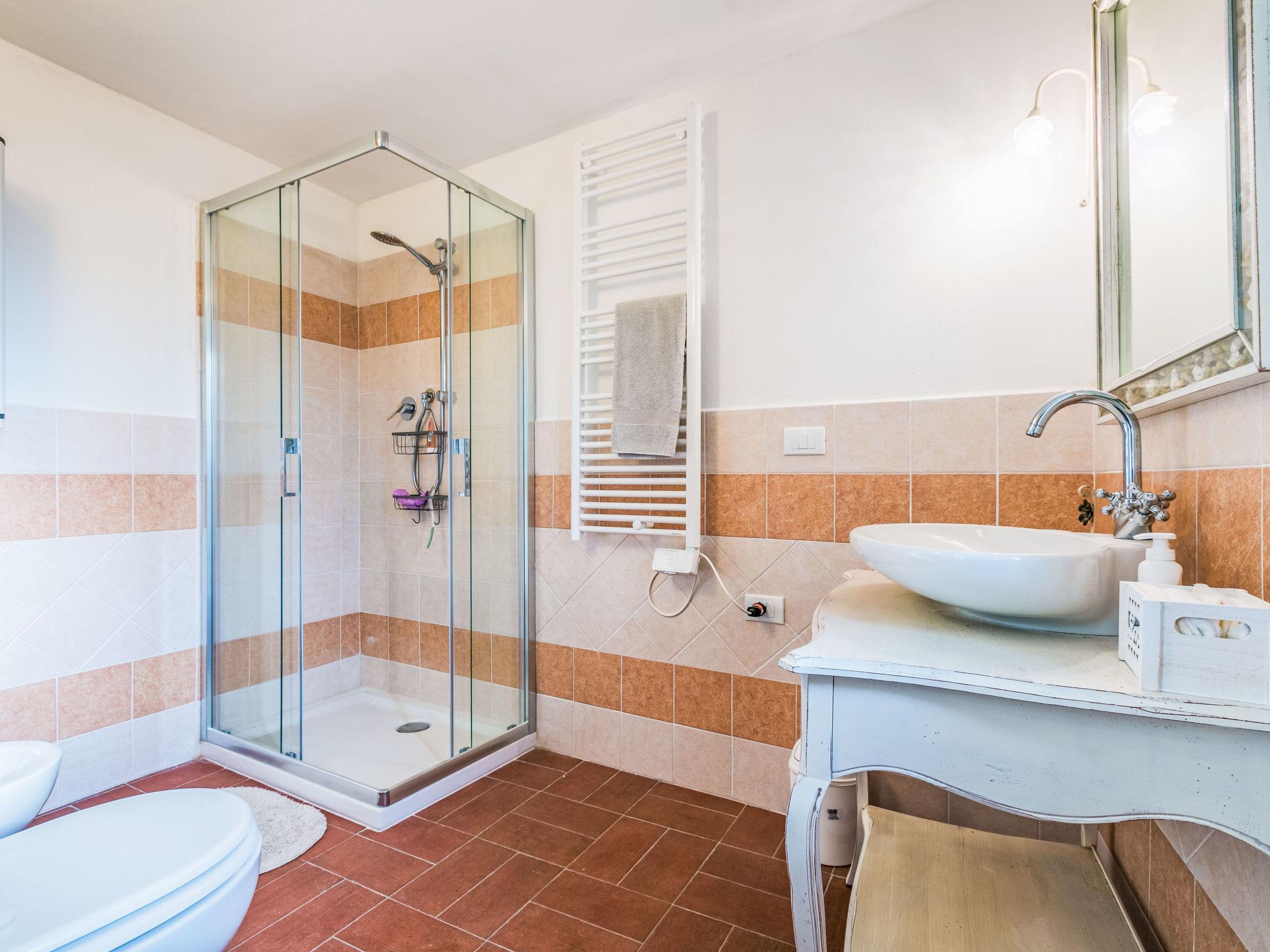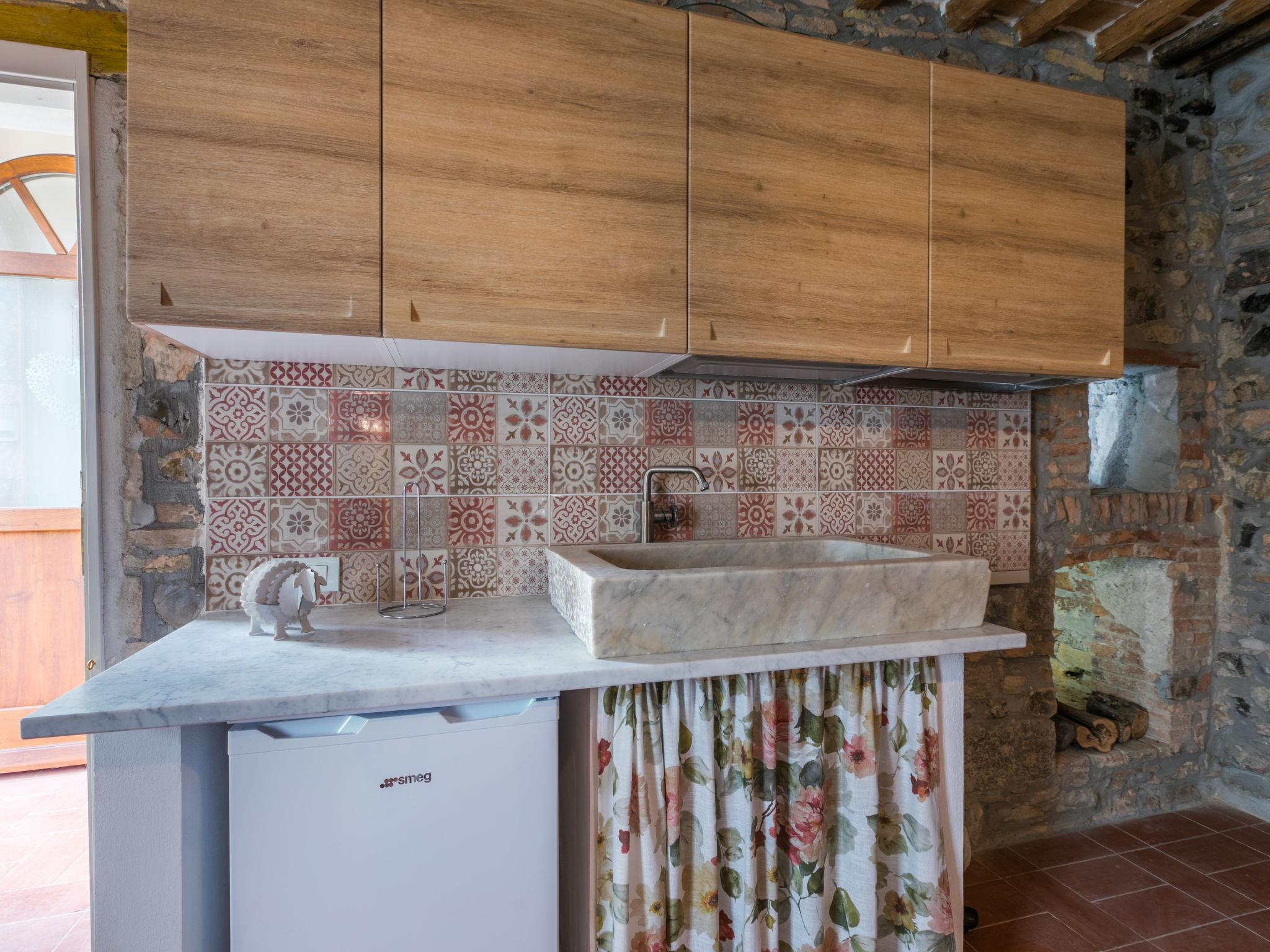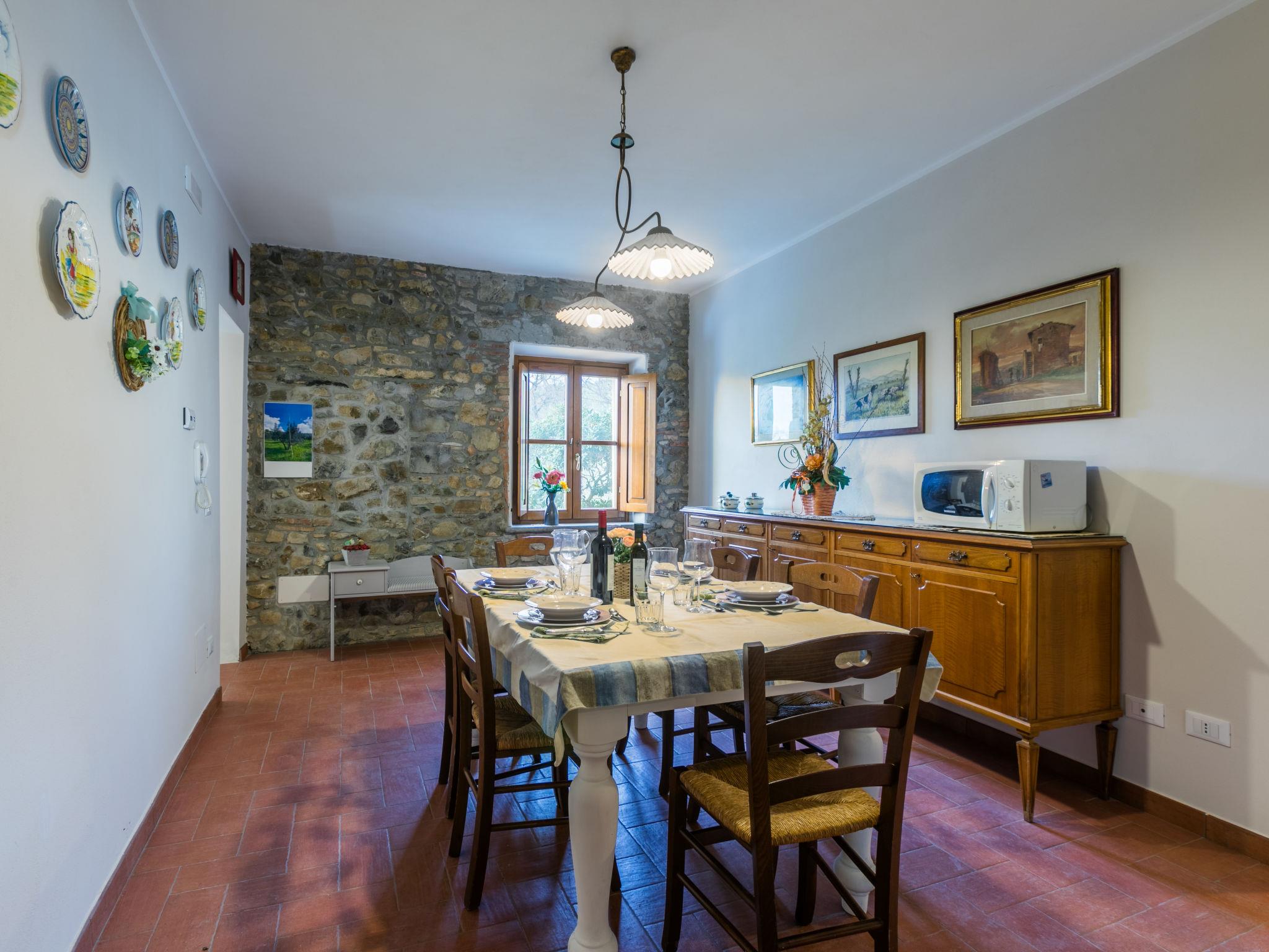House "delle Ginestre", 2 storeys, semi-detached, renovated in 2025, surrounded by trees. 4 apartments in the property. On the outskirts, 400 m from the centre of Pastina, 3 km from the centre of Santa Luce, 100 m from the edge of the forest, 18 km from the sea, 18 km from the beach. Linen change (suppl. charge extra). Towel change (suppl. charge extra). Parking at the house. Grocery 400 m, supermarket 13 km, restaurant 400 m, bus stop 250 m, sandy beach "Vada" 18 km, thermal baths "Casciana Terme" 18 km. Nearby attractions: Pisa 45 km, Lucca 65 km, Firenze 95 km. Please note: baby equipment on request (extra). The owner does not accept any youth groups. Local sale of farm products.