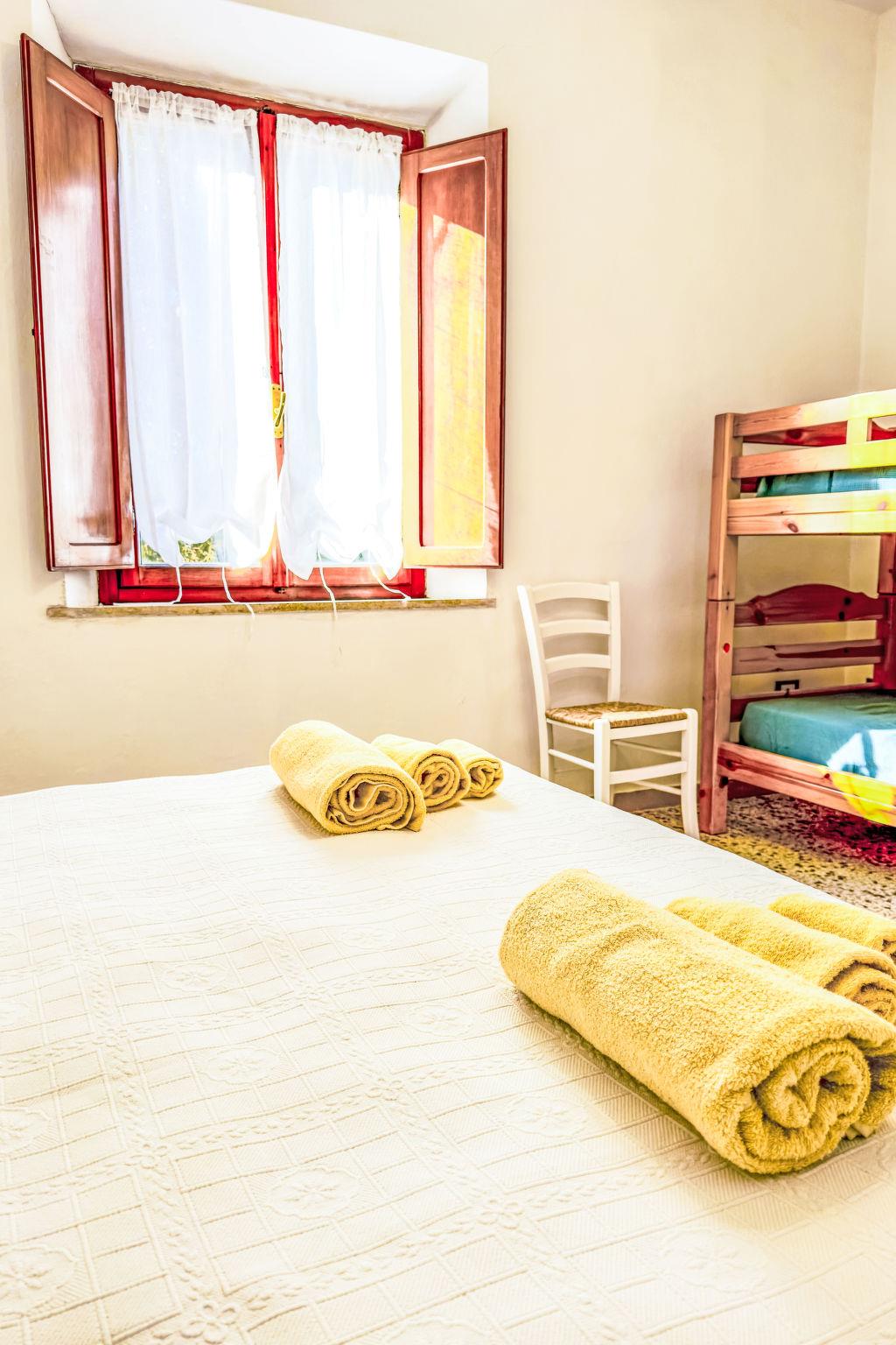 "Ambra", 3-room apartment 100 m2 on 1st floor. Renovated in 2023, beautiful and modern furnishings: upper floor: (exterior staircase) living/dining room with satellite TV. Exit to the balcony. 1 room with 1 double sofabed and 1 double bed. 1 room with 1 x 2 bunk beds, 1 double bed. Kitchen (oven, 4 induction hot plates, toaster, kettle, electric coffee machine). Shower/bidet/WC. Wood heating. Small balcony. Beautiful distant view. Facilities: baby cot for up to 2 year olds, logs (extra). Internet (WiFi, free). Maximum 1 pet/ dog allowed. IT050034B58I6AOP6B
