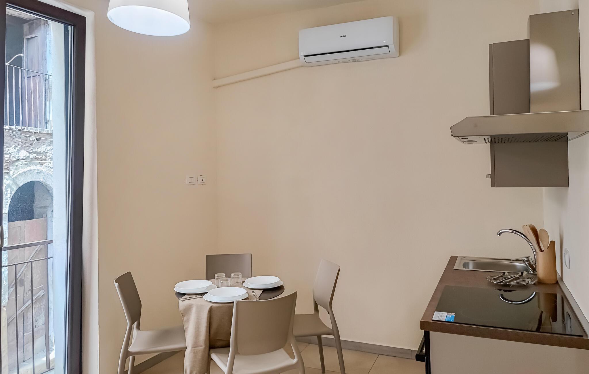 Reis til Patti og bo i denne vakre ferieleiligheten, en av Le Muse-leilighetene, i en moderne og enkel stil. Her kan dere som par eller liten familie slappe av og nyte godt av de flotte møblene og det flotte utstyret. Nyt dagslyset som strømmer inn over frokosten ved spisebordet, og legg planer for de neste utfluktene. Hvis dere reiser sammen med venner eller andre familier, kan dere bestille flere ferieleiligheter i huset, avhengig av tilgjengelighet.