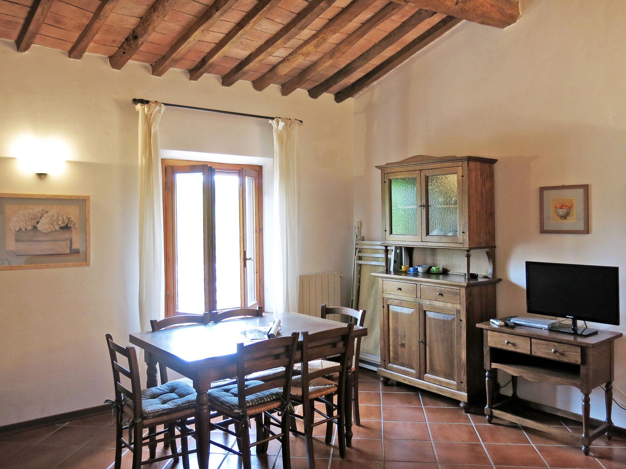 Agriturismo, 2 storeys. 7 houses in the residence. 9 apartments in the residence. 5 km from the centre of Peccioli, 15 km from the centre of Lajatico, in a quiet position on top of a hill, 50 km from the sea. For shared use: property 5 ha with trees, meadow, swimming pool (16 x 8 m, depth 140 cm, seasonal availability: 24.Apr. - 02.Oct.). Shower/WC in the pool area, outdoor shower, tennis (extra), garden furniture, children's playground. In the house: table tennis, table football, washing machine (for shared use, extra). 900 m long motor access (via unmade road). Roofed, parking on the premises. Shop 2.5 km, supermarket 5 km, bus stop 1 km, natural swimming pond 10 km. Riding stable 5 km, walking paths from the house 2 km. Nearby attractions: Volterra 30 km, Pisa 50 km. Hiking paths: Mountain Bike Le Serre 8 km, Bosco di Ortaglia 8 km. Local sale of farm products.