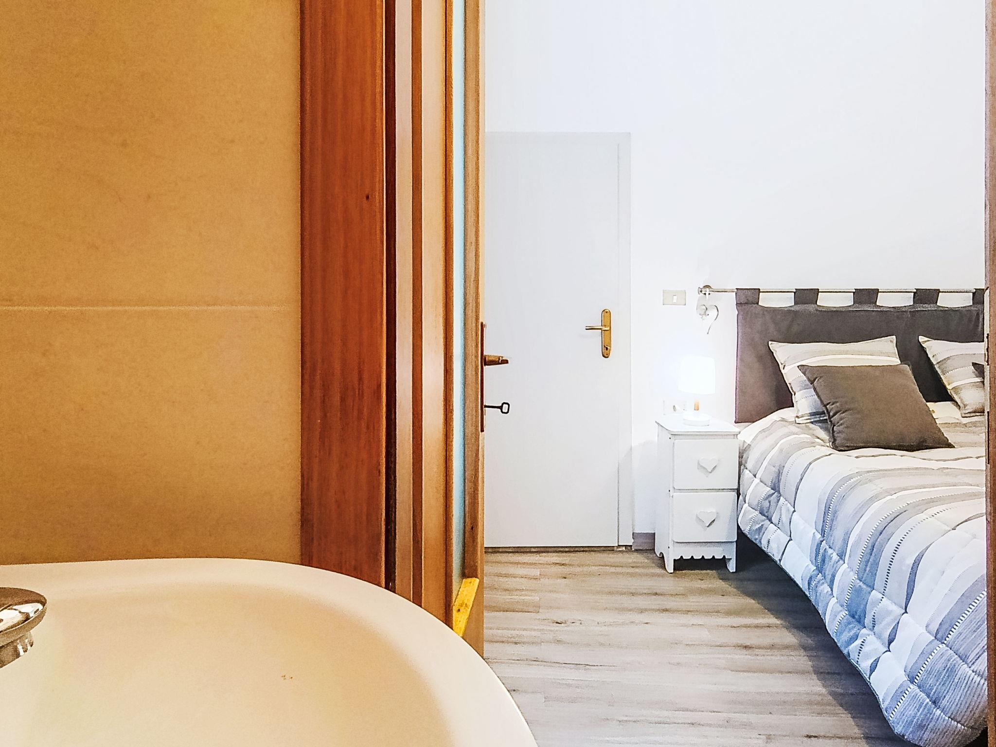 "Catherine", 3-room apartment 75 m2 on 1st floor. Spacious and bright, simple and cosy furnishings: living room with 1 double sofabed and TV. 2 double bedrooms, each room with 2 double beds. Kitchen (oven, 4 induction hot plates, toaster, kettle, microwave, electric coffee machine) with dining table. 3 showers/WC. Heating. Facilities: washing machine, iron, hair dryer. Internet (WiFi, free). Parking at the house. Please note: one double bedroom is outside the apartment. Non-smokers only. Maximum 1 pet/ dog allowed. Smoke alarm, fire extinguisher, no lift. IT022137C27ZAVHTI3