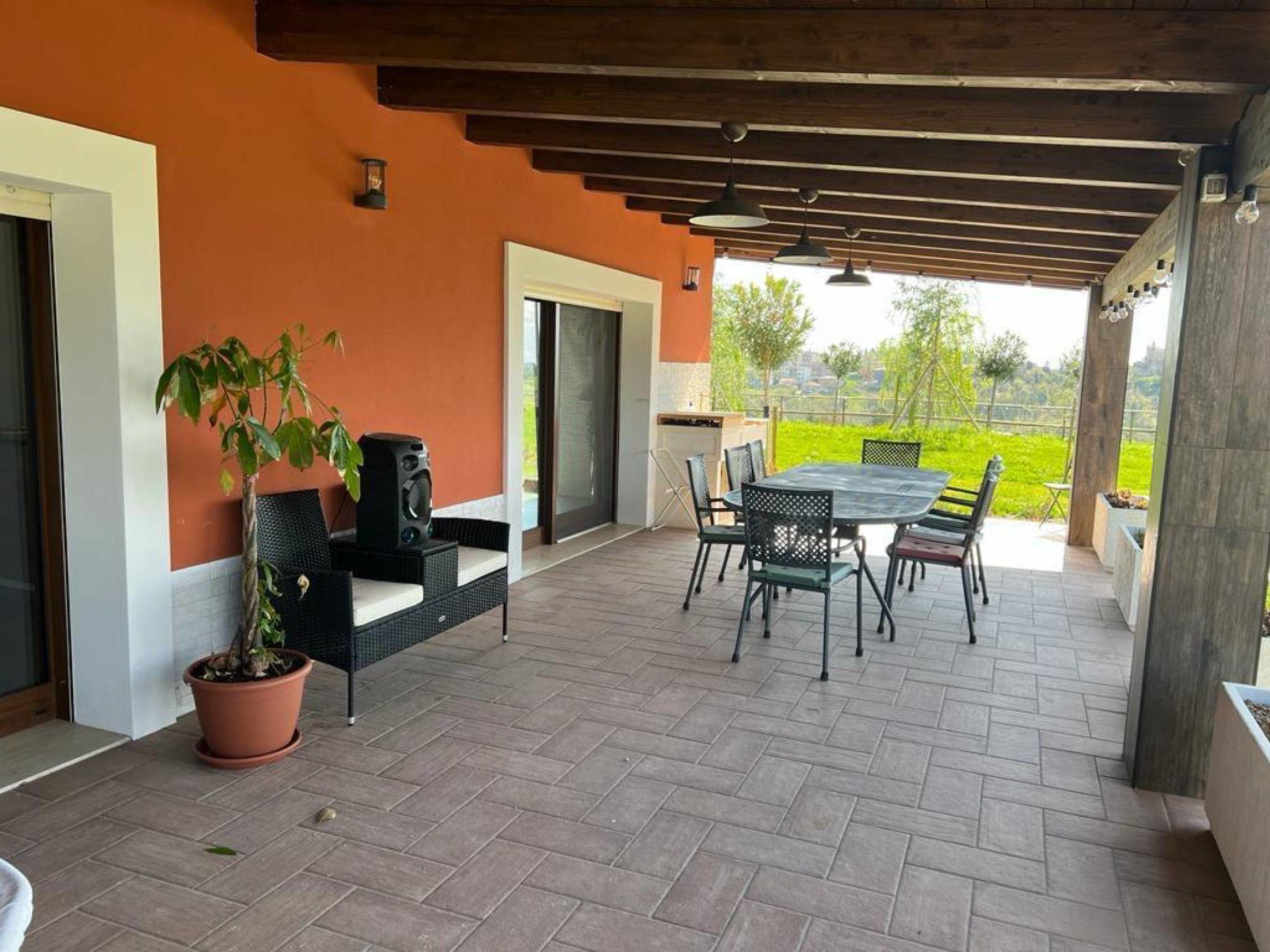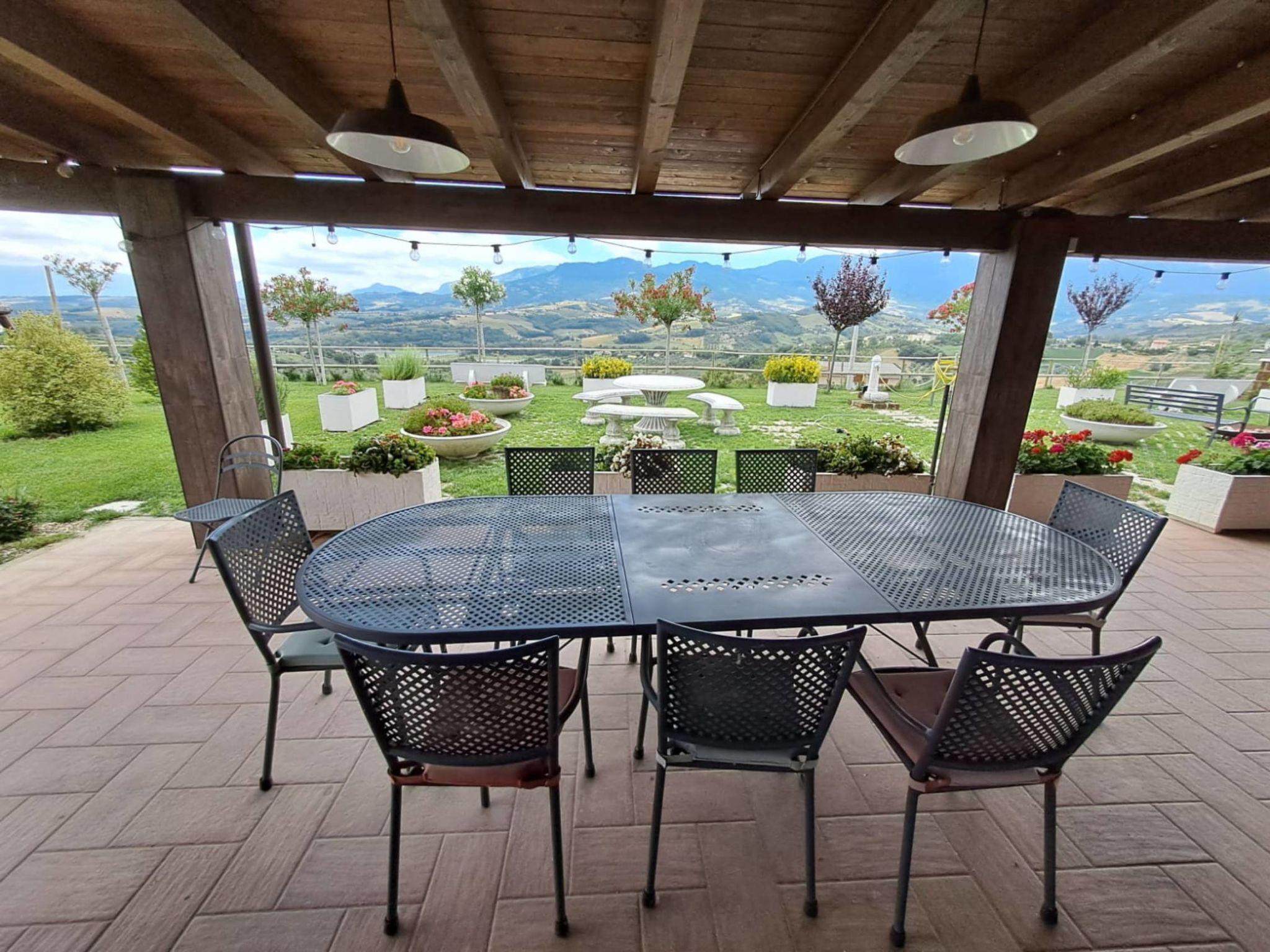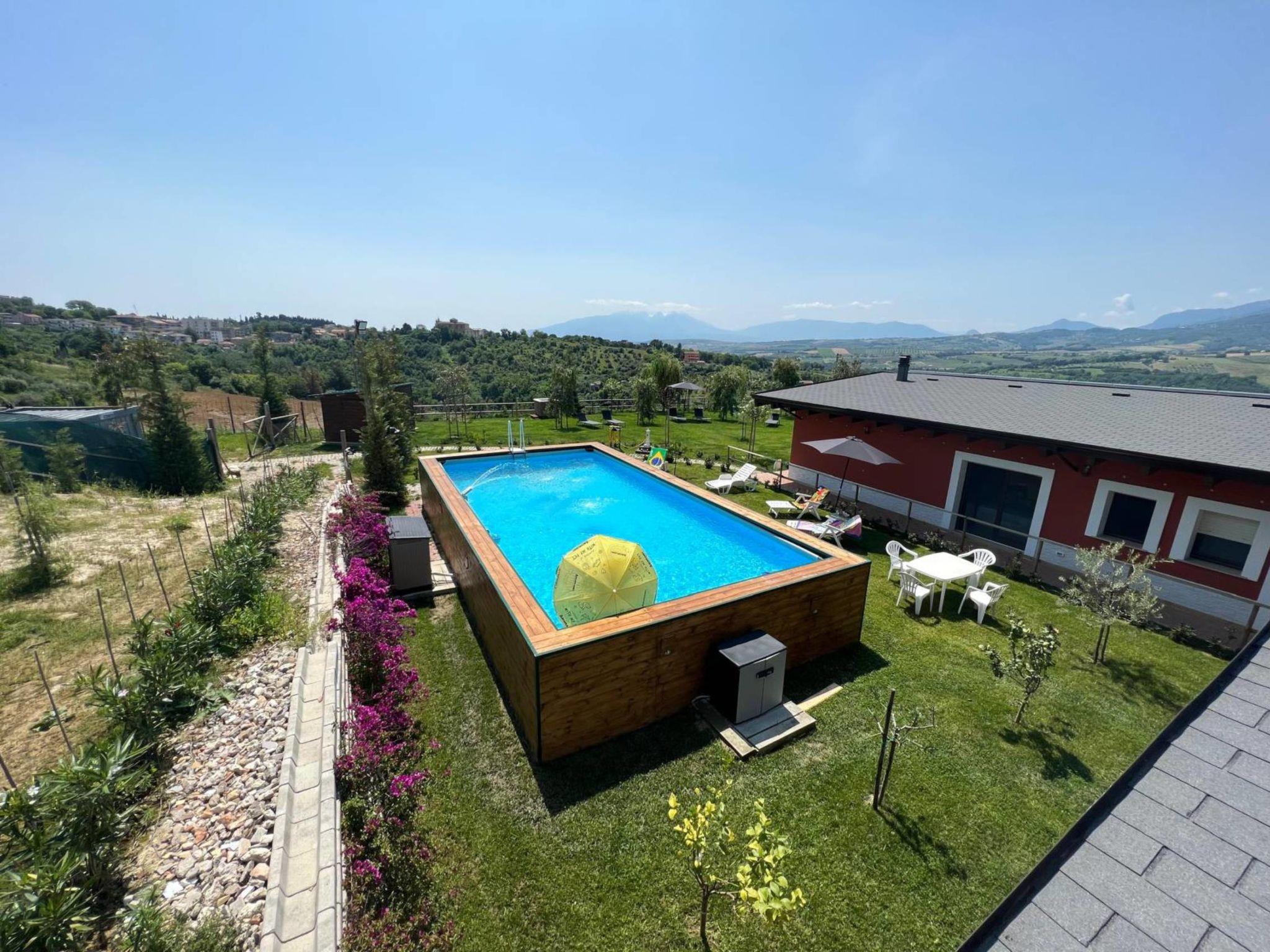 Very modern cottage, surrounded by trees and meadows. In the resort Penne, in a central, quiet, sunny position, 2 km from the edge of the forest, 20 km from the sea, 2 km from the lake. For shared use: property 30'000 m2 (fenced), large, well-kept garden with trees, meadow, swimming pool (above ground) (seasonal availability: 01.May. - 31.Oct.). Pergola, terrace (20 m2), garden furniture, barbecue, barbecue house, children's playground (swing). In the house: washing machine, tumble dryer (for shared use). Parking at the house on the premises. Shop 3 km, grocery 3 km, bus stop 1.1 km, sandy beach "Montesilvano" 20 km, 2 km. Nearby attractions: Borgo di Penne 1.5 km, Lago di Penne 2 km. Please note: residence with electric gates. Airfield 32 km from the property.
