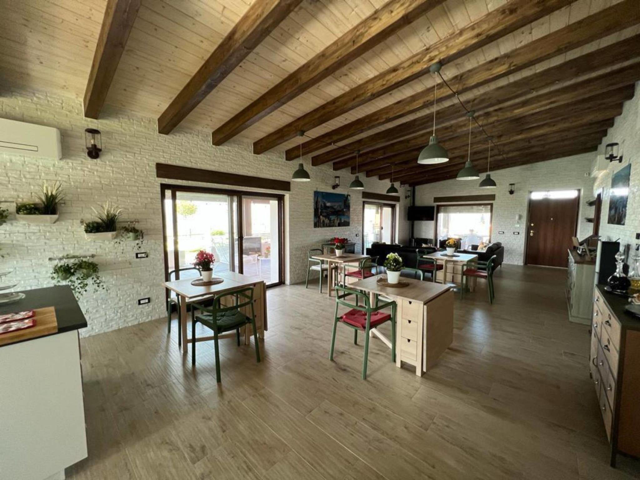 "Casa dei Bulldogs", 5-room semi-detached house 300 m2, on the ground floor. Modern and cosy furnishings: living/dining room with panoramic window with shower/WC, TV and air conditioning. Exit to the garden, pergola. 4 double bedrooms, each room with shower/bidet/WC and electric heating. Large, open kitchen (oven, dishwasher, 4 induction hot plates, kettle, electric coffee machine). Very beautiful panoramic view of the lake and the mountains. Facilities: mosquito net. Internet (WiFi, free). Maximum 1 pet/ dog allowed. IT068027C1O37XVE4L