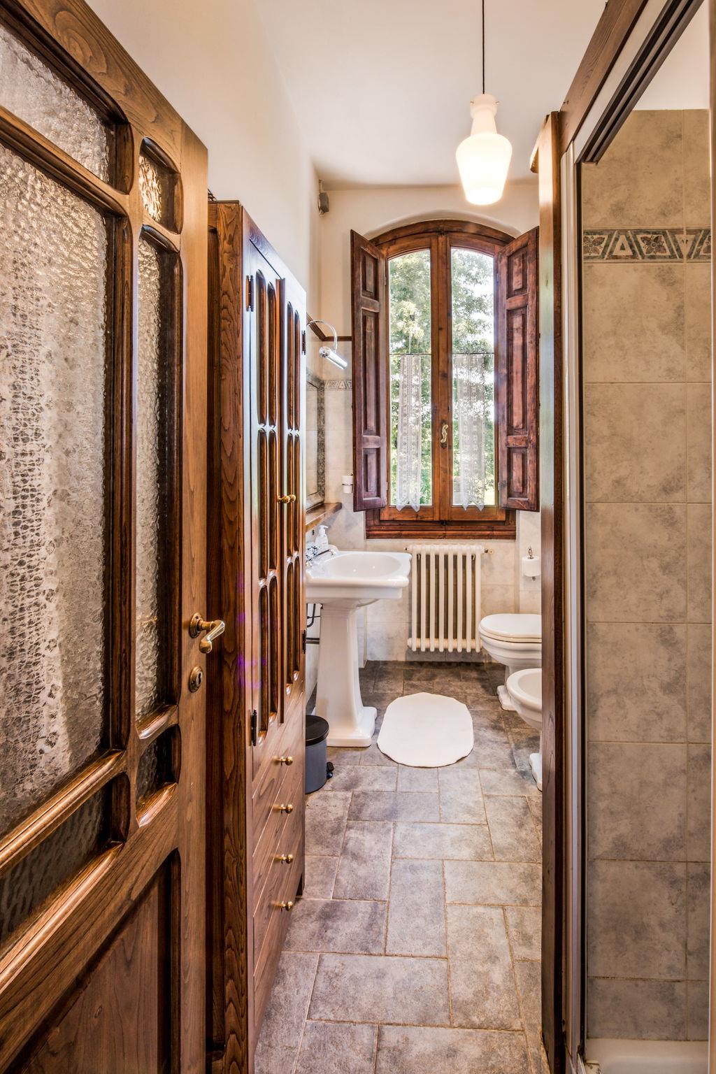 6-room house 230 m2 on 2 levels, on the upper ground floor. Rustic and cosy furnishings: living/dining room with open-hearth fireplace, dining table and satellite TV. Exit to the terrace. 2 rooms, each room with 1 french bed (160 cm). Kitchen (oven, dishwasher, 4 gas rings, toaster, electric coffee machine). Exit to the terrace. Shower/bidet/WC. On the lower ground floor: dining room, ceiling height 220 cm with dining table. Exit to the garden. 2 rooms, each room with 1 french bed (160 cm). Shower/bidet/WC. Heating (extra). Small balcony, large terrace 25 m2, roofed. Terrace furniture, barbecue, deck chairs (14). Beautiful panoramic view of the valley, the countryside, the forest and Val d'Arno. Facilities: washing machine, children's high chair, baby cot for up to 2 year olds. Internet (WiFi, free). Parking (fenced 2 cars) at the house. Please note: non-smokers only. No mandatory extra charges to be paid on-site except for local tax. When there are less than the maximum number of guests staying at the property, not all of the bedrooms will be available for use. IT051013C2WTB6E8AH