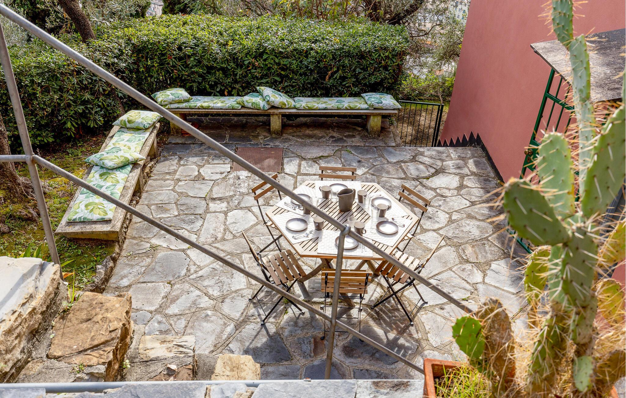 Enten du er en familie eller bare et par, er dette absolutt det ideelle stedet å tilbringe en uforglemmelig ferie i et av de mest fascinerende og stemningsfulle hjørnene i Liguria. Faktisk er du bare noen få kilometer unna de mest karakteristiske og berømte landsbyene i regionen: den karakteristiske kystbyen Camogli ligger omtrent 5 km unna og har fortryllet turister fra hele verden på jakt etter avslapning, kultur, rekreasjon og hav i århundrer. Herfra, som er tilgjengelig sjøveien, kan du besøke klosteret San Fruttuoso i denne sjarmerende bukten. For de som liker fotturer, er det stien som fører fra Camogli til Ruta, Punta Chiappa eller San Rocco. Dykkeentusiaster bør ikke gå glipp av den berømte Grotta dei Gamberi i Punta Chiappa eller statuen "Kristus av avgrunnen" i San Fruttuoso-bukten. Santa Margherita med det praktfulle Portofino ligger 17 km unna; Genova med sitt sjarmerende historiske sentrum og det store akvariet ligger 24 km unna. Også fra Recco, fra jernbanestasjonen (ca. 200 m i luftlinje), kan du besøke Cinque Terre og nyte et helt unikt panorama. Siden huset er omgitt av typiske terrasserte grønne områder og oliventrær, og på grunn av den interne inndelingen, anbefales det ikke for familier med små barn.