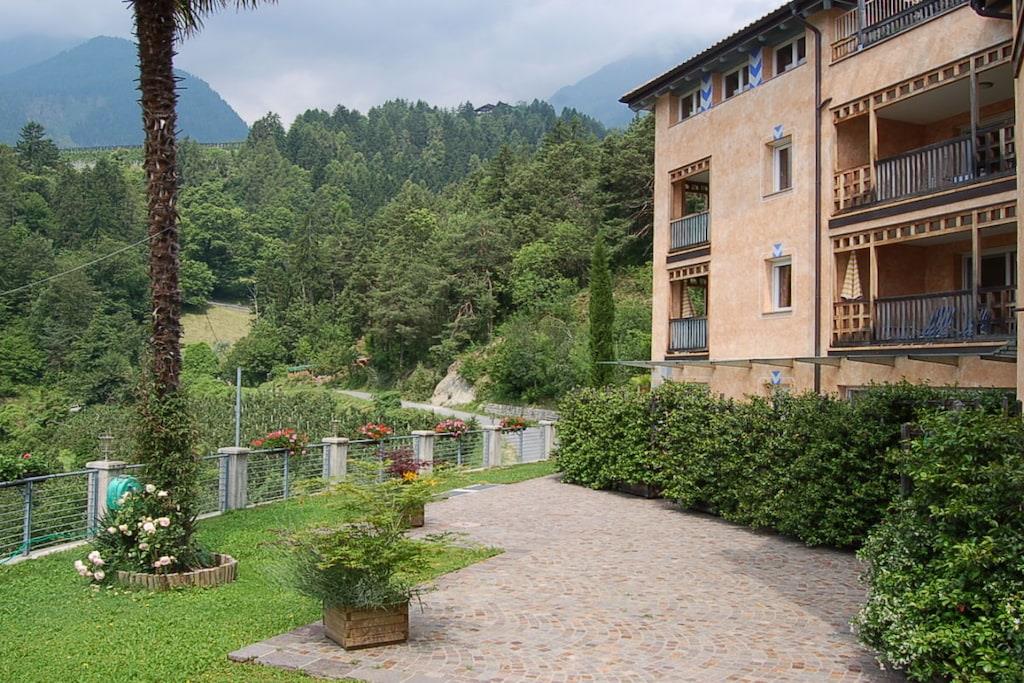 Leilighetsbygget vårt ligger på Waalweg, omgitt av frukthager og skogkanten. Bygningen ble nylig oppført i 1995 og tilbyr totalt 11 leiligheter i varierende størrelser. Denne leiligheten har: En romslig leilighet på 40 kvm med en 12 kvm terrasse, 1 bad, 1 soverom og en kombinert stue og kjøkken. Fasiliteter inkluderer: oppvaskmaskin, kjøleskap, kaffetrakter, elektrisk komfyr med 2 kokeplater, flatskjerm-TV, vaskemaskin, vannkoker og brødrister. Vaskeritjenester, underjordisk parkering, heis og levering av rundstykker er tilgjengelig på forespørsel. Mikrobølgeovn og stekeovn er tilgjengelig om nødvendig. Røykfri leilighet.