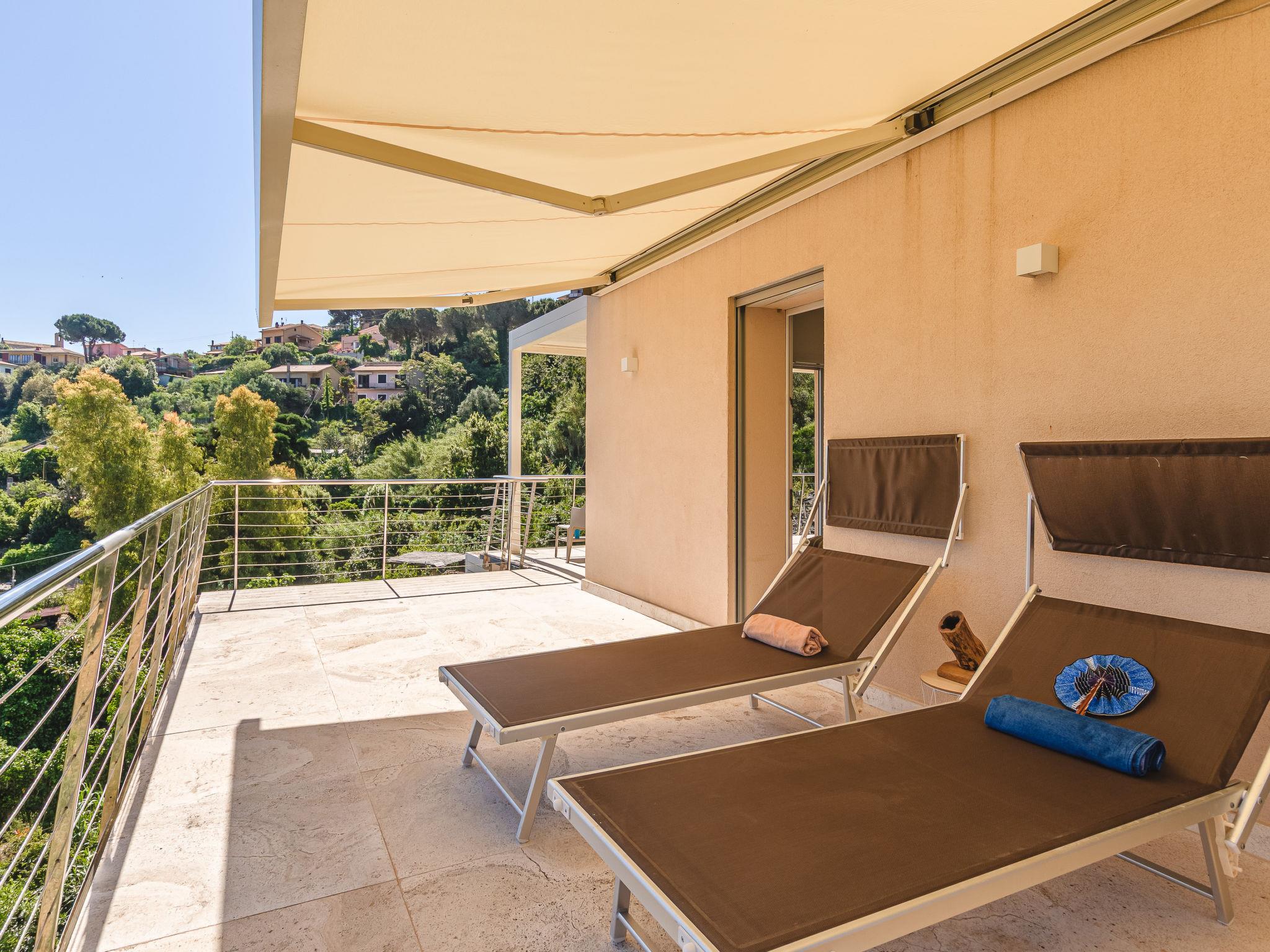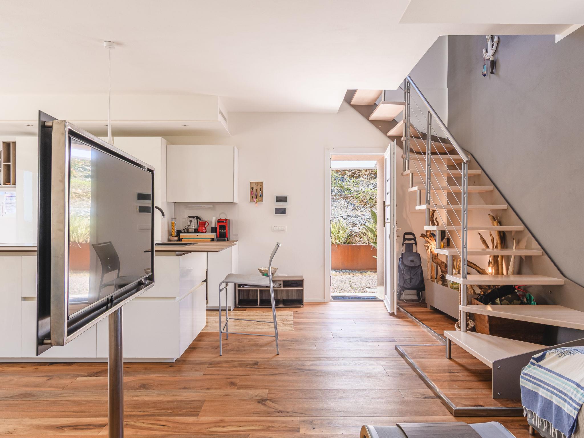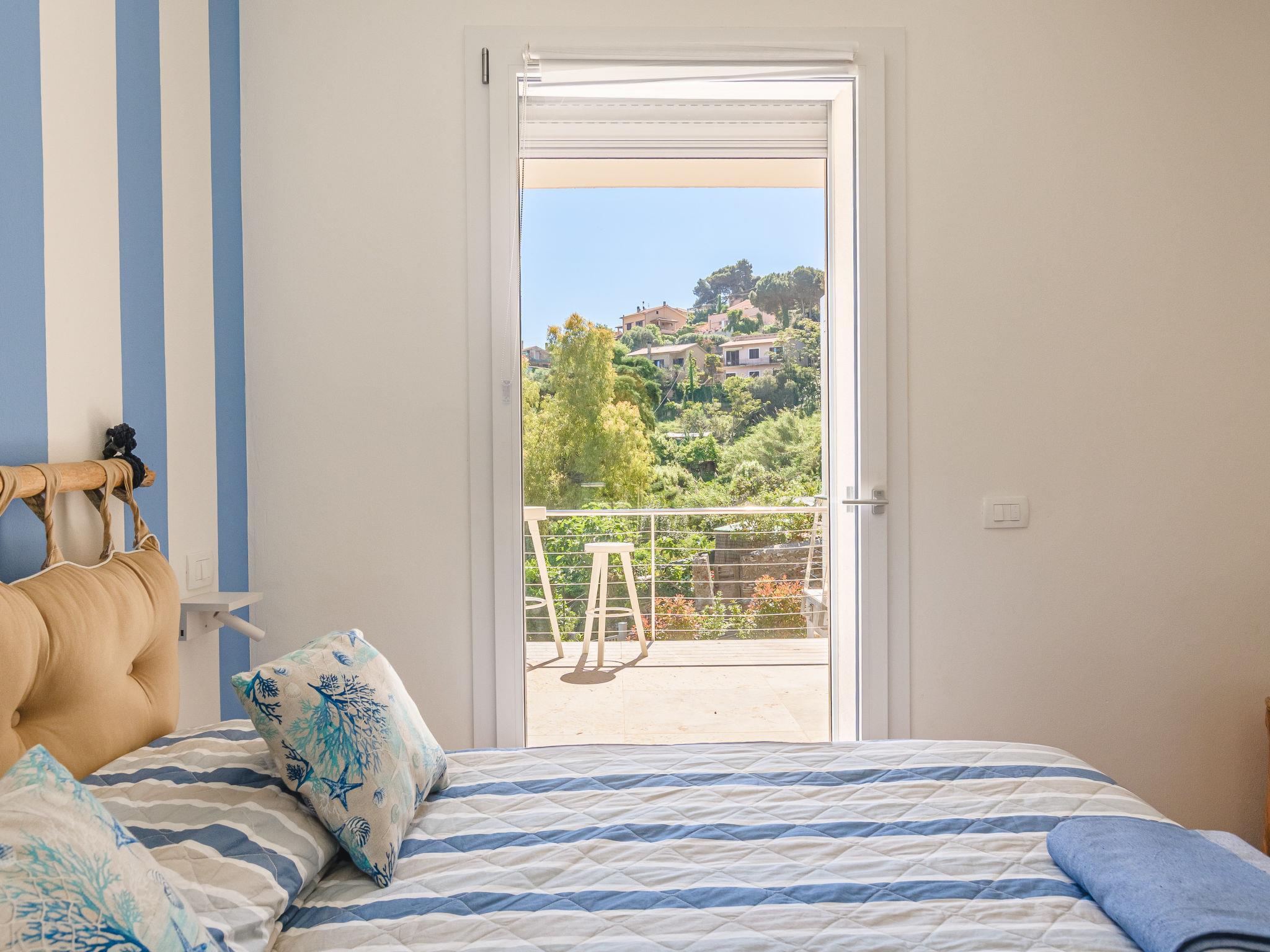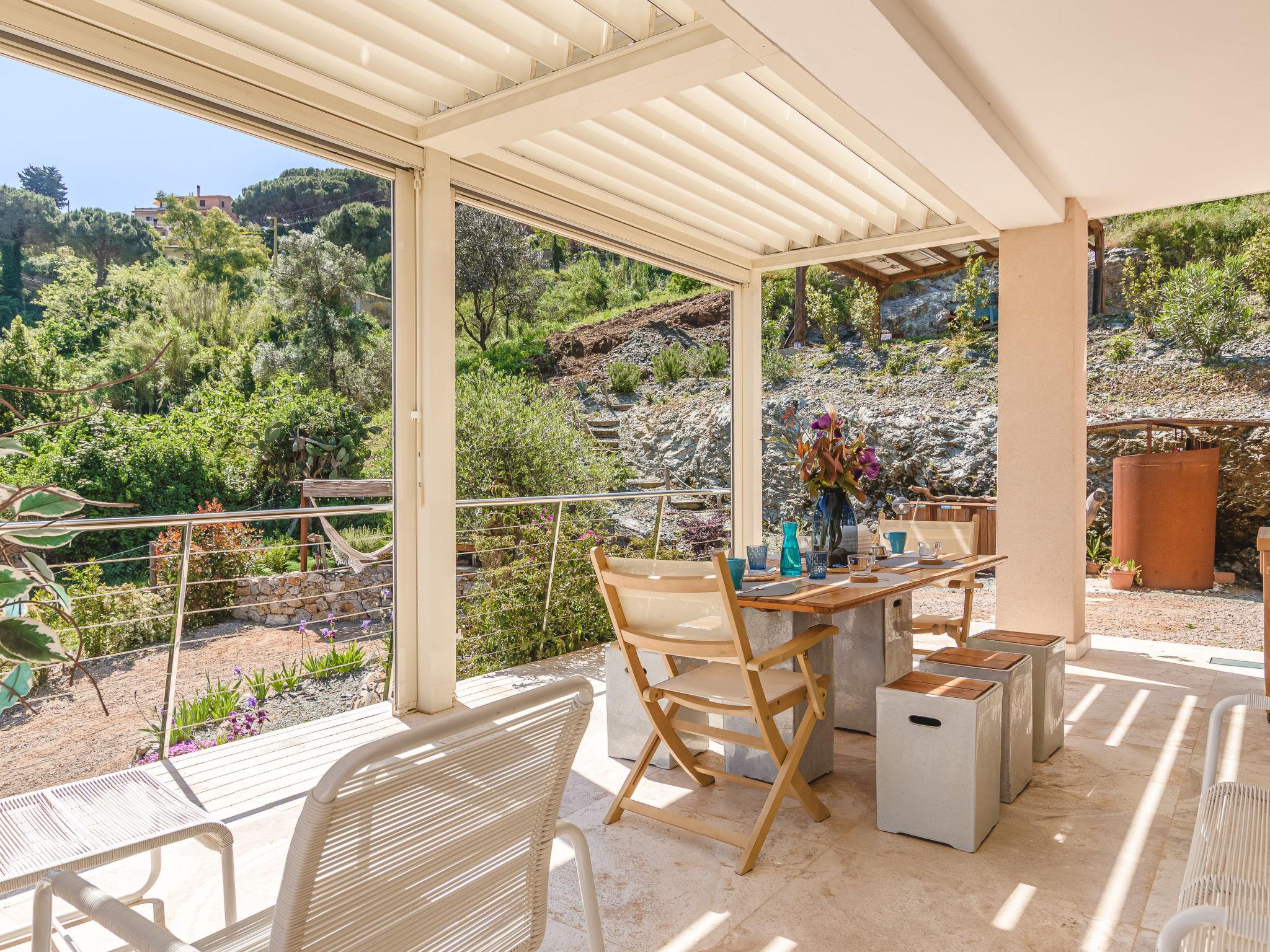 4-room villa 110 m2 on 2 levels. Bright, modern and tasteful furnishings: open living/dining room with sliding door, panoramic window with dining table and TV. Exit to the terrace. 1 room with 1 double bed (160 cm). Exit to the terrace. Open kitchen (oven, dishwasher, 4 induction hot plates, kettle, microwave, freezer, electric coffee machine, cooking island). Exit to the terrace. Shower/bidet/WC. Upper floor: 2 rooms, each room with 1 double bed (160 cm). Exit to the terrace. Shower/bidet/WC. Air-conditioning, forced-air heating. Large terrace partly roofed, large terrace, patio. Terrace furniture, barbecue, deck chairs. Very beautiful view of the sea and the town. Facilities: washing machine, hair dryer. Internet (WiFi, free). Parking. E-charging station. Please note: non-smokers only. Private entrance, smoke alarm, fire extinguisher. Centralized air conditioning. Bioclimatic pergolas that provide shade from the summer heat. IT049021C24KYKM8AD