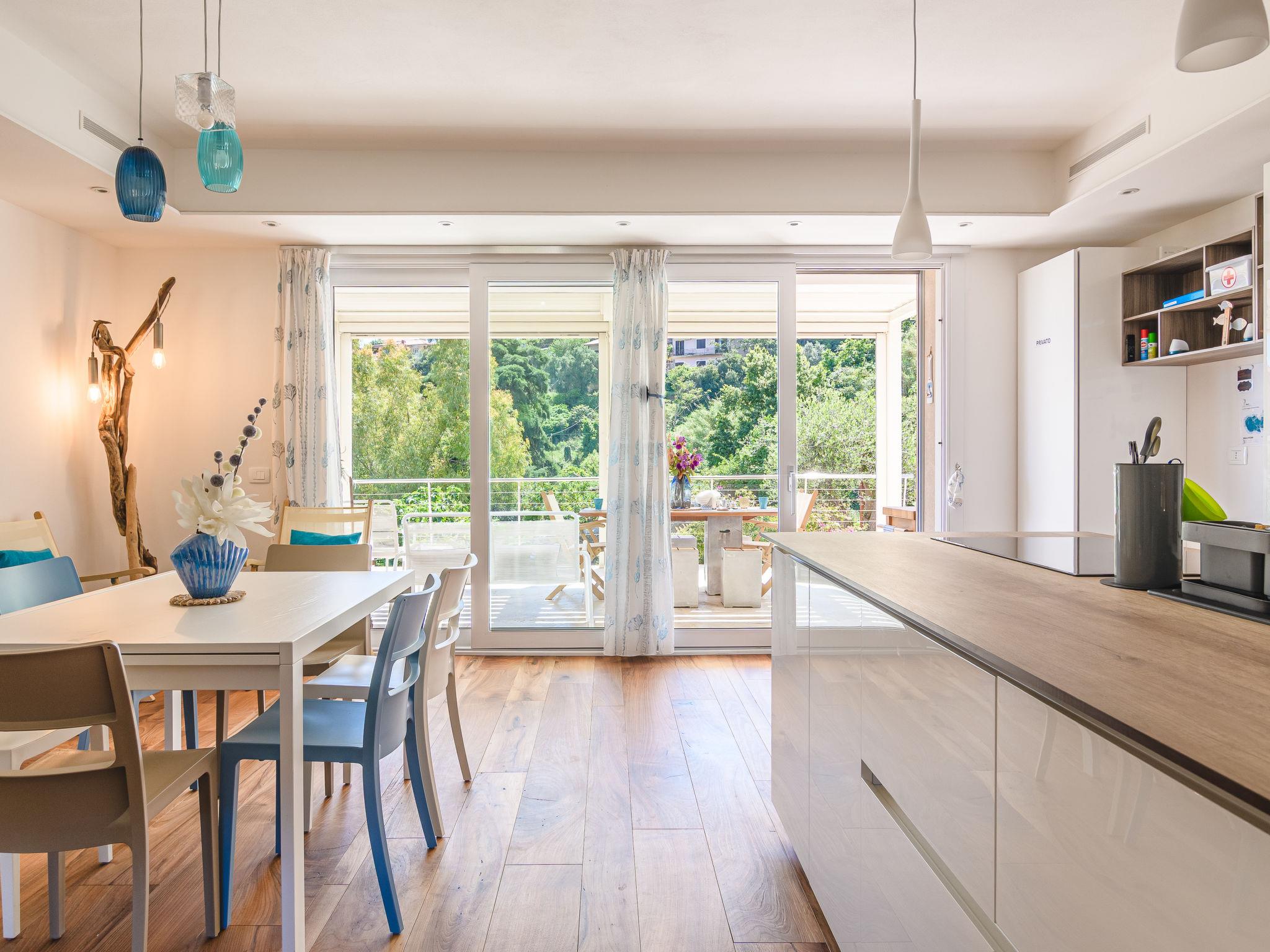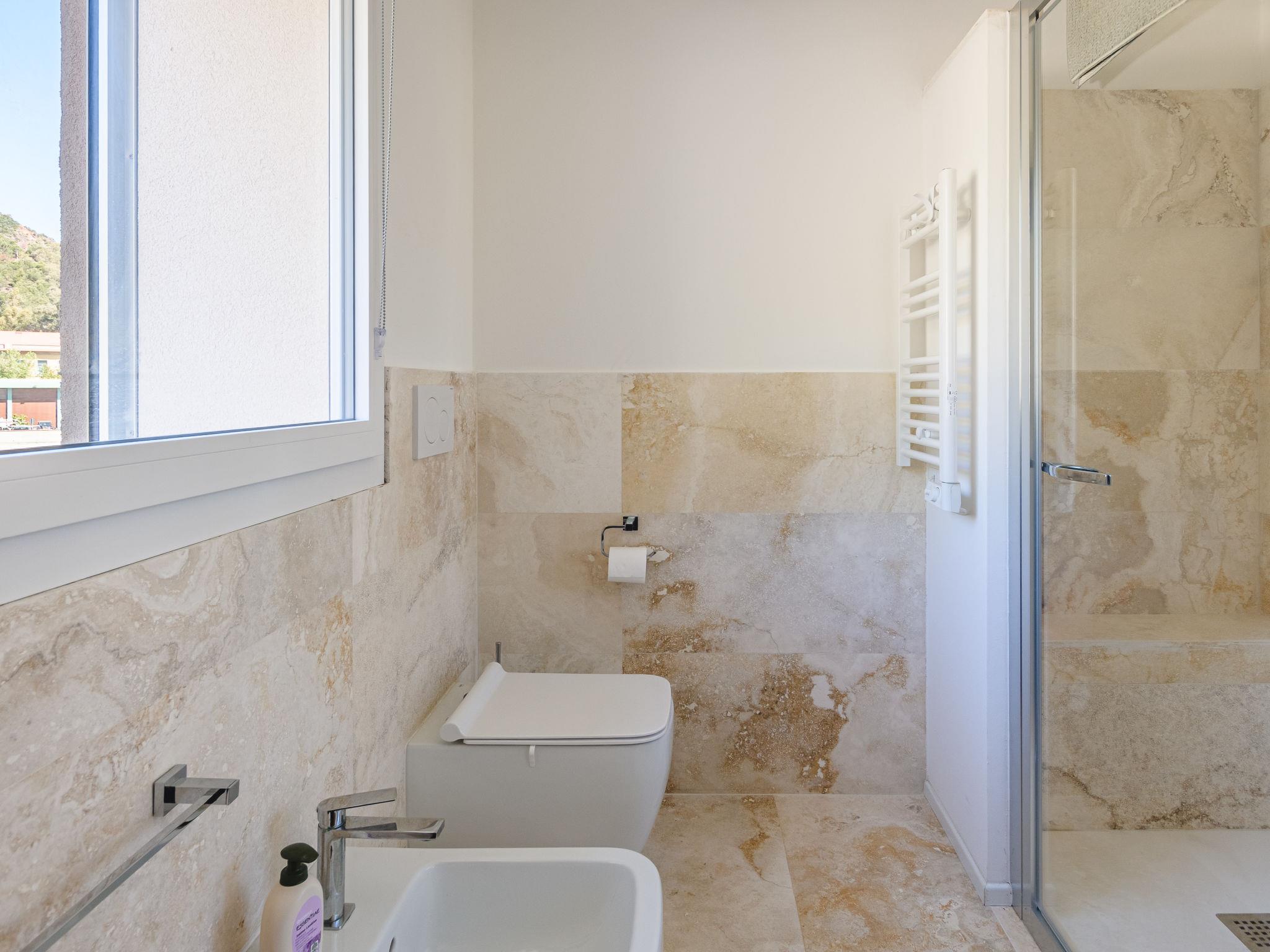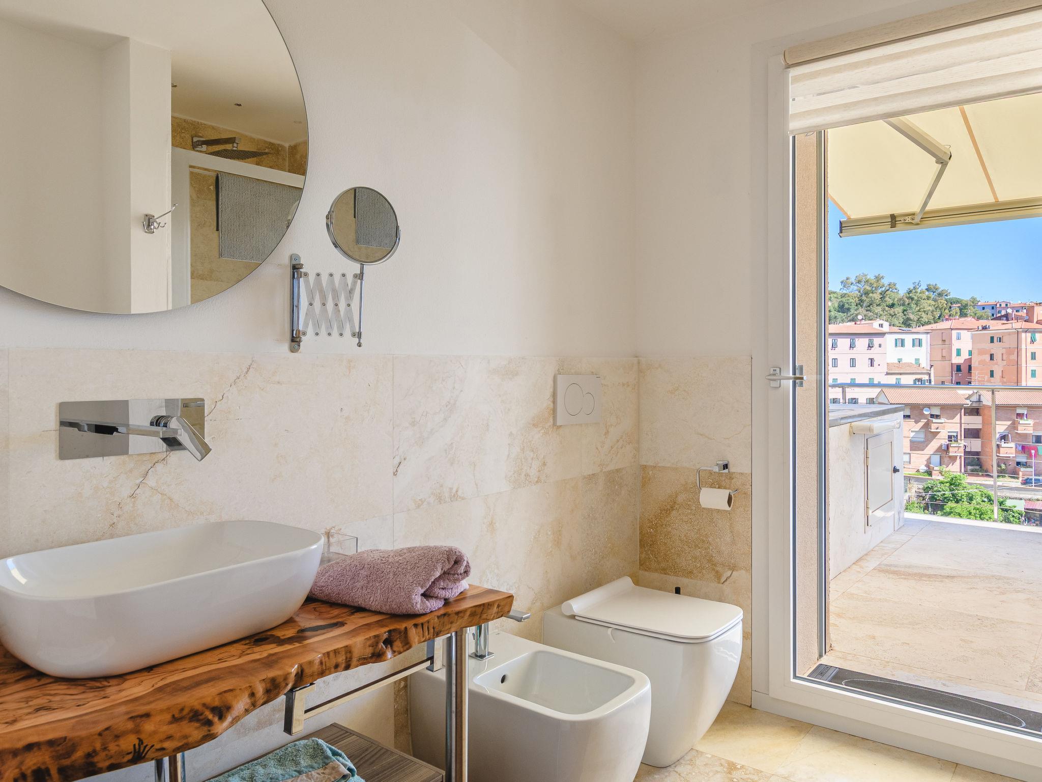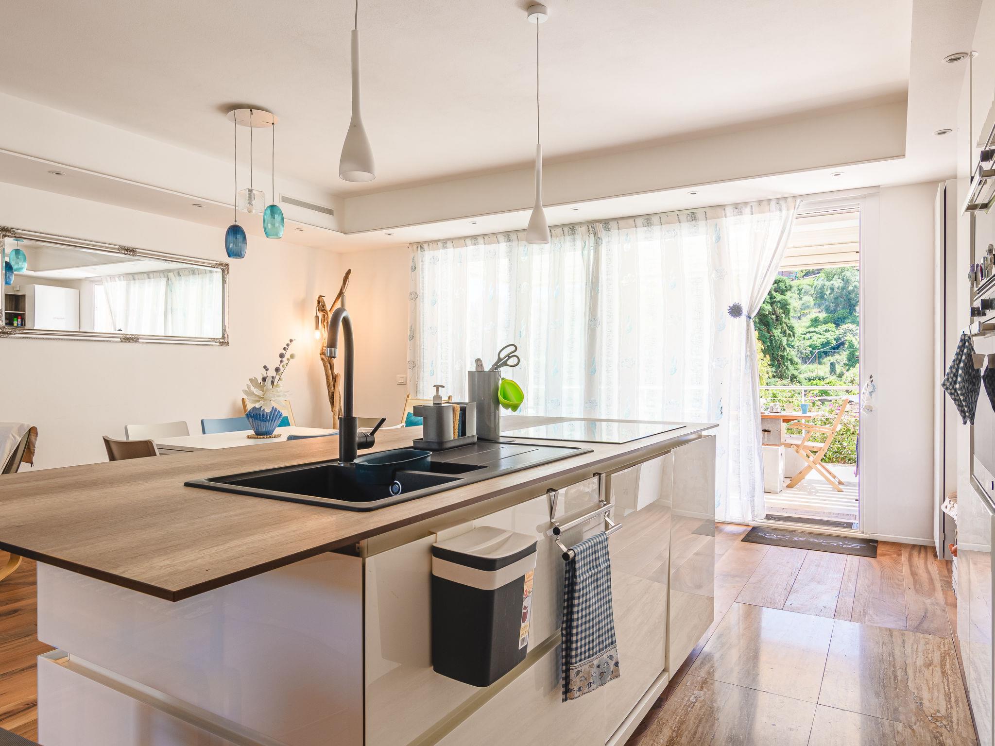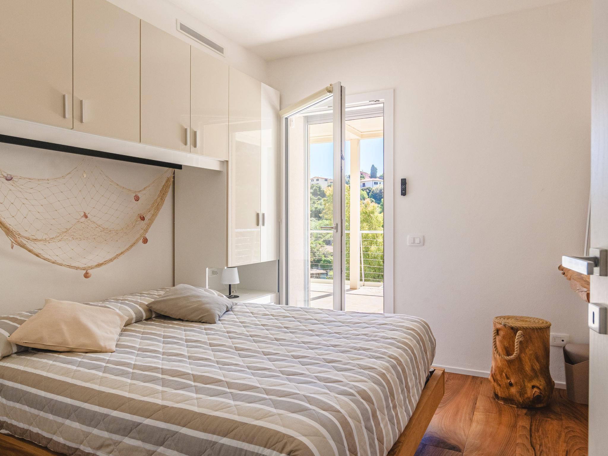 4-room villa 110 m2 on 2 levels. Bright, modern and tasteful furnishings: open living/dining room with sliding door, panoramic window with dining table and TV. Exit to the terrace. 1 room with 1 double bed (160 cm). Exit to the terrace. Open kitchen (oven, dishwasher, 4 induction hot plates, kettle, microwave, freezer, electric coffee machine, cooking island). Exit to the terrace. Shower/bidet/WC. Upper floor: 2 rooms, each room with 1 double bed (160 cm). Exit to the terrace. Shower/bidet/WC. Air-conditioning, forced-air heating. Large terrace partly roofed, large terrace, patio. Terrace furniture, barbecue, deck chairs. Very beautiful view of the sea and the town. Facilities: washing machine, hair dryer. Internet (WiFi, free). Parking. E-charging station. Please note: non-smokers only. Private entrance, smoke alarm, fire extinguisher. Centralized air conditioning. Bioclimatic pergolas that provide shade from the summer heat. IT049021C24KYKM8AD