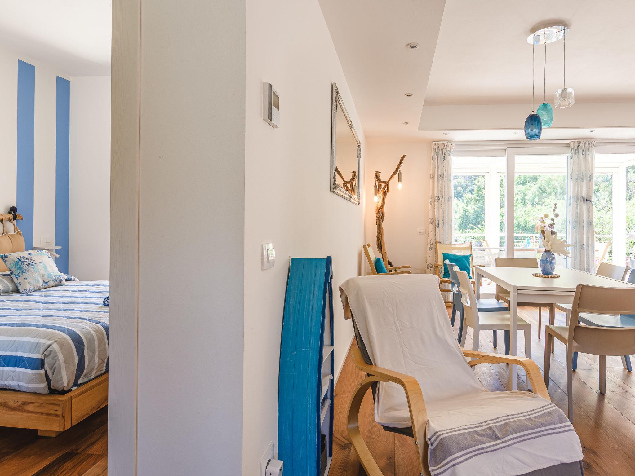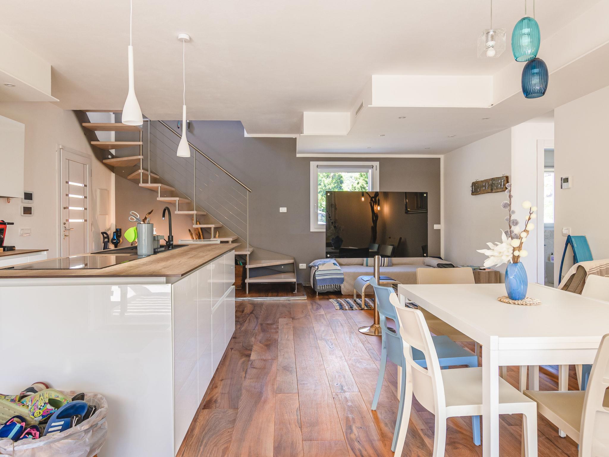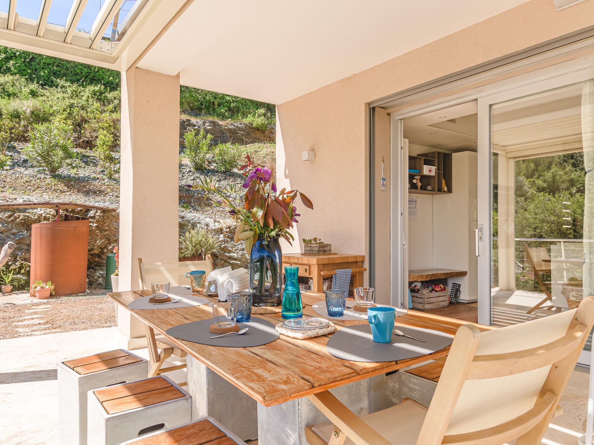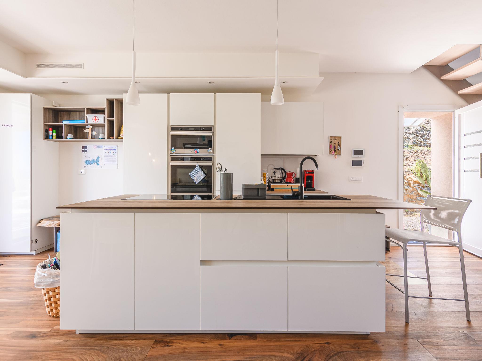 4-room villa 110 m2 on 2 levels. Bright, modern and tasteful furnishings: open living/dining room with sliding door, panoramic window with dining table and TV. Exit to the terrace. 1 room with 1 double bed (160 cm). Exit to the terrace. Open kitchen (oven, dishwasher, 4 induction hot plates, kettle, microwave, freezer, electric coffee machine, cooking island). Exit to the terrace. Shower/bidet/WC. Upper floor: 2 rooms, each room with 1 double bed (160 cm). Exit to the terrace. Shower/bidet/WC. Air-conditioning, forced-air heating. Large terrace partly roofed, large terrace, patio. Terrace furniture, barbecue, deck chairs. Very beautiful view of the sea and the town. Facilities: washing machine, hair dryer. Internet (WiFi, free). Parking. E-charging station. Please note: non-smokers only. Private entrance, smoke alarm, fire extinguisher. Centralized air conditioning. Bioclimatic pergolas that provide shade from the summer heat. IT049021C24KYKM8AD
