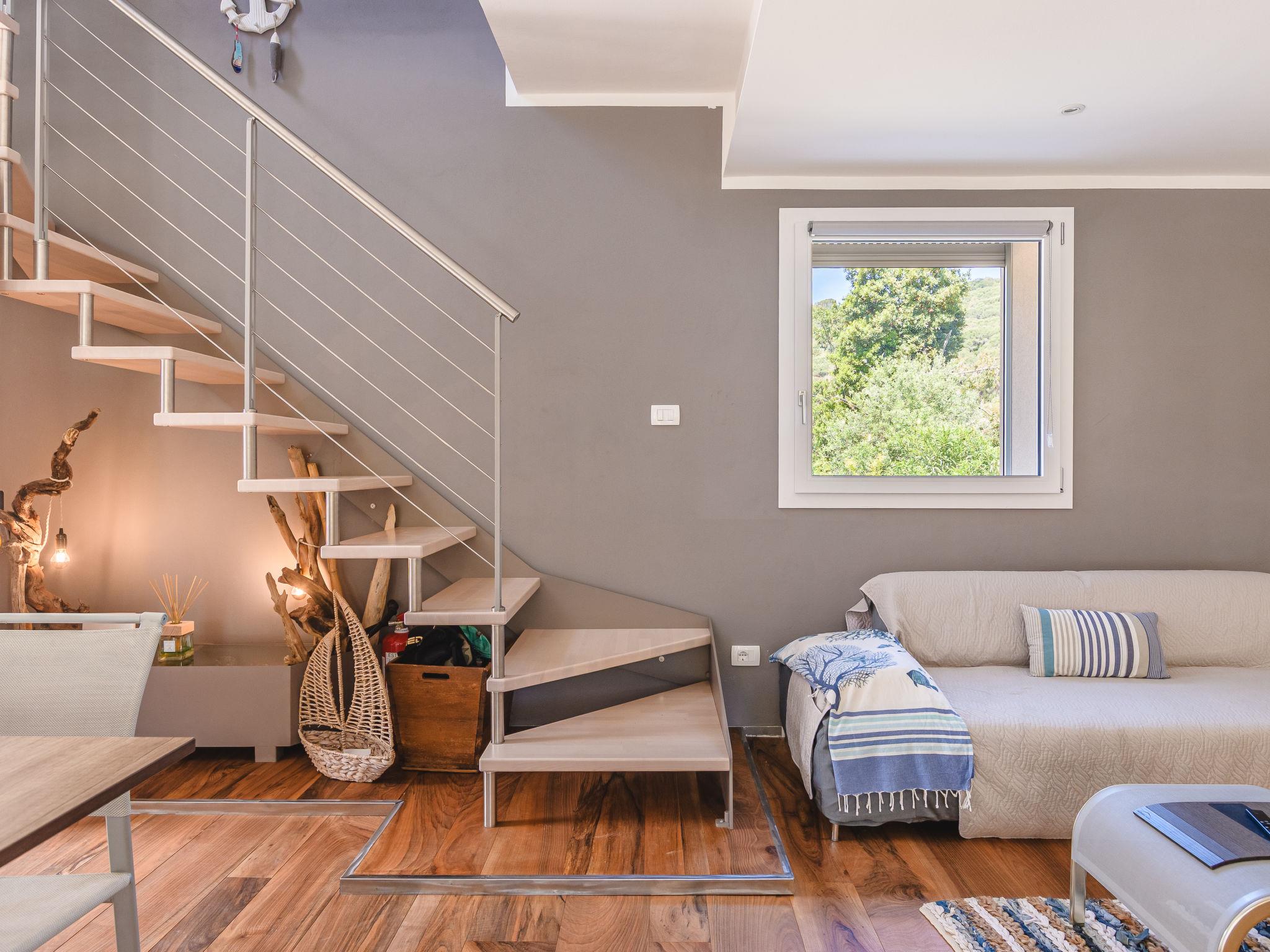 Modern, beautiful house "L'Eco di Rio", 2 storeys, built in 2025. 300 m from the centre of Rio Marina, in a secluded, quiet position, excellent location: right in the centre but still quiet, 1 km from the sea, 1 km from the beach, in the countryside. Private: beautiful garden with lawn and wildlife garden. Outdoor shower, pergola, terrace, garden furniture, barbecue. 150 m long motor access (via unmade road). Parking on the premises. E-charging station. Supermarket 300 m, restaurant 350 m, bar 500 m, bicycle rental, bus stop 200 m, ferry "Rio Marina" 1 km, sandy beach "La Torre" 500 km (small). Marina 11 km. Nearby attractions: Porto Azzurro 11 km, Cavo 8 km, Portoferraio / Capoliveri 17 km. Hiking paths: E-Bike 200 m. Groups of teenagers on request only. Guarded residence. The Villa is located on the edge of the village and can be reached on foot from the center and the main services in a few minutes (approx. 300-500m on a slope).