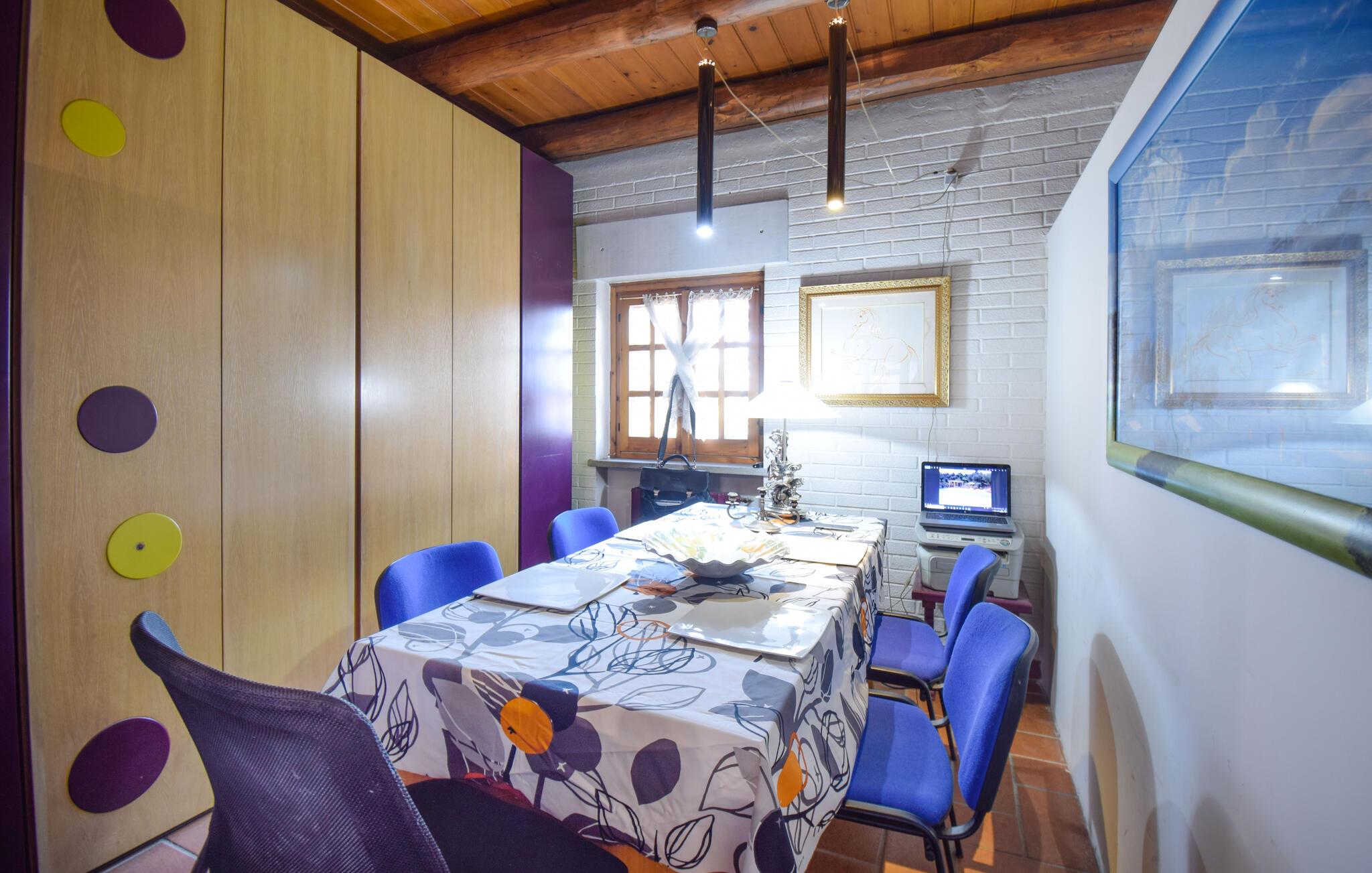 Varme tretak, rustikke møbler og vakre detaljer skaper en koselig atmosfære i denne romslige ferieleiligheten. Tilbered deilige pastaretter og ferske salater på det sjarmerende landstedkjøkkenet, og slå deg ned ved det store spisebordet. Sett deg godt til rette i sofaen, se en god film eller tilbring tid sammen på en hyggelig spillkveld.
