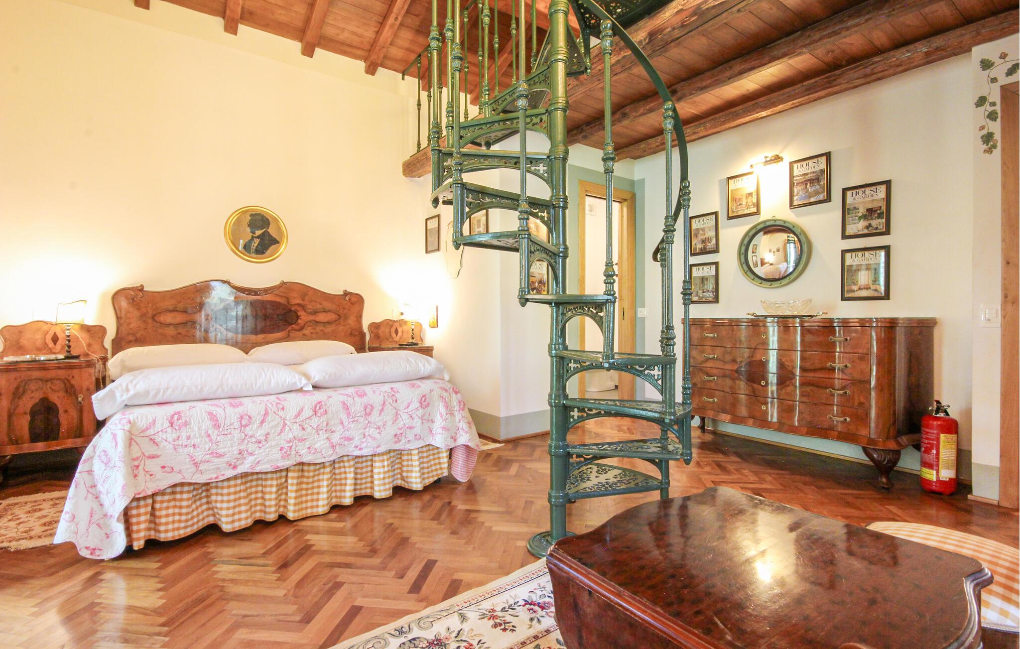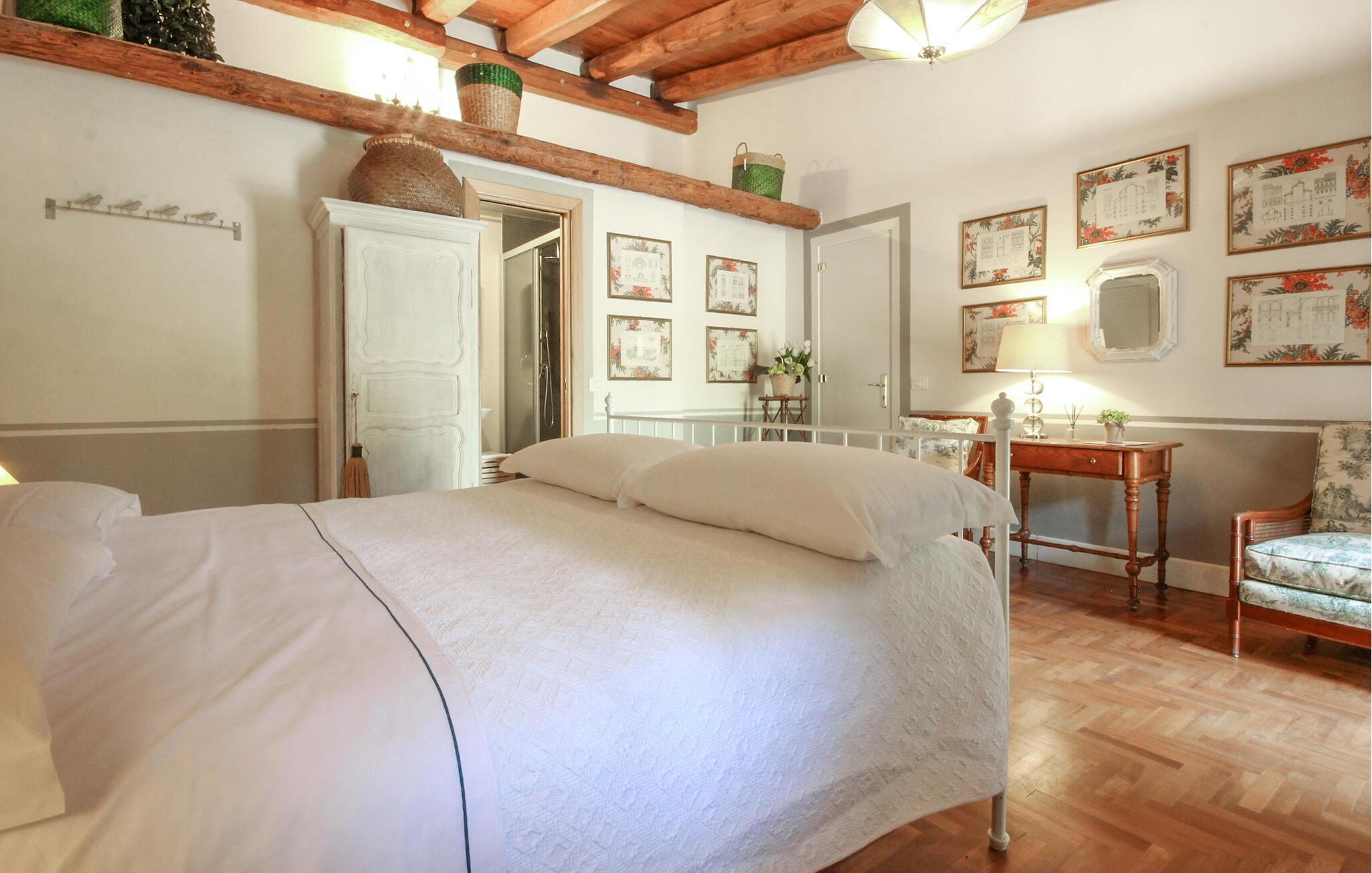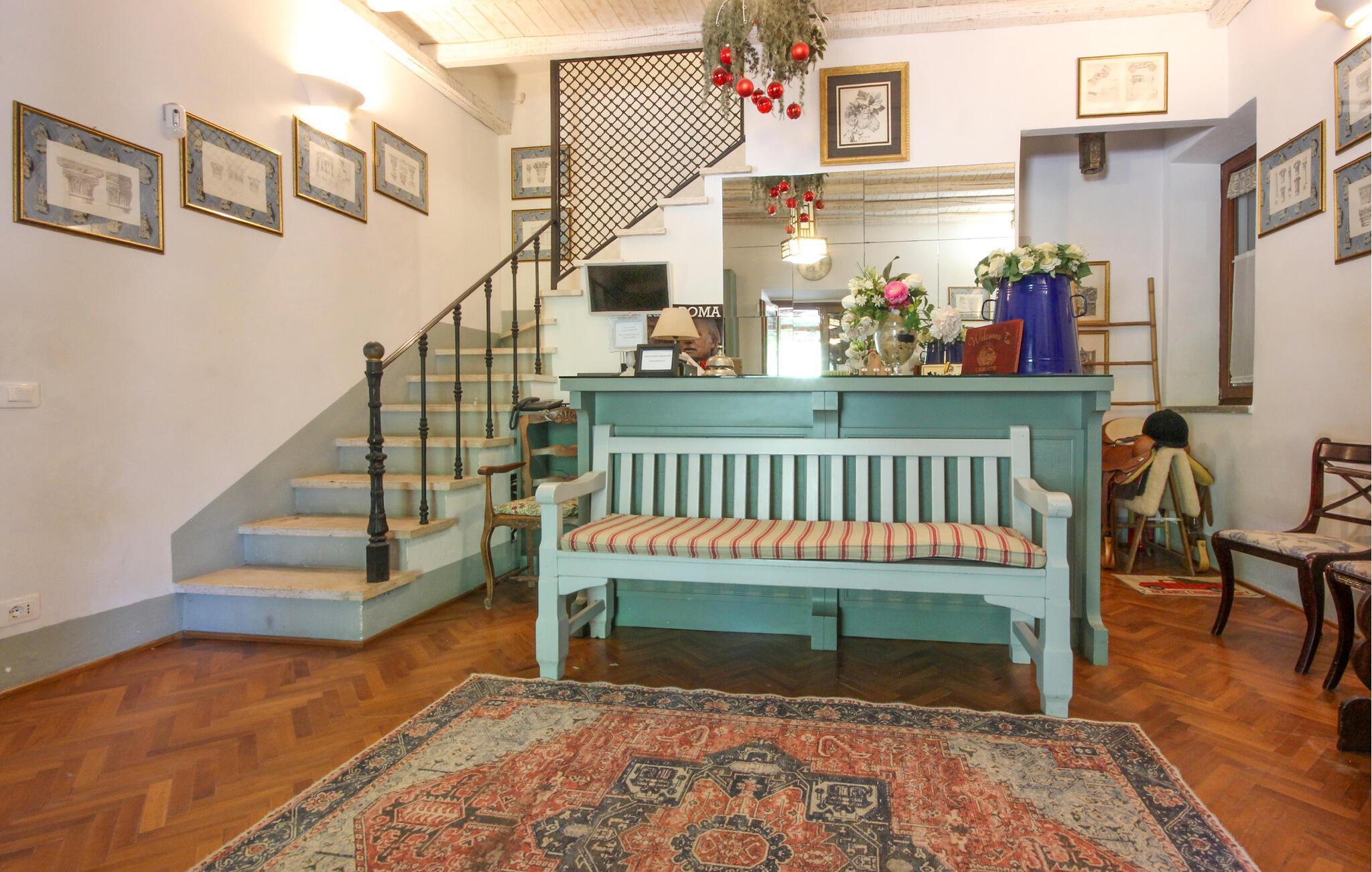 Med en idyllisk beliggenhet i utkanten av den rolige forstaden La Giustiniana og ikke langt fra portene til Roma, ønsker denne romslige 1800-tallsvillaen deg velkommen. Det omsorgsfullt innredede interiøret utstråler historisk sjarm og byr på god plass for sosialt samvær og koselige tilfluktssteder for rolige stunder. La deg fortrylle av de antikke møblene og de vakre parkettgulvene, og se frem til hyggelige måltider og stimulerende samtaler i store grupper.