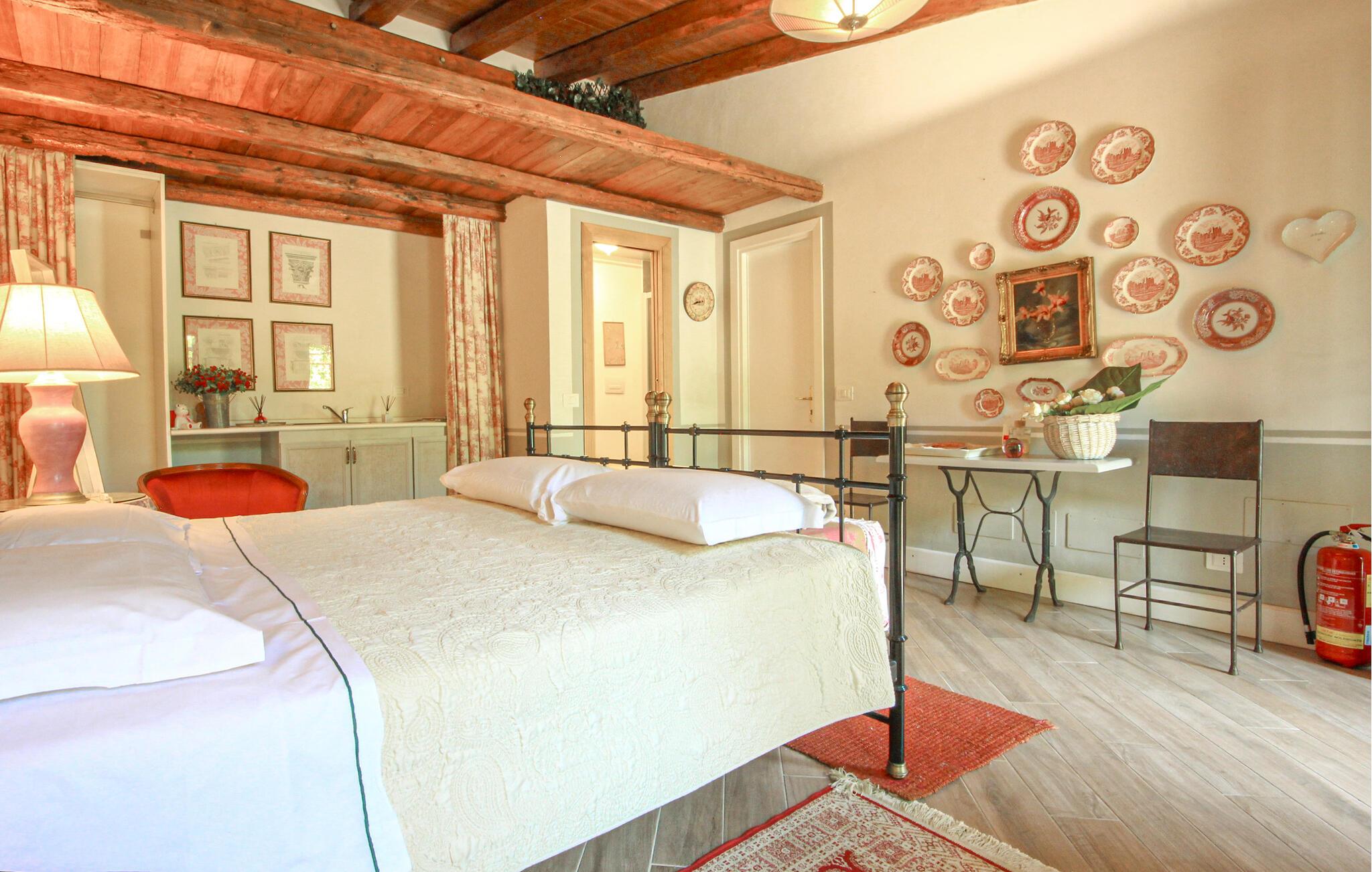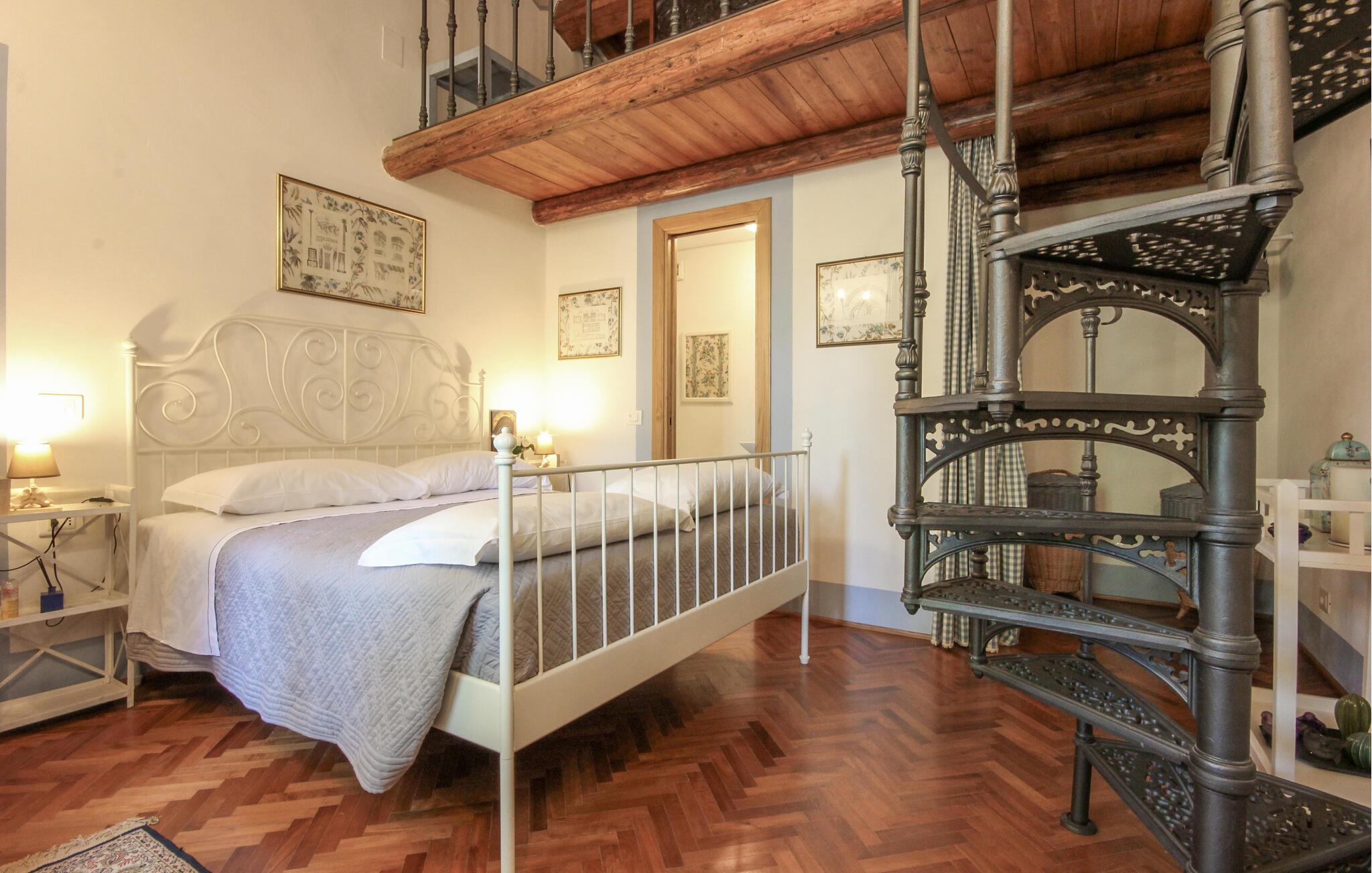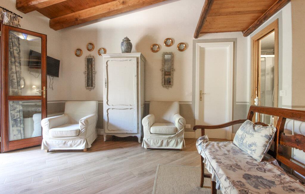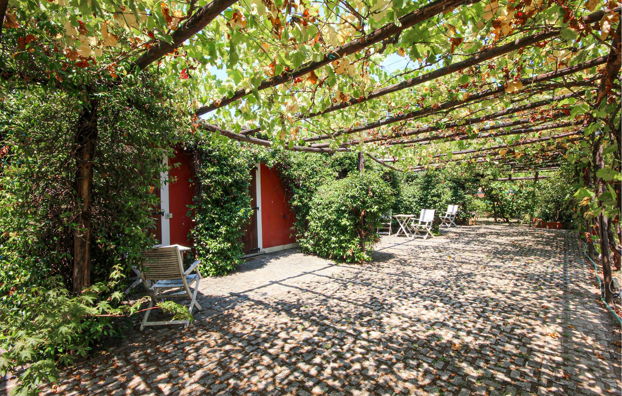 Med en idyllisk beliggenhet i utkanten av den rolige forstaden La Giustiniana og ikke langt fra portene til Roma, ønsker denne romslige 1800-tallsvillaen deg velkommen. Det omsorgsfullt innredede interiøret utstråler historisk sjarm og byr på god plass for sosialt samvær og koselige tilfluktssteder for rolige stunder. La deg fortrylle av de antikke møblene og de vakre parkettgulvene, og se frem til hyggelige måltider og stimulerende samtaler i store grupper.
