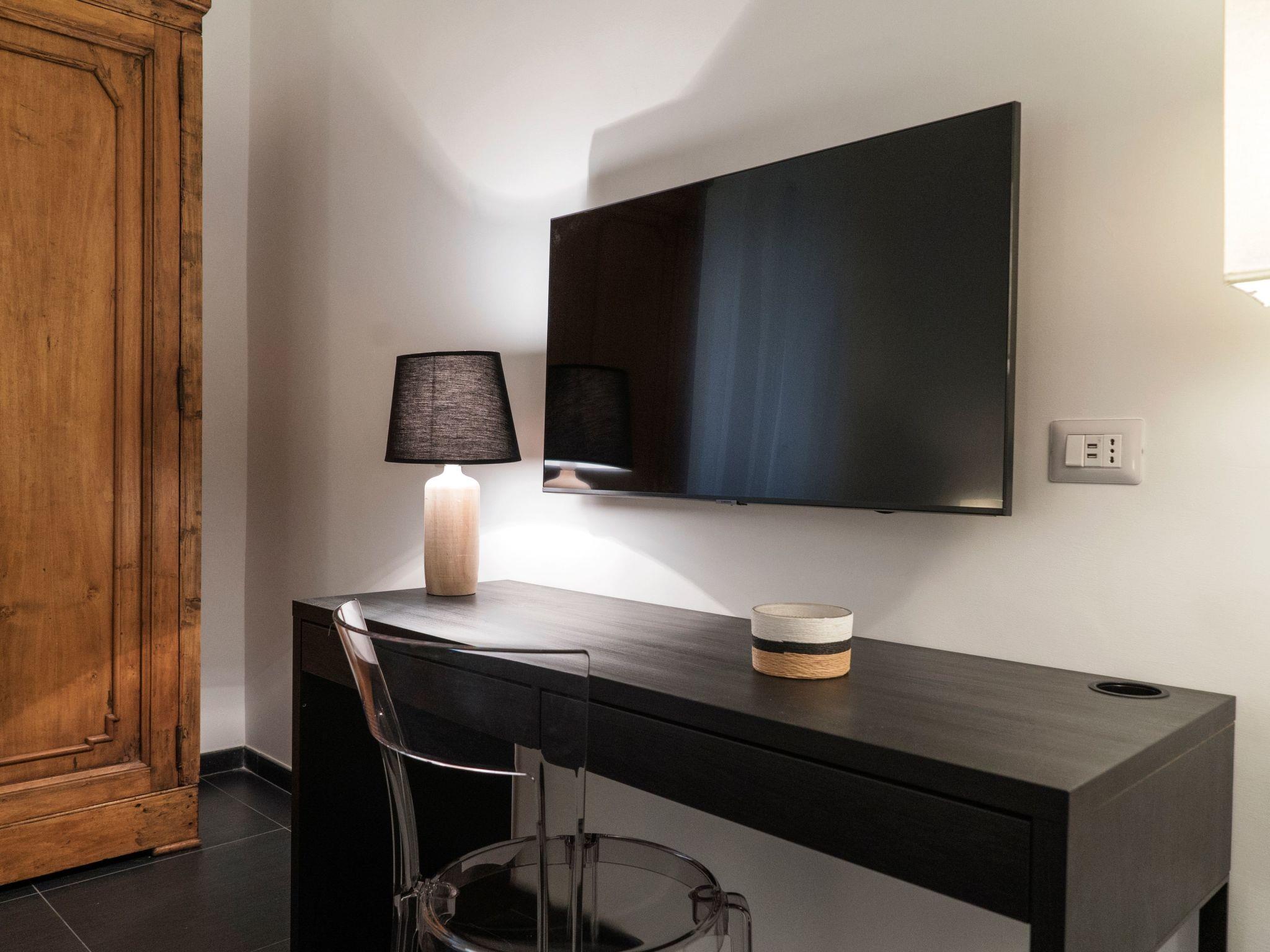 Inside, the flat stands out for its elegant décor and attention to detail. It offers a fully equipped kitchen to meet every need, a bathroom with a large shower, and a spacious double bedroom that includes an extremely comfortable armchair-bed. Comfort is ensured by amenities such as high-speed and extremely stable Wi-Fi, Ethernet sockets for smart working, a washing machine, dishwasher, microwave, air conditioning, independent heating and a Smart TV.
