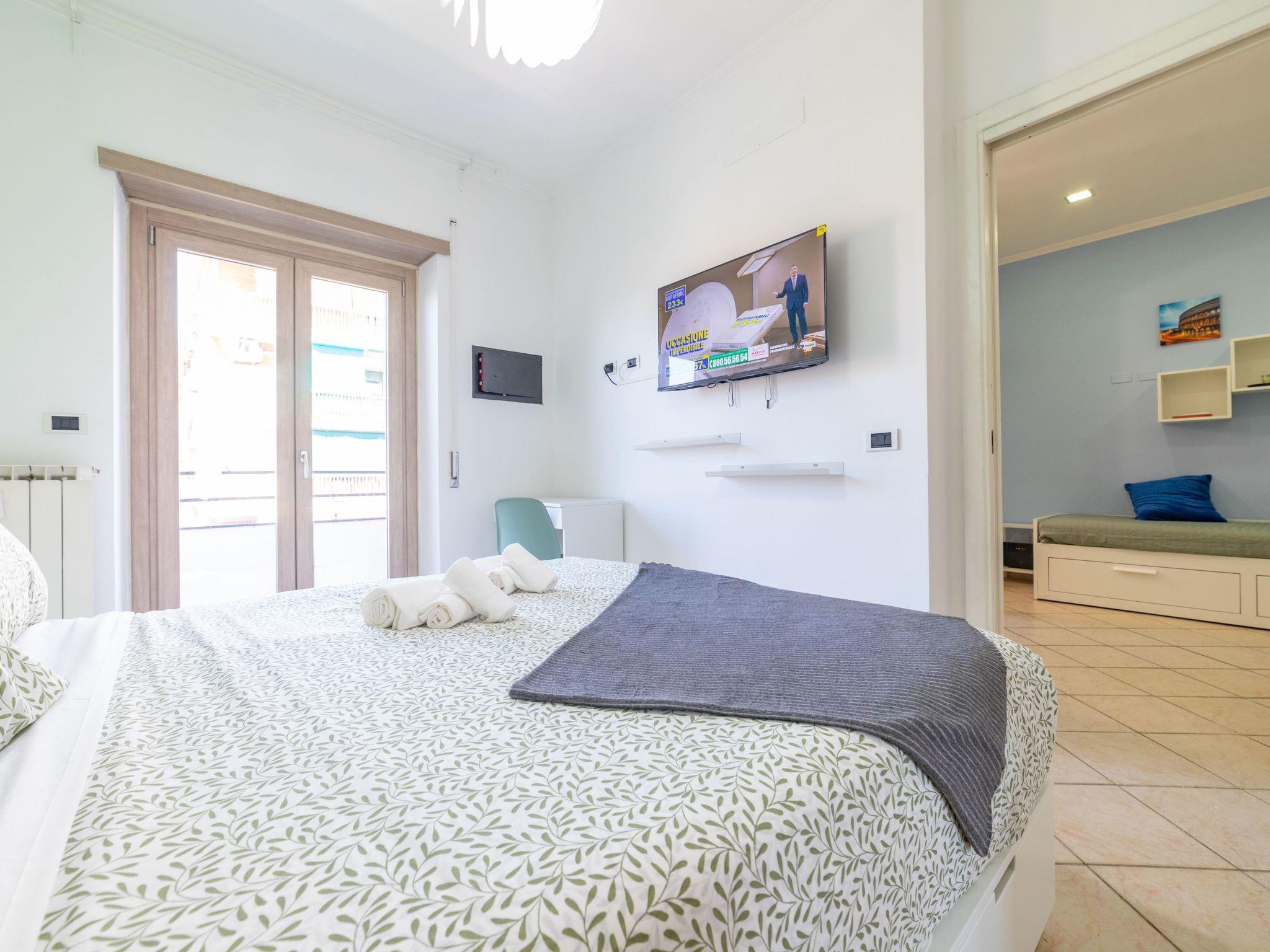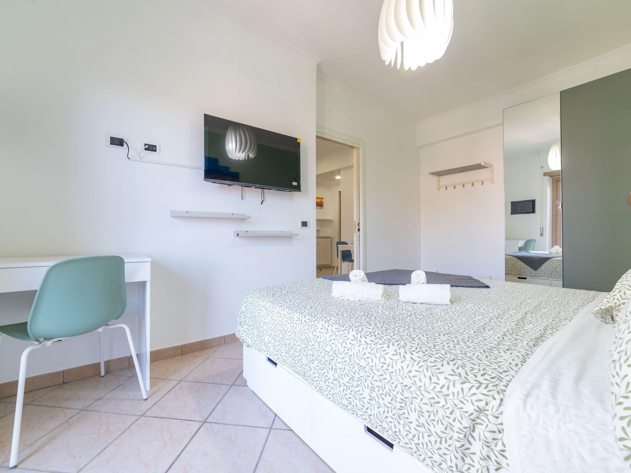 Bubu's Home is a modern and practical flat located in a strategic position a few steps away from the Garbatella metro stop, the Ostiense Station and numerous restaurants, bars and services. The flat is located in an elegant condominium with lift and concierge service. It consists of a living area with a fully equipped kitchenette and a single bed that can be opened, a cosy double bedroom, a modern bathroom with shower and a balcony ideal for having breakfast outdoors or relaxing. Situated on a high floor, the flat is very bright and quiet, offering a peaceful atmosphere to relax in after a day spent exploring the wonders of Rome. The house is equipped with WiFi, air conditioning and a washing machine to ensure a comfortable and carefree stay. Bubu's home is the ideal starting point for visiting Rome and its surroundings in total comfort.
