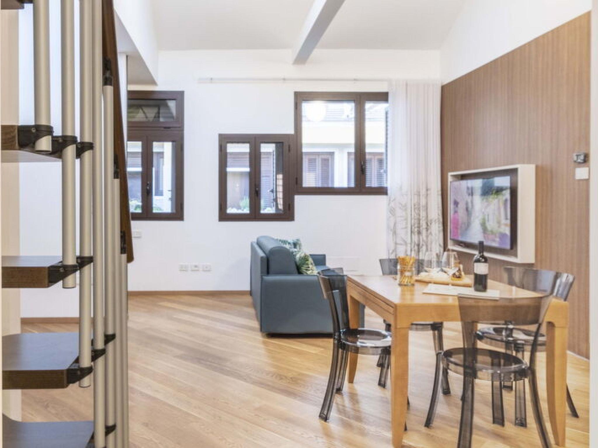 Discover the Suite Trastevere, an elegant oasis of comfort in the vibrant heart of Rome. This unique apartment accommodates up to 4 guests, featuring a stylish wall-mounted double bed that blends seamlessly into the living area and a comfortable sofa bed. The interiors, defined by modern and cozy design, are enhanced by wooden details and contemporary touches, creating a warm and relaxing atmosphere.The true highlight is the private patio, an intimate outdoor corner furnished with a charming seating area, perfect for enjoying a glass of wine or breakfast in the open air, surrounded by a serene ambiance.Ideal for those eager to explore the eternal city, Suite Trastevere is just steps away from the most authentic alleys of the neighborhood and its famous restaurants, bars, and boutiques. Let yourself be enchanted by the perfect blend of style, comfort, and a strategic location: your home in Rome awaits!A cozy patio with seating and a small table provides a peaceful spot to relax or enjoy an aperitif outdoors.Rome, the Eternal City, is a place where the past and present coexist in a unique harmony. Every corner of the city tells a story of its millennia-old history. Strolling through its streets, you can admire extraordinary landmarks such as the Colosseum, the symbol of the Roman Empire, and the Roman Forum, once the political and social heart of ancient Rome. Yet Rome is not only about ancient history: the Vatican Museums, with their incredible collection of art, and Michelangelo’s Sistine Chapel testify to centuries of creativity and faith. The Pantheon, with its perfectly engineered dome, is an architectural marvel that leaves visitors in awe.Don’t miss the chance to toss a coin into the Trevi Fountain to ensure your return and marvel at the Spanish Steps, offering breathtaking views over Piazza di Spagna. Explore the bohemian Trastevere district, with its cobblestone streets, traditional trattorias, and authentic Roman atmosphere. Take a stroll along the Tiber River or visit one of the city’s historic markets, such as Campo de’ Fiori, to experience Roman daily life.Rome is also a city that knows how to take its time: relax in the gardens of Villa Borghese or enjoy a sunset from the Gianicolo Hill, which offers a panoramic view of the city. Roman cuisine is another unforgettable experience: from carbonara to carciofi alla giudia, every dish is a journey through the flavors of tradition.In every season, Rome offers unique emotions: a perfect blend of art, culture, beauty, and vitality. It’s a city to be savored slowly, letting yourself be surprised by the details, the lights illuminating it at sunset, and the warm hospitality of its inhabitants.
