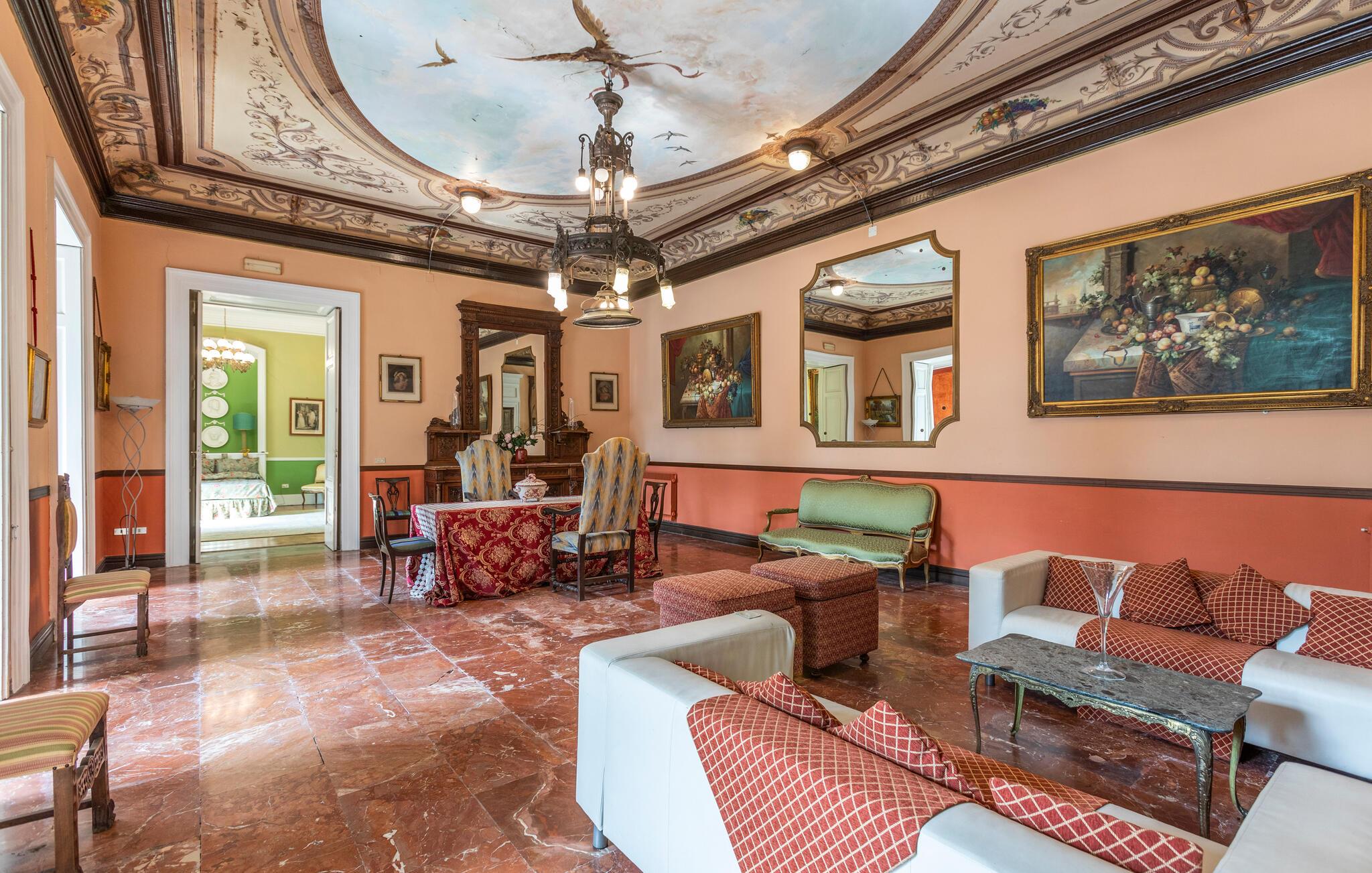 Opplev en uforglemmelig ferie i Pellezzano, i et prestisjefylt feriehus i første etasje av en historisk herregård. Huset, som er en fredet bygning, fortryller med freskomalerier i taket og praktfulle peiser fra svunne tider. Her møtes historie og komfort for å gi deg et unikt opphold. Nyt freden og luksusen som eiendommen tilbyr. Svøm i det felles bassenget eller slapp av i den vakkert anlagte og fullt utstyrte hagen. Legg hverdagen bak deg og fordyp deg i den fredelige atmosfæren i denne oasen omgitt av grøntområder.