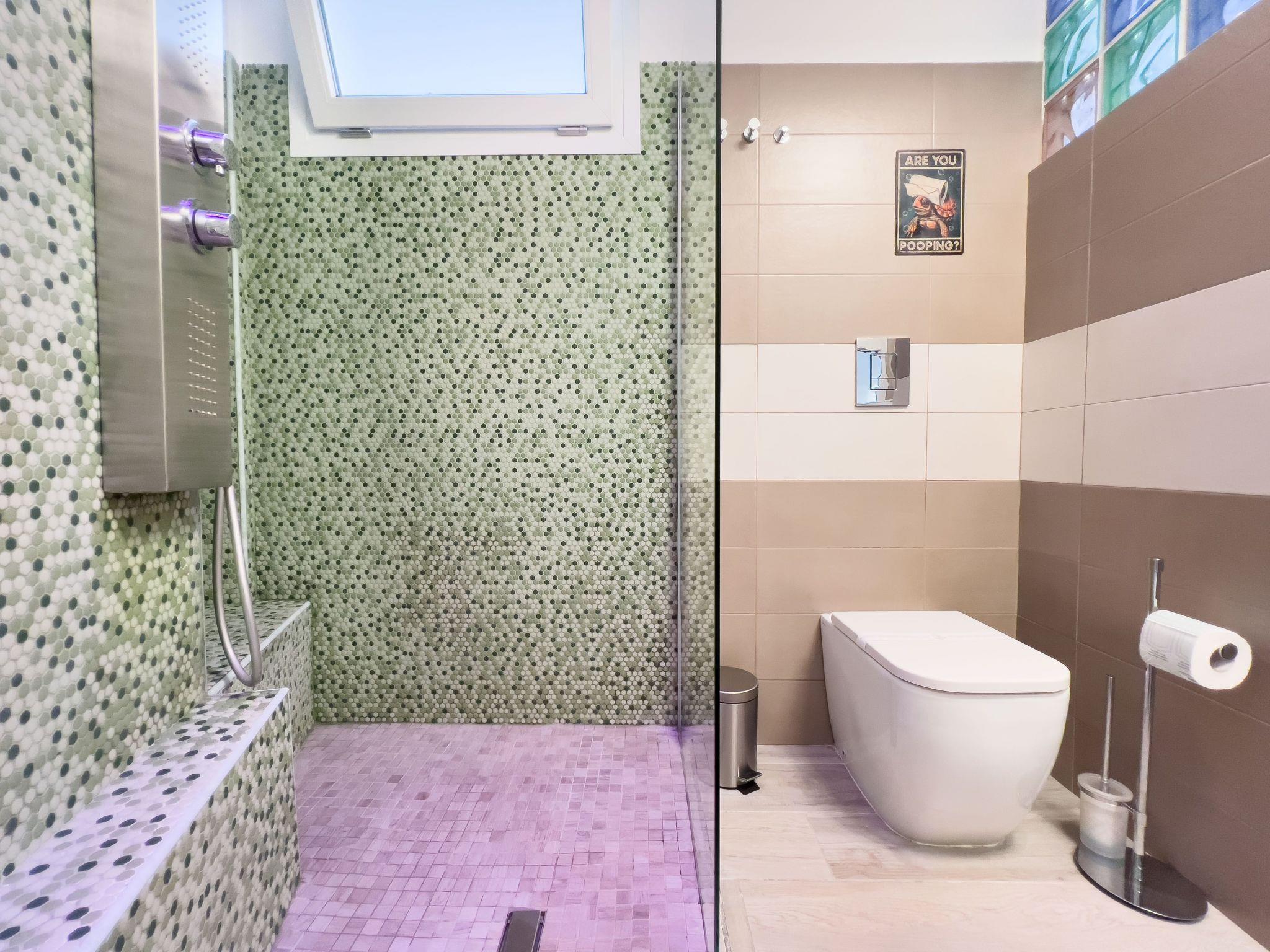 The kitchen is fully equipped with an oven, cooker, microwave, fridge, kettle, toaster, blender, juicer and freezer. In the bedroom, you will find a cosy double bed with memory foam mattress and pillows, a cot for small guests (on request), a built-in wardrobe for personal belongings and a large desk for those who wish to work.