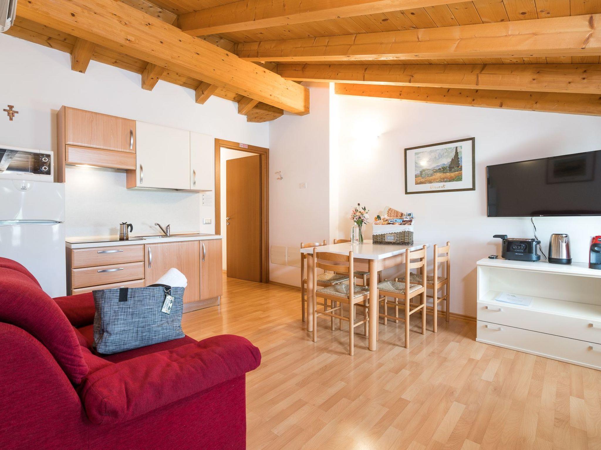The flat is ideally located, with the lake and beach less than a 10-minute drive away. The nearest town centre is only 2 km away, while for daily necessities, a grocery shop is available 1.5 km away. The area offers numerous outdoor activities, from bicycle explorations to walks along the shores of Lake Garda, satisfying both adventure and tranquillity lovers.