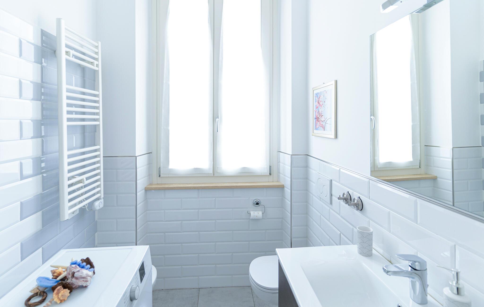 Den vakre Adriaterhavskysten i San Benedetto del Tronto venter på deg med uendelige muligheter for en herlig strandferie. Den stilfullt innredede leiligheten i andre etasje, som passer for en liten familie eller et par, byr på en moderne atmosfære som umiddelbart får deg i feriestemning. Start dagen med frokost på spisekjøkkenet og legg planer for ferien her. Om kvelden inviterer den komfortable sofaen til å se tilbake på dagens opplevelser over et godt glass vin.