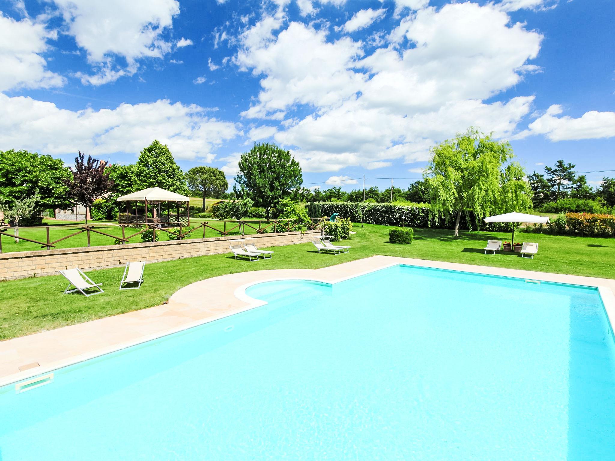 The property "Donna Ippolita" is located on a large farm, set on a hill with a wide panorama of the surrounding countryside. Clients can enjoy the organic products from the orchard and from the garden. Only 3 km away there is the Natural Reserve of the Monte Rufeno, where you can hike or ride on the horseback with the guide (on request). Conventions also at the "Fonteverde" spa only 10 km away. The pool has a Roman staircase. Old country house "Donna Ippolita", 680 m a.s.l.. 1 km from the centre of Trevinano, 6 km from the centre of San Casciano Bagni, 10 km from the centre of Acquapendente. For shared use: property 1 ha (fenced), natural garden, orchard, beautiful garden to relax, swimming pool (7 x 14 m, depth 135 cm, seasonal availability: 24.May. - 27.Sep.). Barbecue. In the house: reception, WiFi, laundry, heating available only from 01.Nov. - 15.Apr.. Cook on request (extra). Parking. Shop 1 km, supermarket 10 km, restaurant 1 km, bus stop 150 m. Tennis 10 km, riding stable 3 km. Nearby attractions: Celle sul Rigo 15 km, Radicofani 31 km, Chianciano Terme 35 km. Please note: Additional accommodations can be booked.
