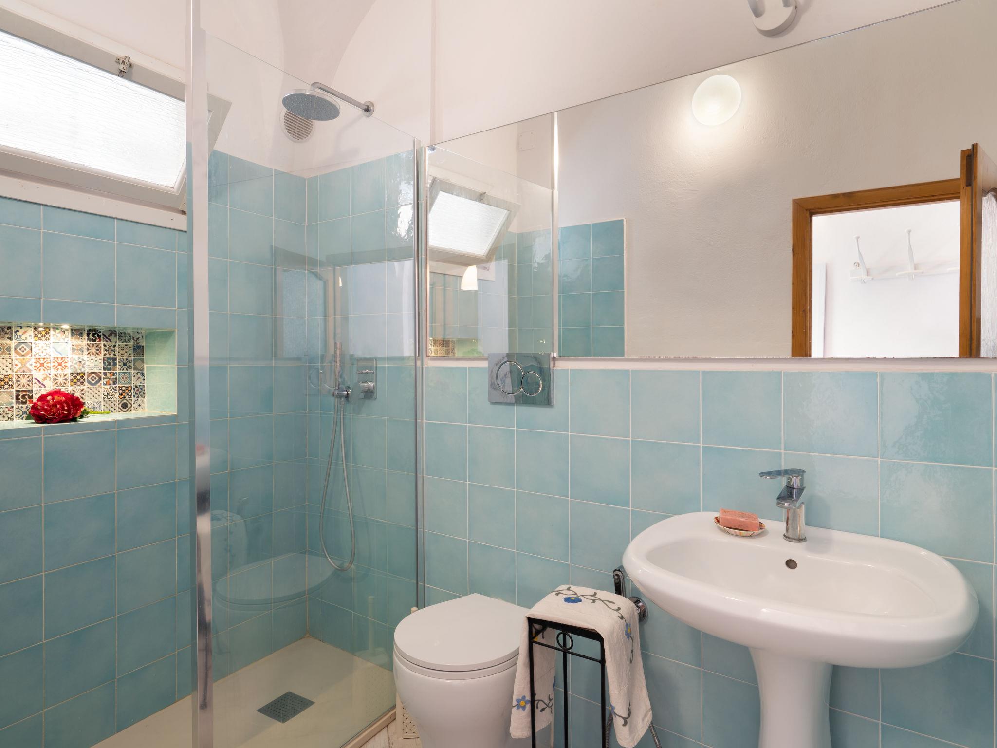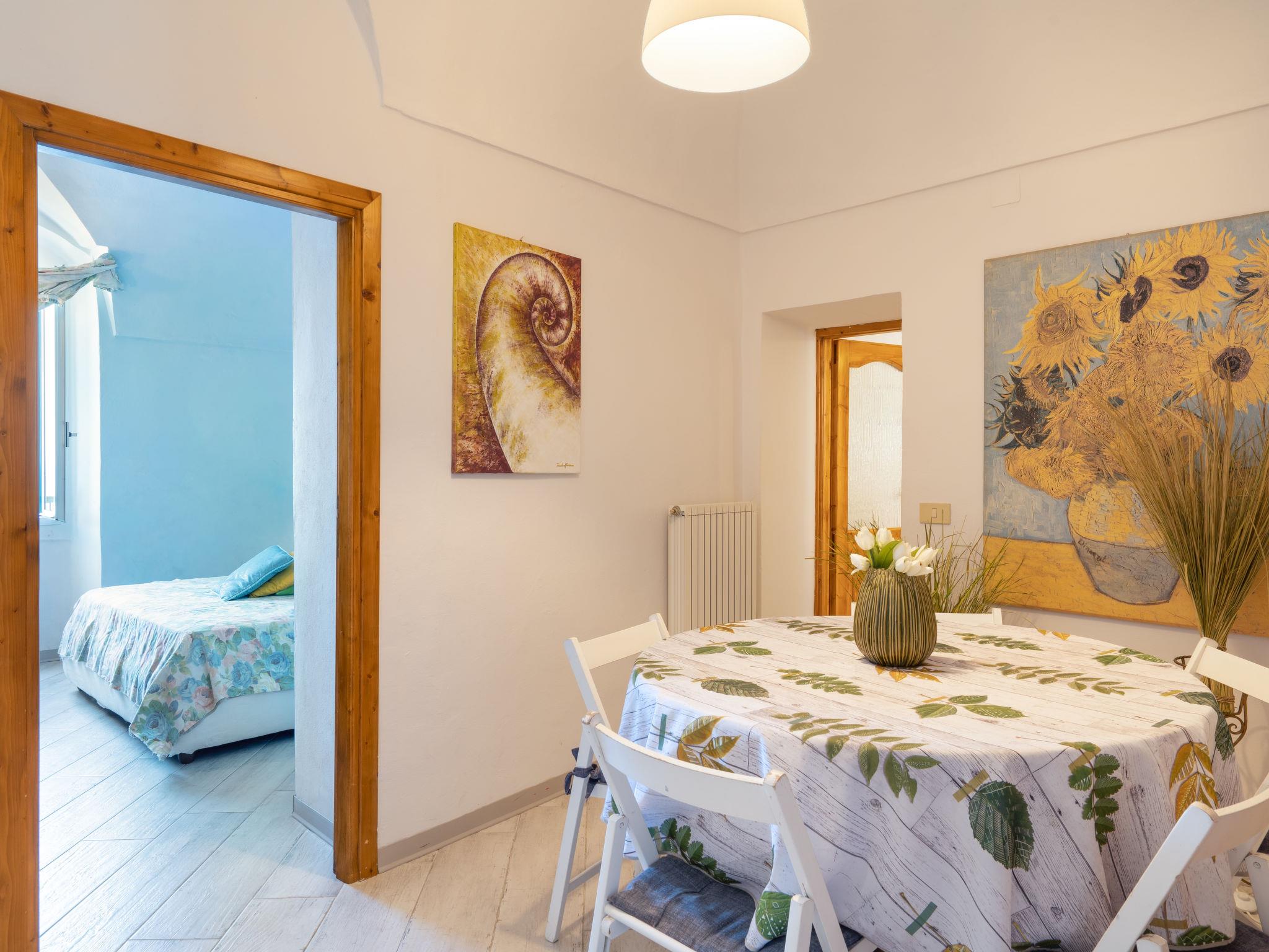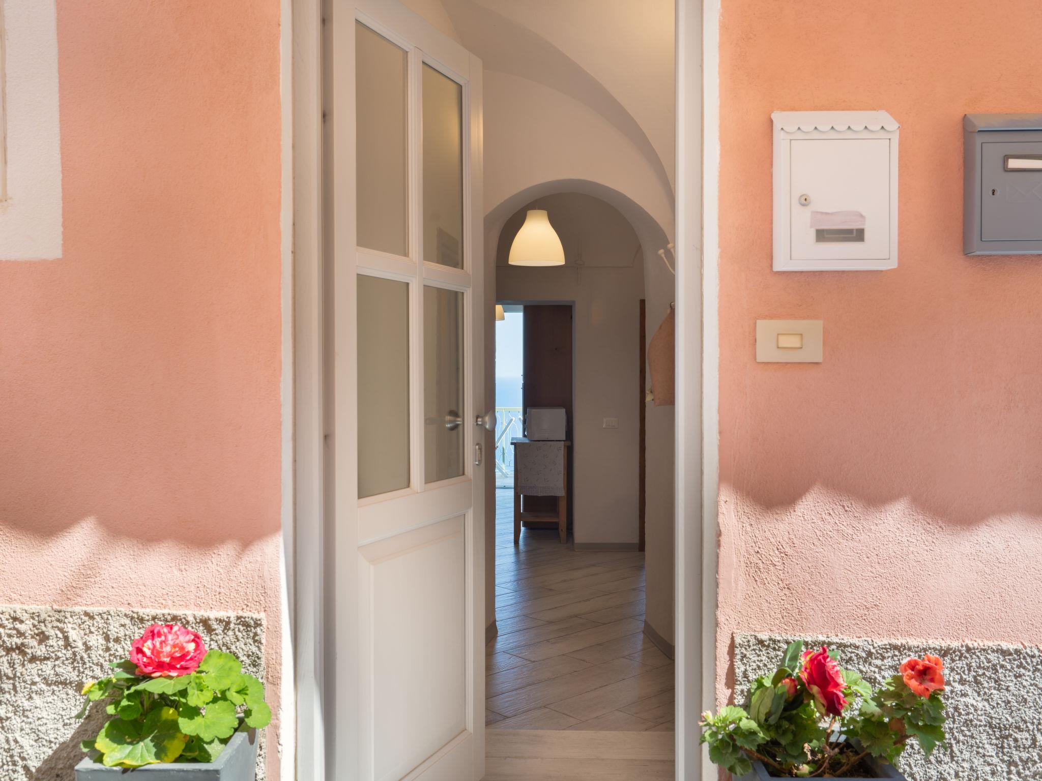 "Francesca (SLR212)", 4-room terraced house 80 m2 on 2 levels. Practical furnishings: open small living/dining room. 1 room with 1 double bed (160 cm), satellite TV and CD-player. 1 room with 2 beds (80 cm). Kitchen (oven, 4 gas rings, toaster, electric coffee machine) with dining table. Exit to the balcony. Shower/WC. Upper floor: (exterior staircase), 1 room with 2 beds (80 cm). Exit to the terrace. Gas heating. Small balcony, terrace. Terrace furniture, balcony furniture. Marvellous panoramic view of the sea, the countryside and the bay. Facilities: washing machine, children's high chair. Internet (WiFi). Please note: one double bedroom is outside the apartment. Maximum 1 pet/ dog allowed. No internal connecting door between the floors. IT008021C2NRLQSA3S
